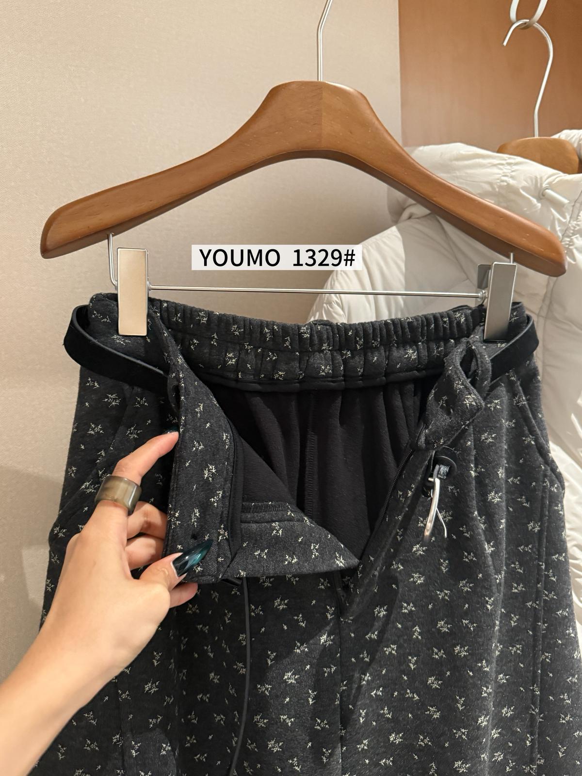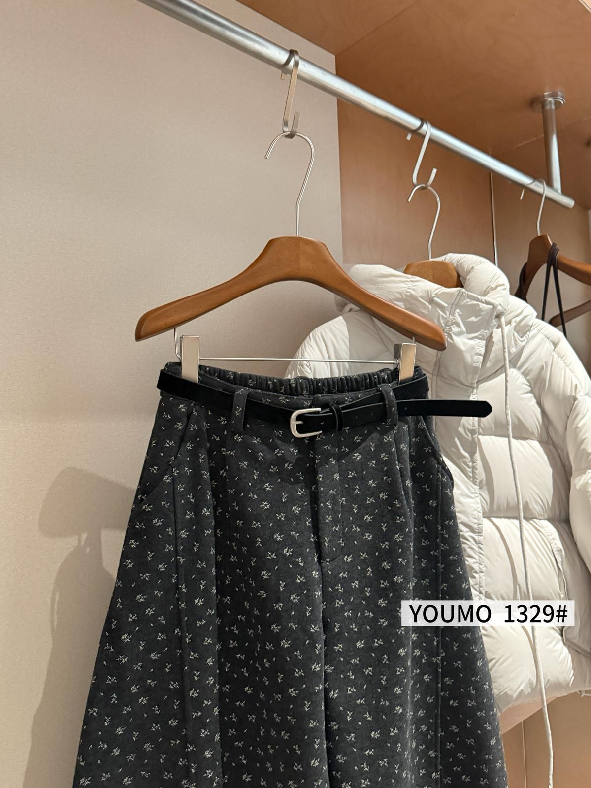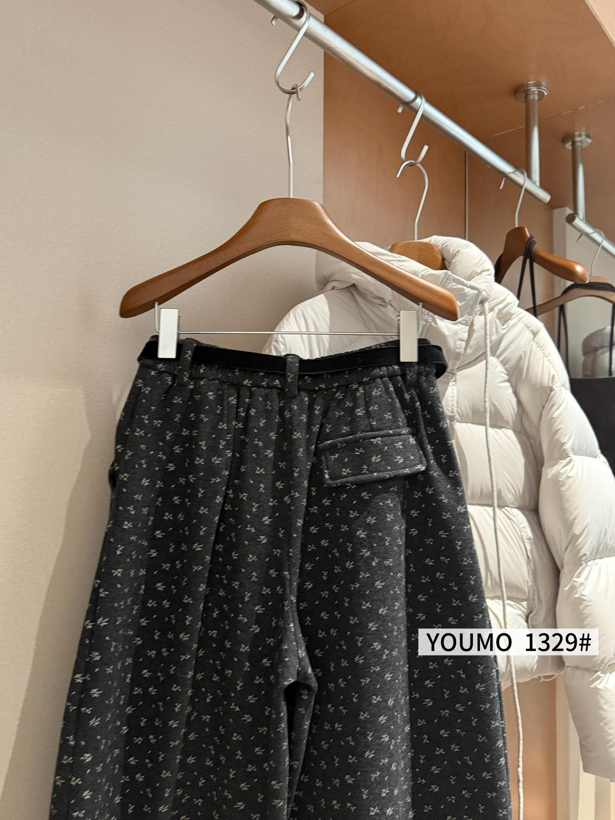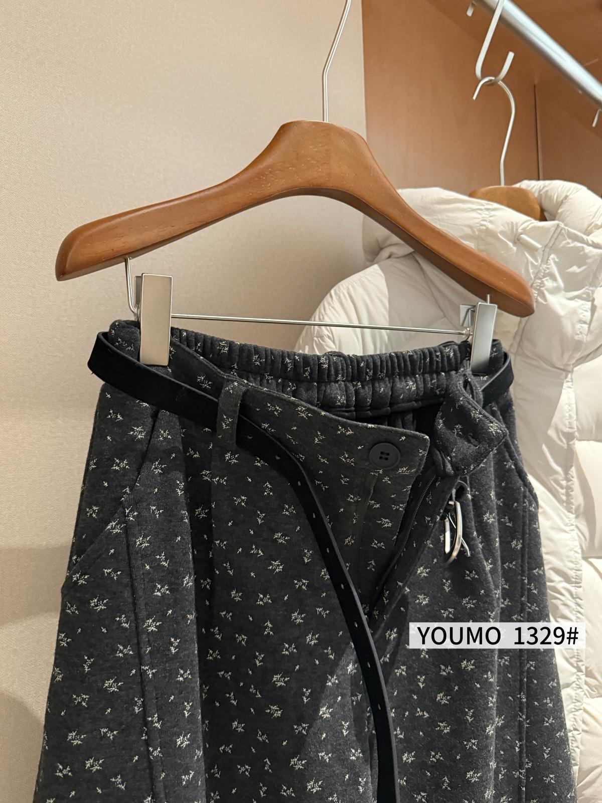 【C8147】韓系小碎花彎刀褲加厚加絨保暖百搭休閒褲(配腰帶)