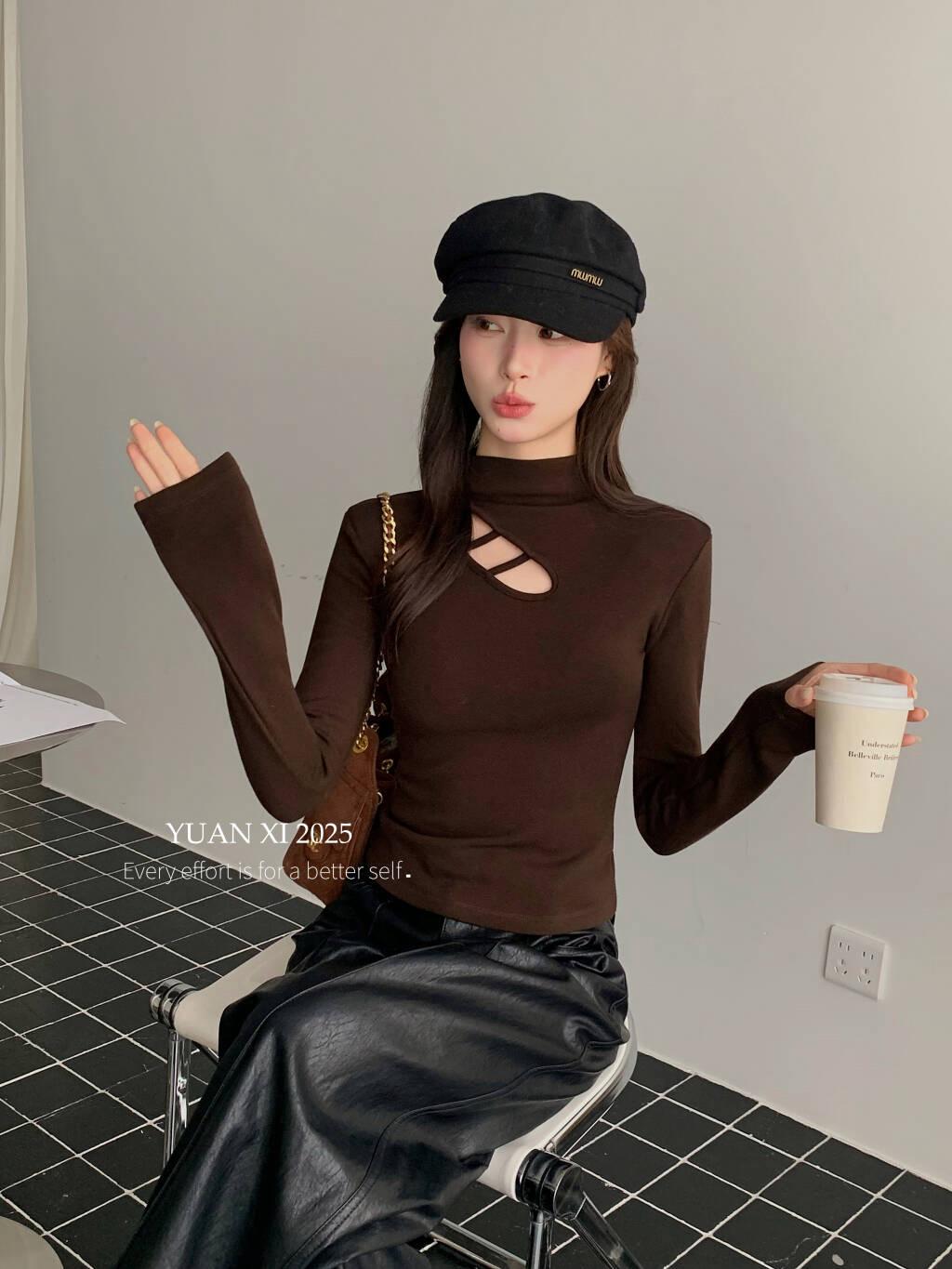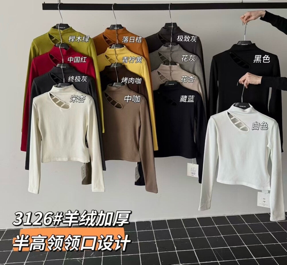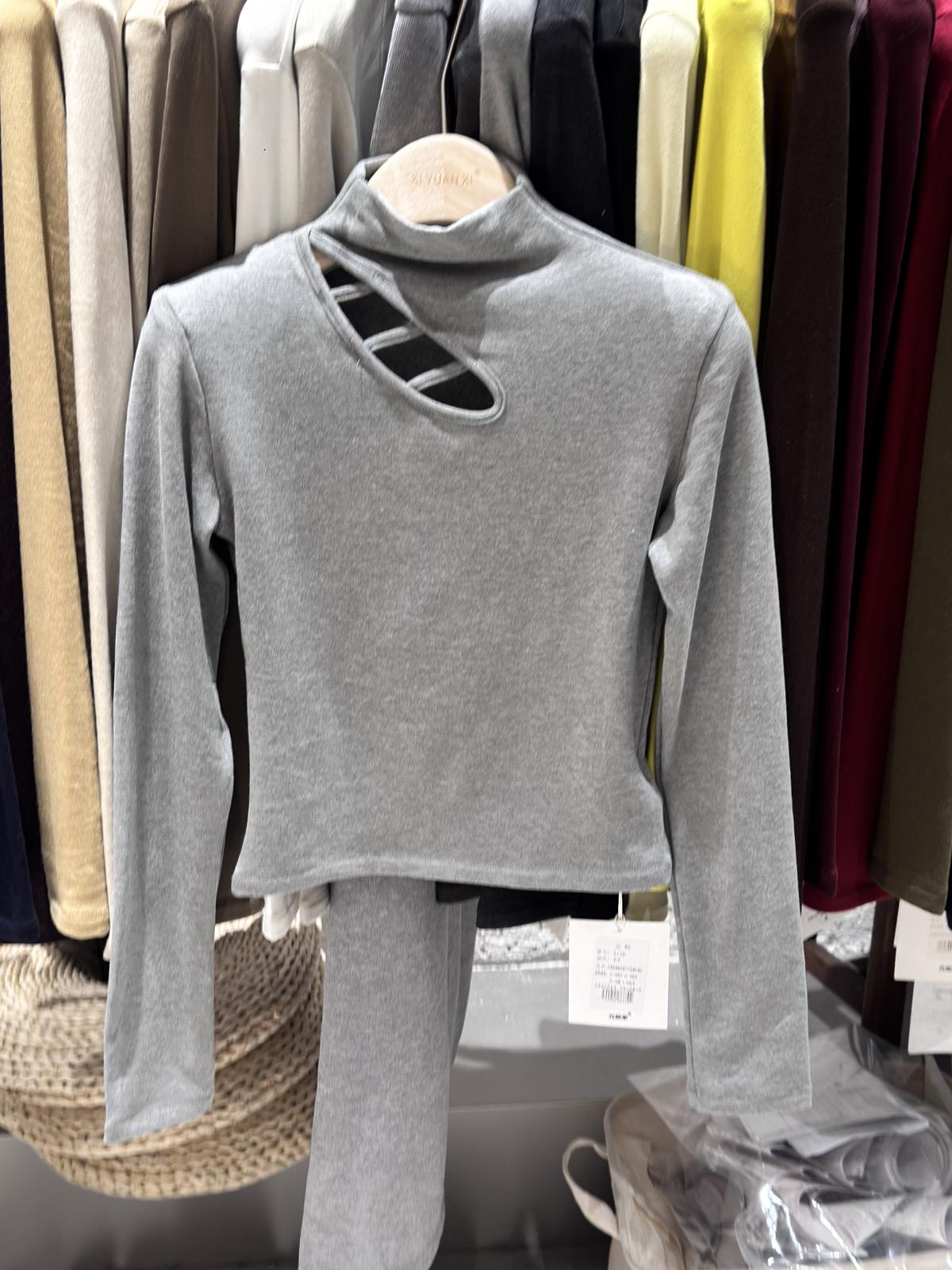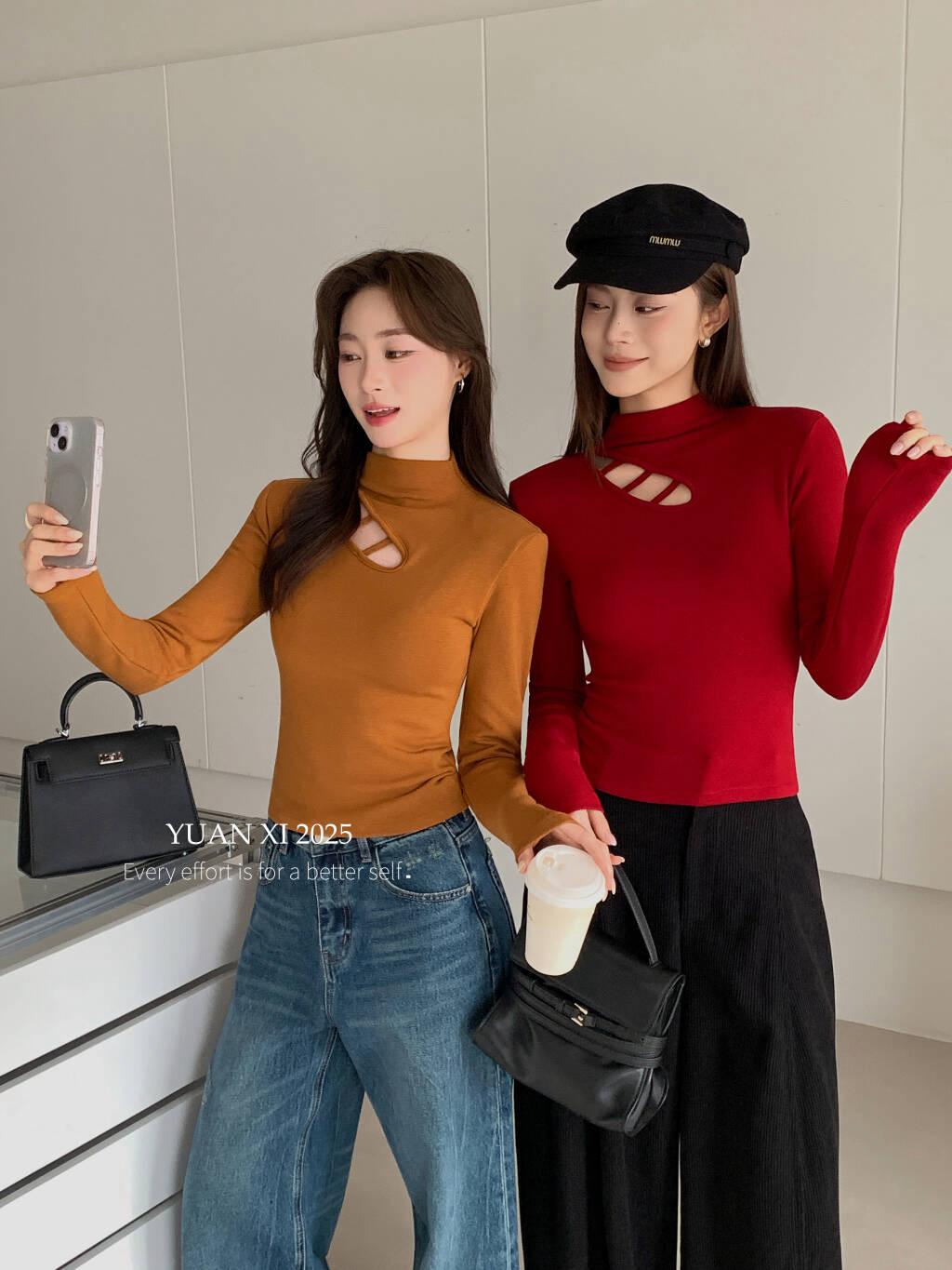 【C8149】大客必拿簡約半高領鏤空加絨打底衫