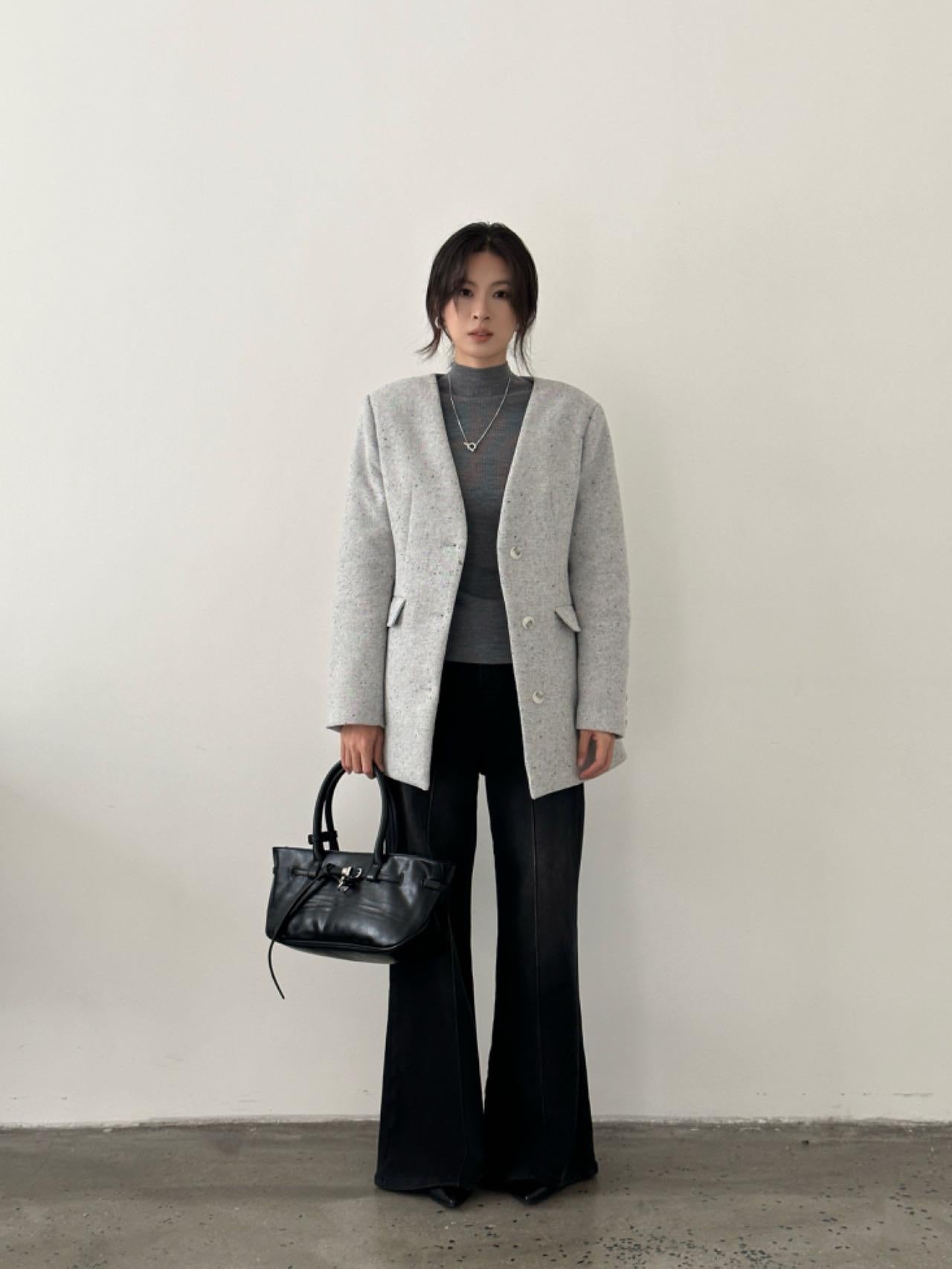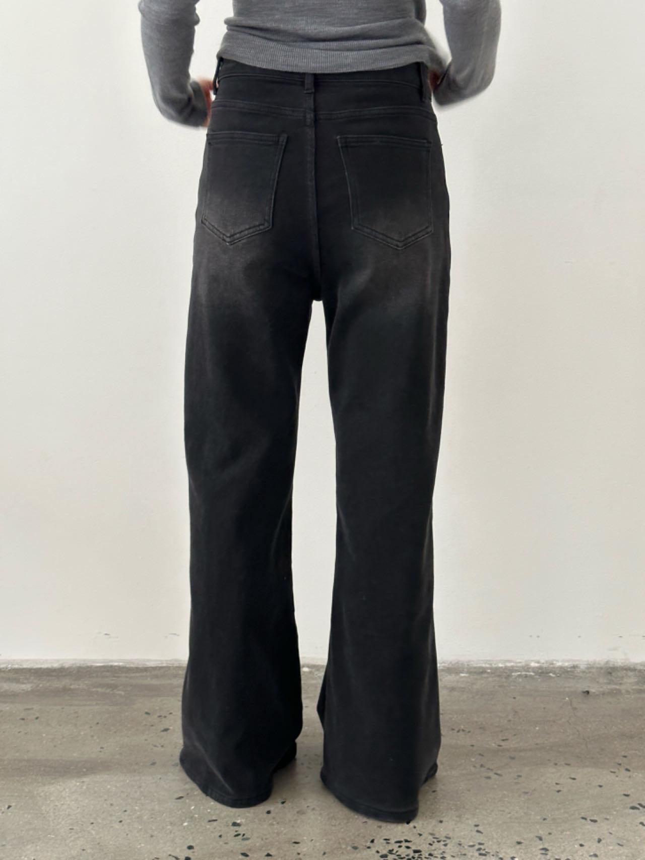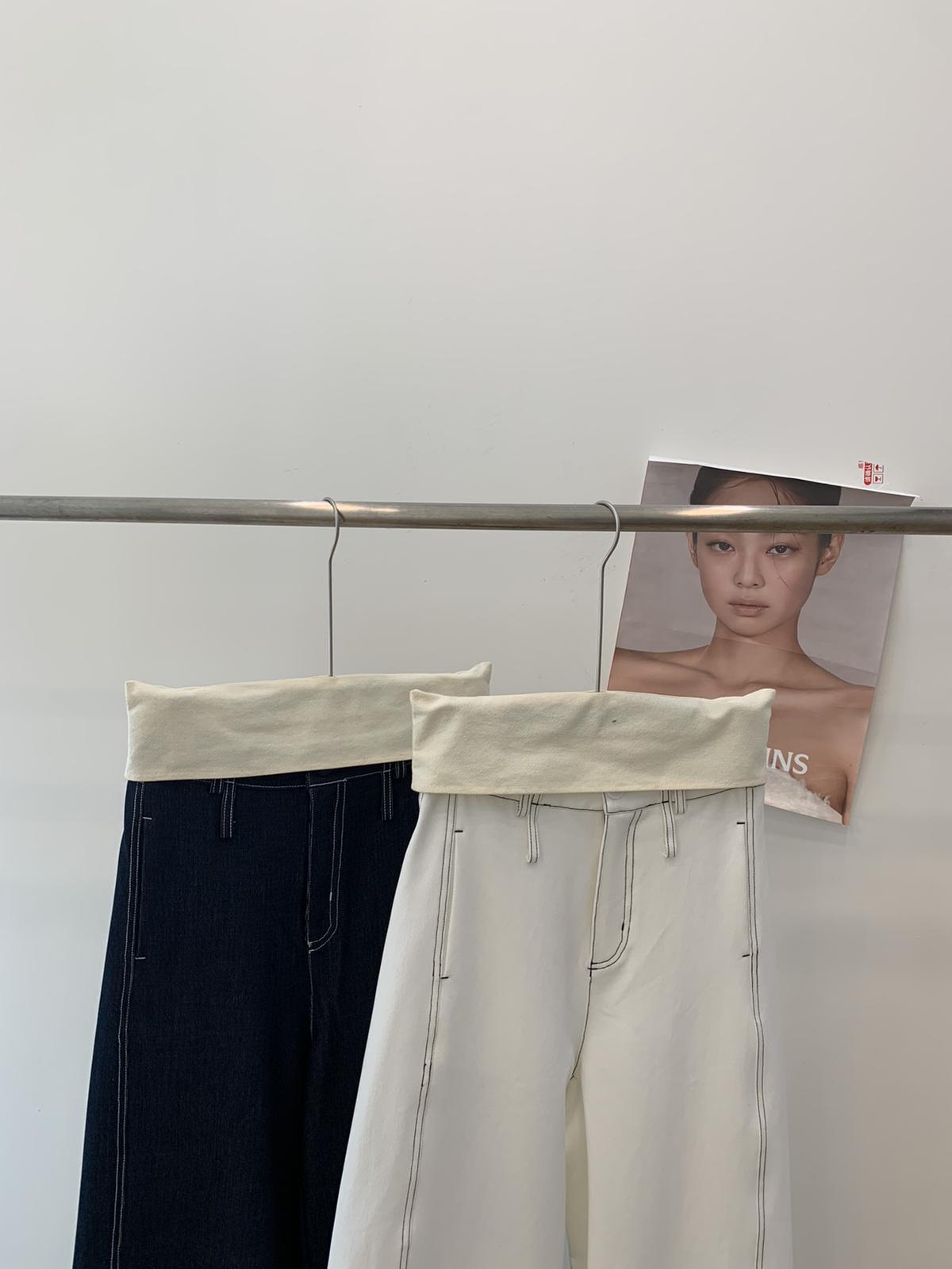 【C8156】簡約高級感設計明線分割設計直筒牛仔褲冬高腰寬鬆闊腿牛仔褲牛仔褲