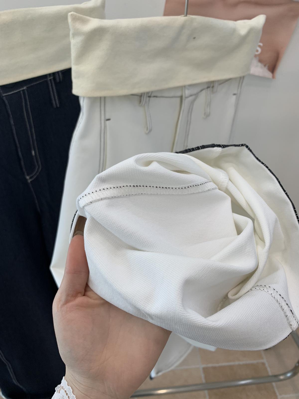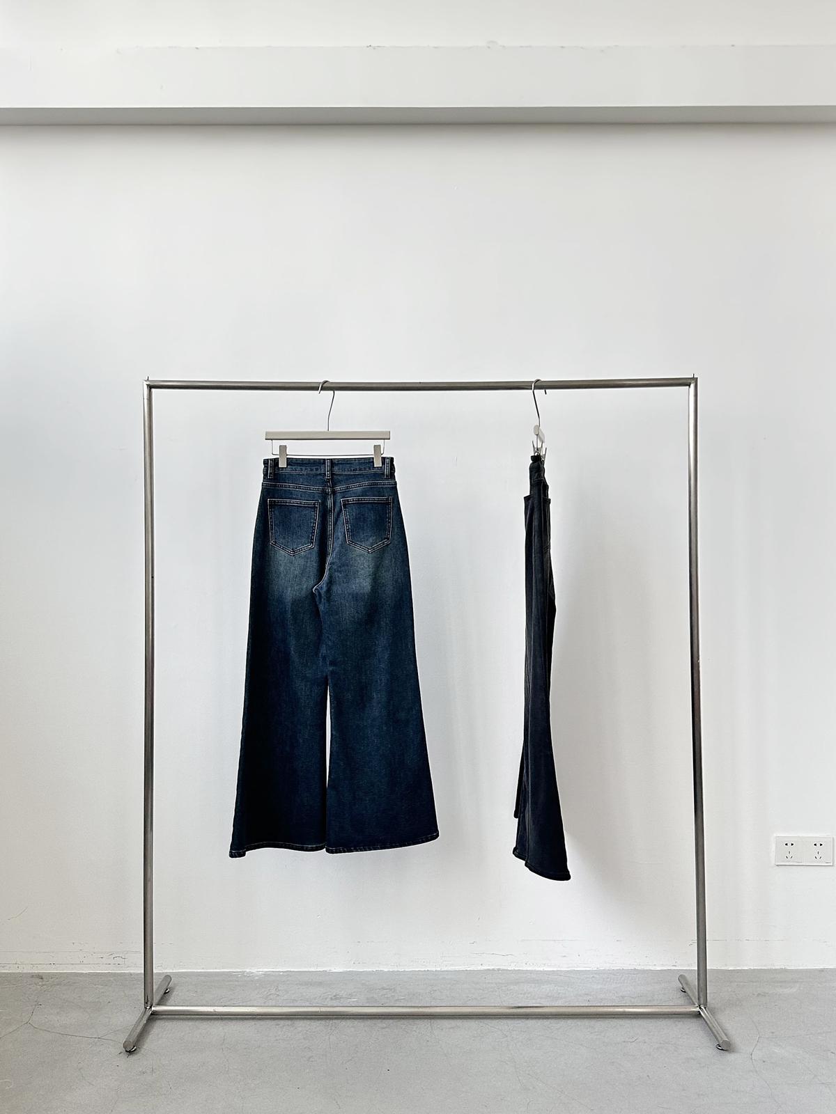 【C8145】輕奢燙鑽設計闊腿褲牛仔褲(配腰帶)