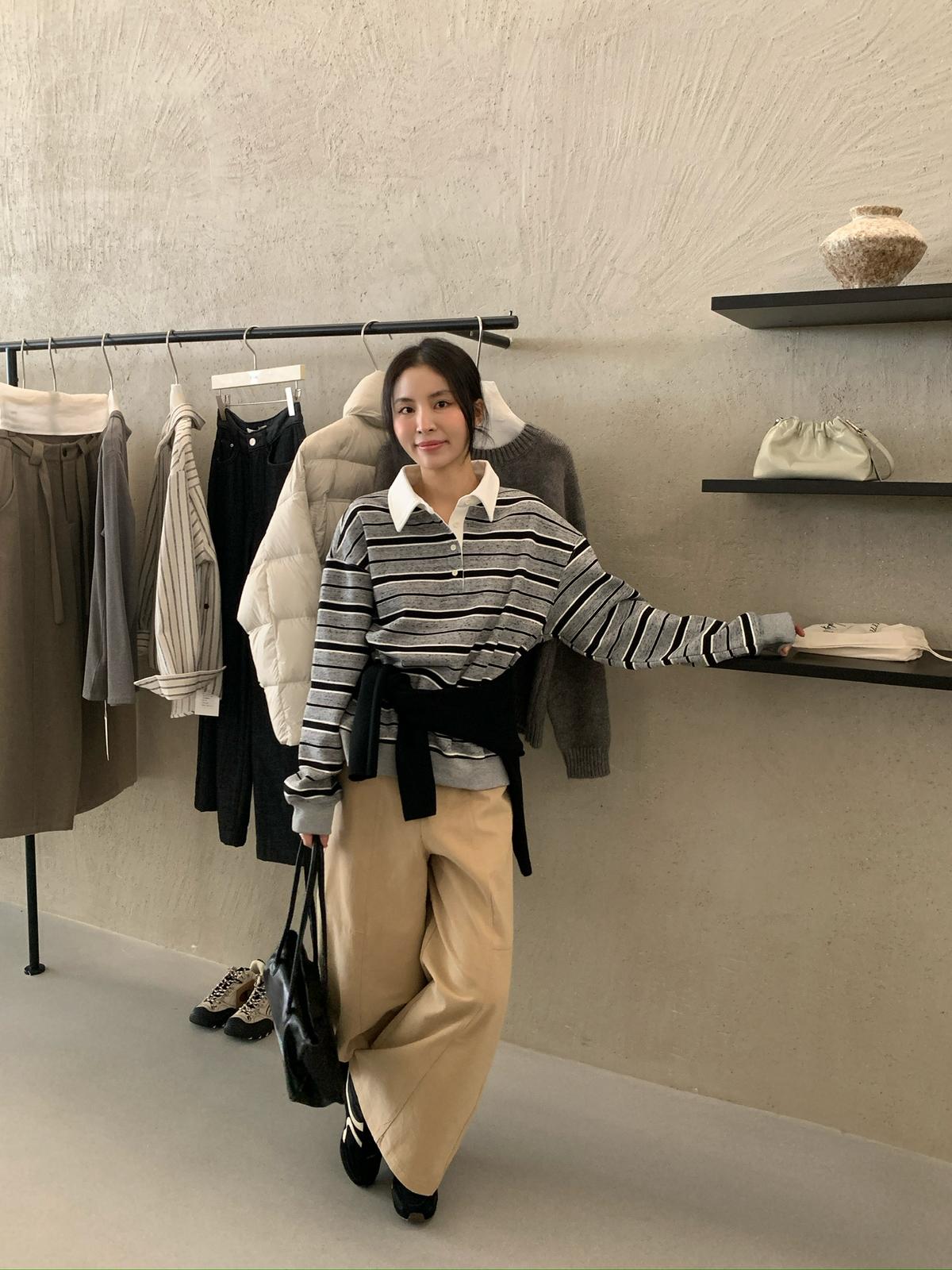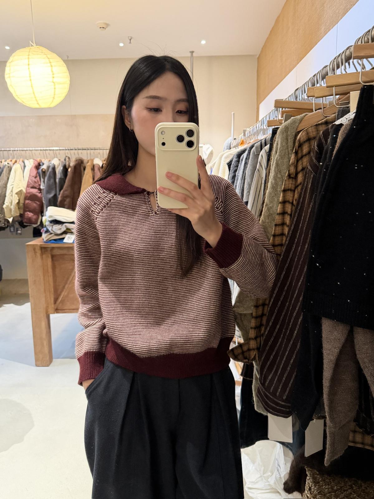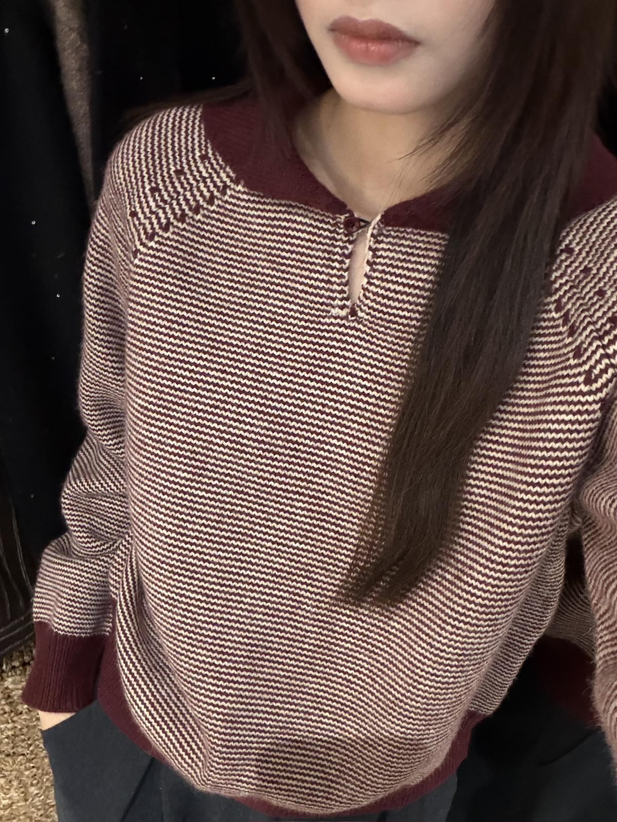 【C8163】韓系娃娃領撞色條紋插肩袖保暖毛衣