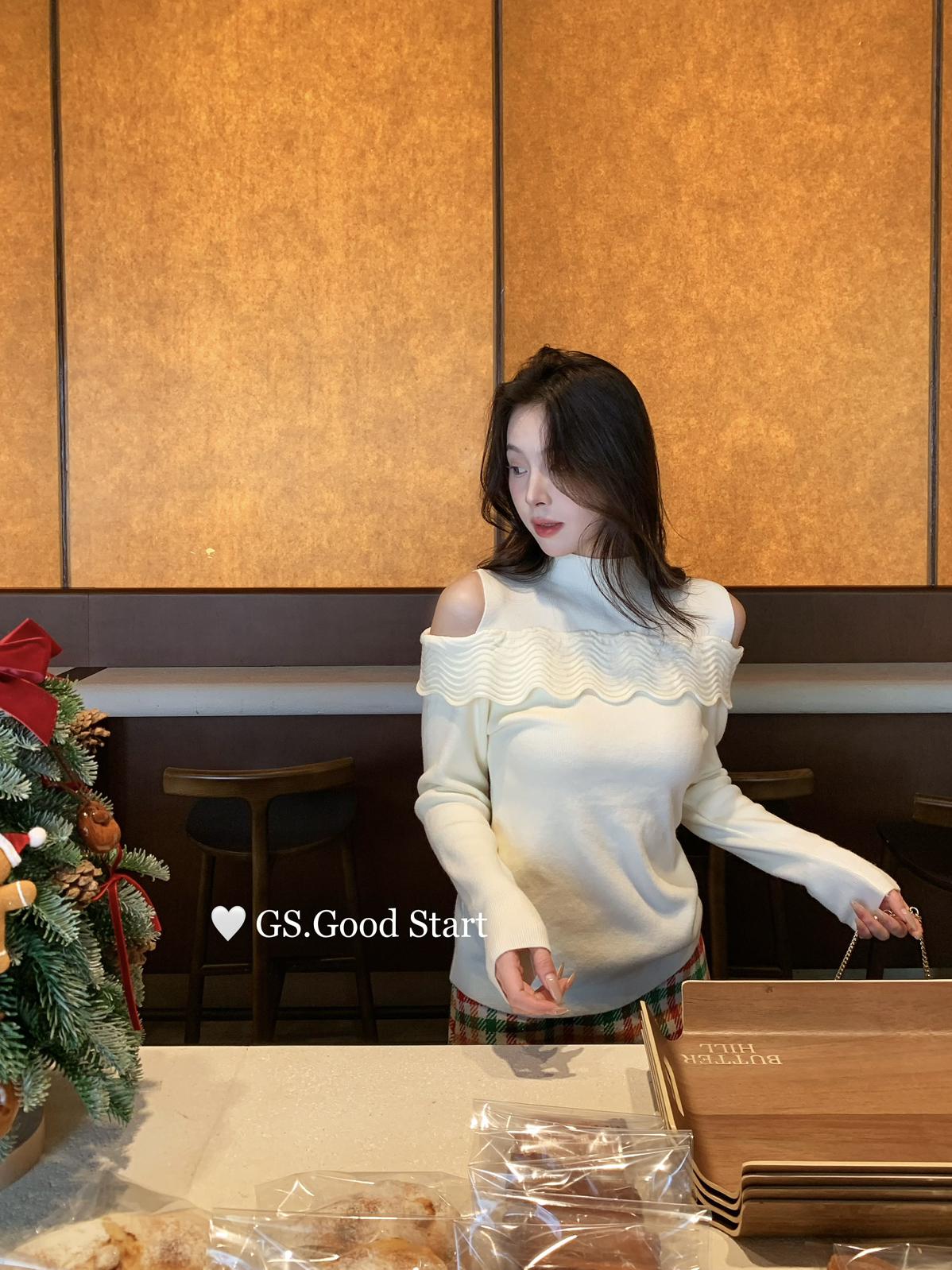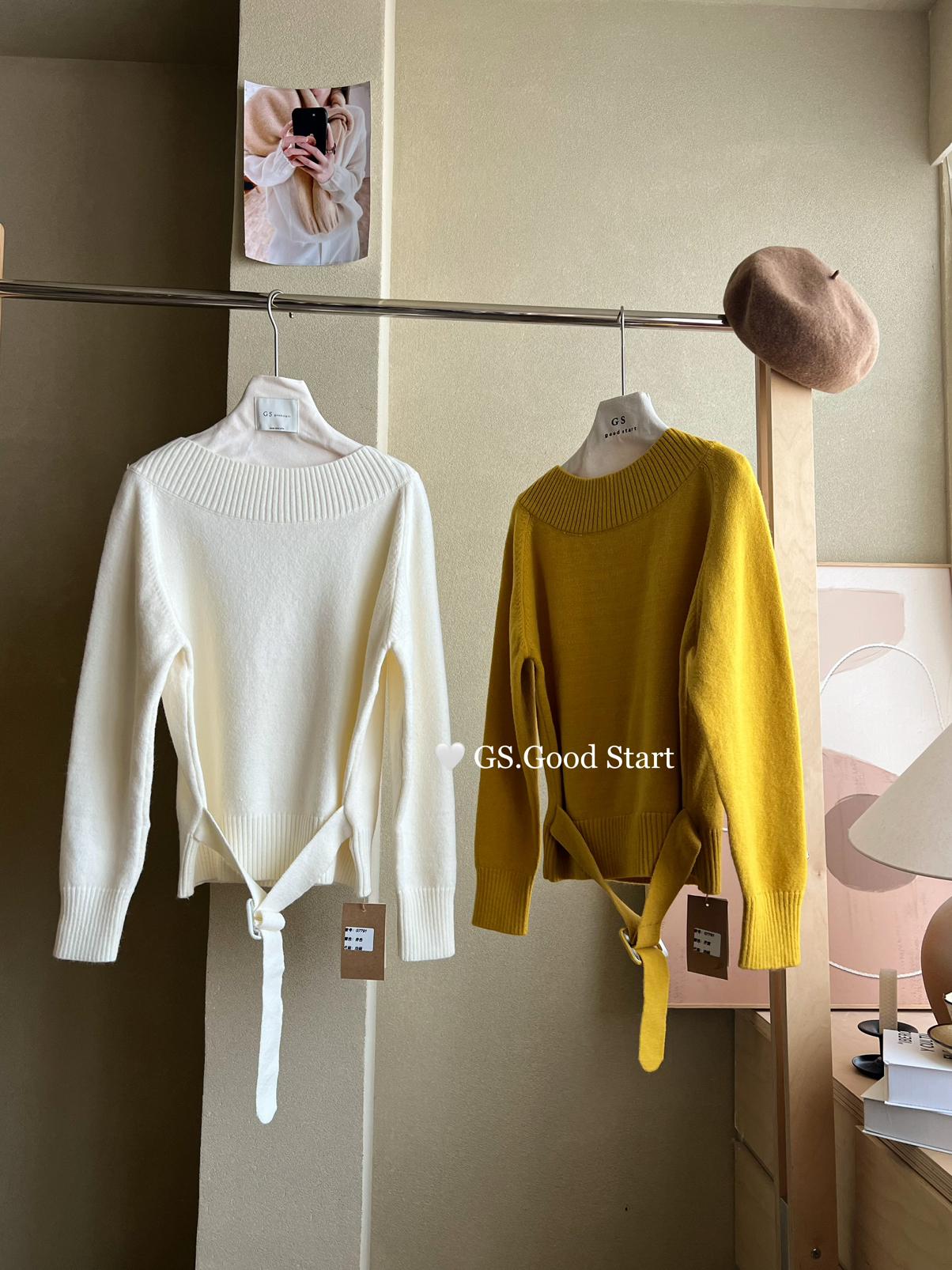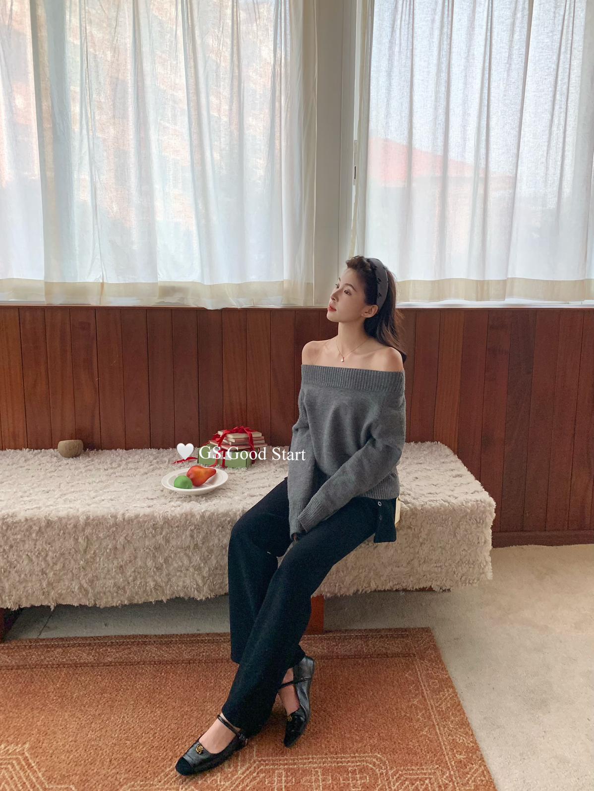 【C8171】節日預熱~穿搭小心機*秀出迷人天鵝頸!秋冬氣質小女人一字肩保暖毛衣(配可拆卸綁帶)