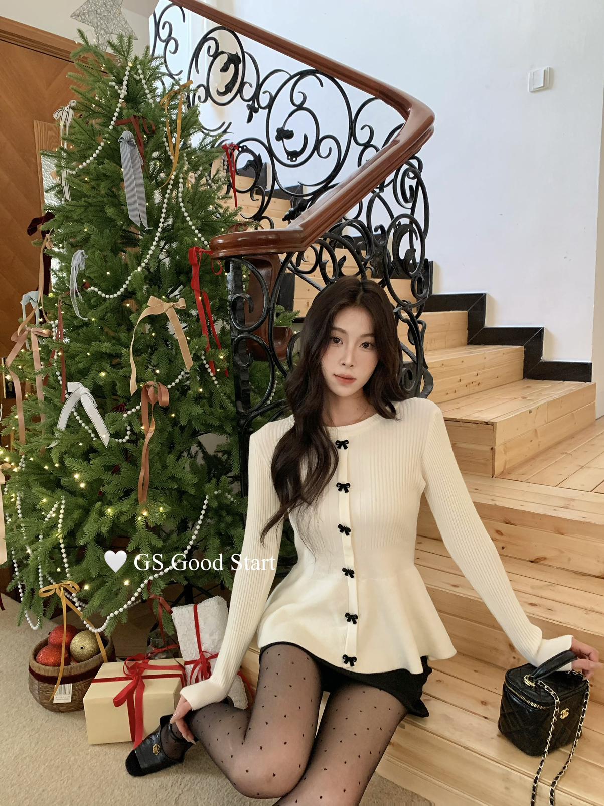【C8166】實力顯瘦版型!穿出小細腰~人氣王!冬氣質千金風蝴蝶結收腰針織衫