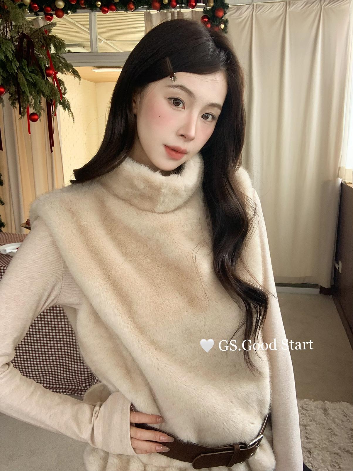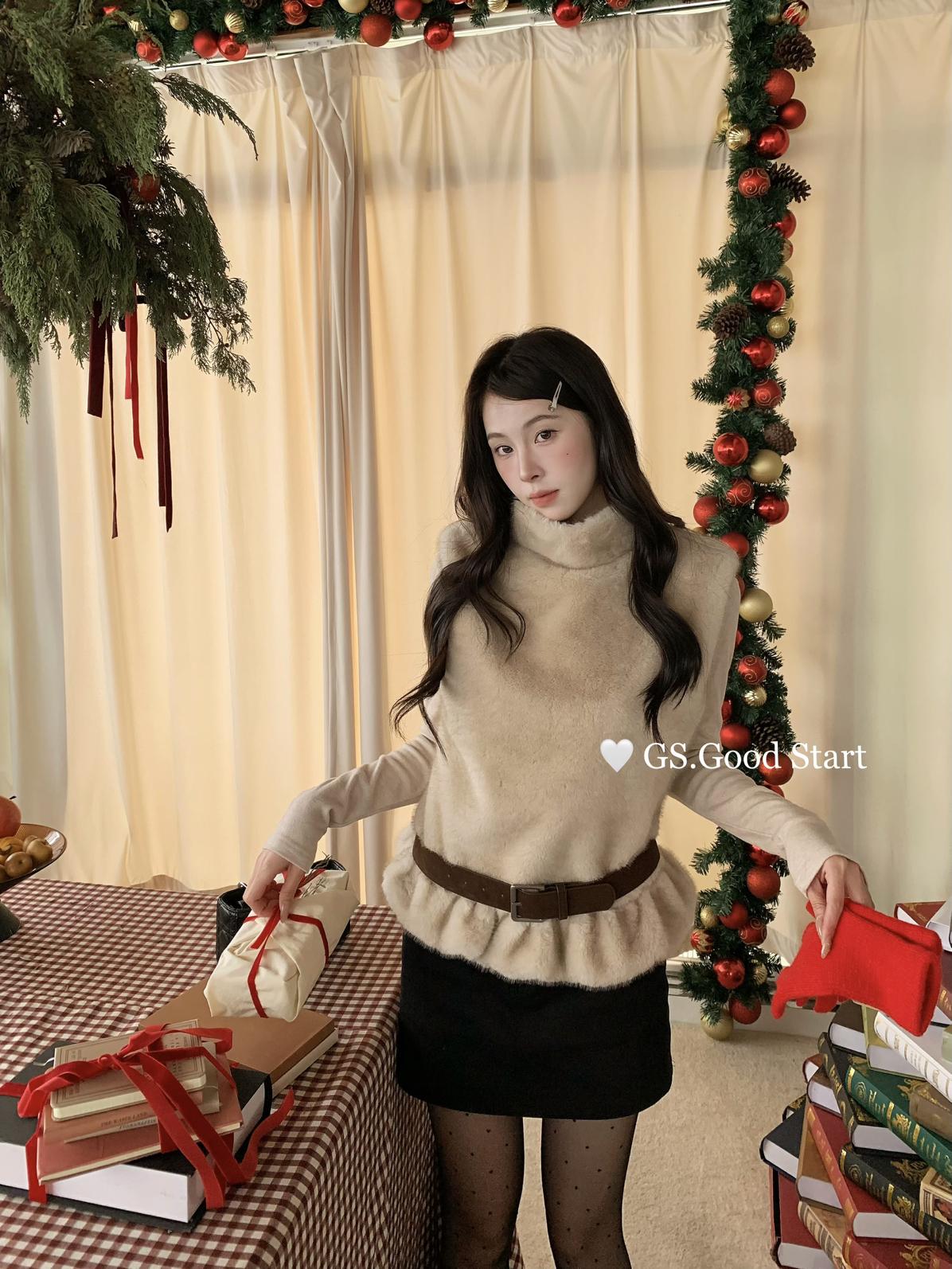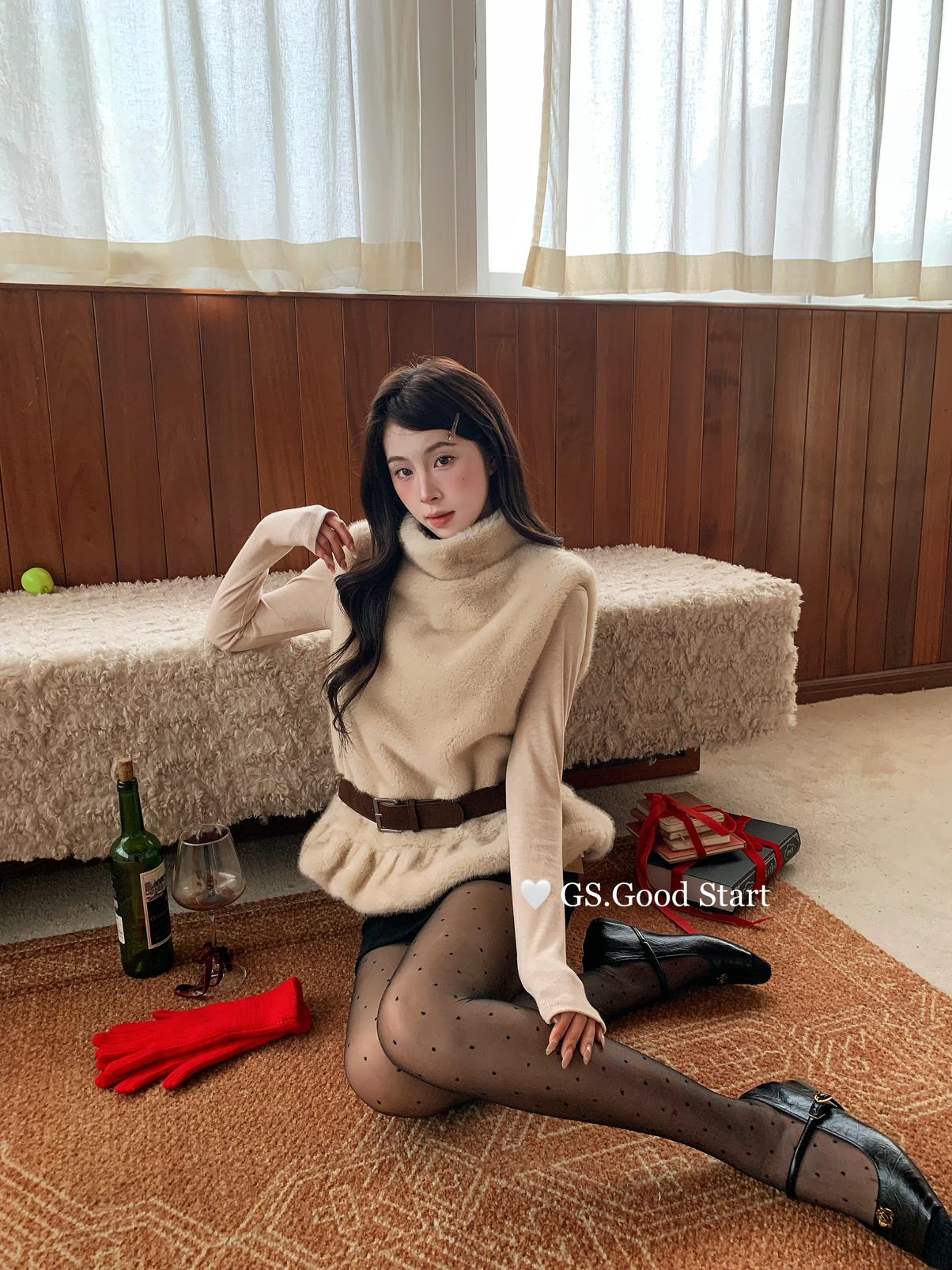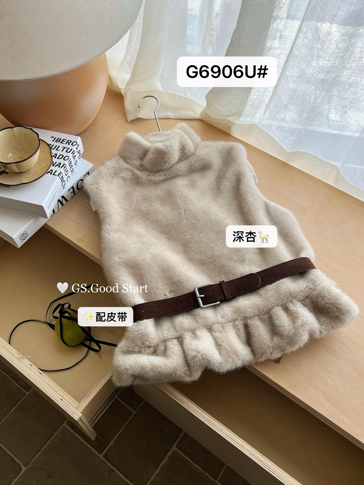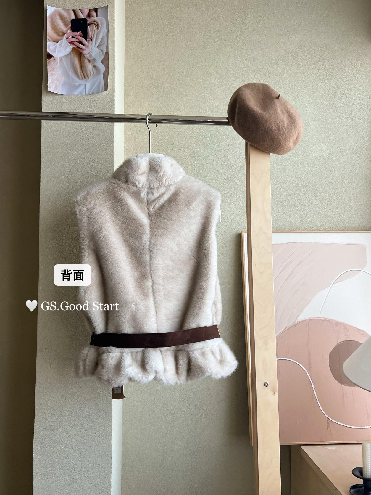 【C8169】被追着問!獨家*蓬蓬下襬設計~太乖啦!冬甜美設計感環保毛馬甲(配腰帶)