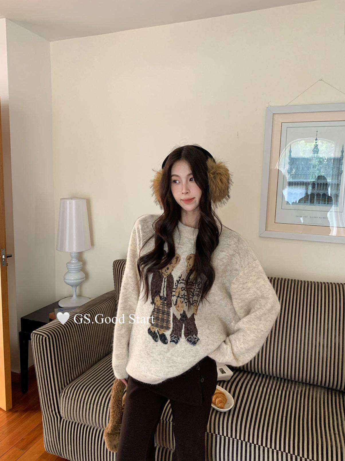 【C8172】好愛·軟軟糯糯大毛衣~慵懶隨性!韓系甜美減齡小熊寬鬆休閒保暖毛衣