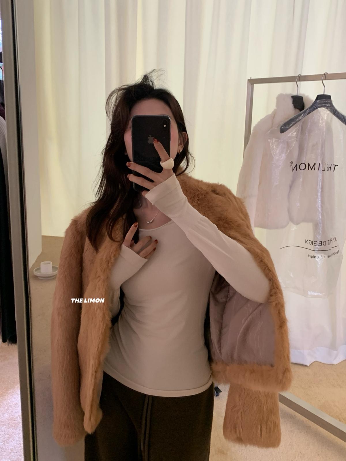 【C8138】小衆設計感大翻領拼接環保毛毛加厚保暖短外套