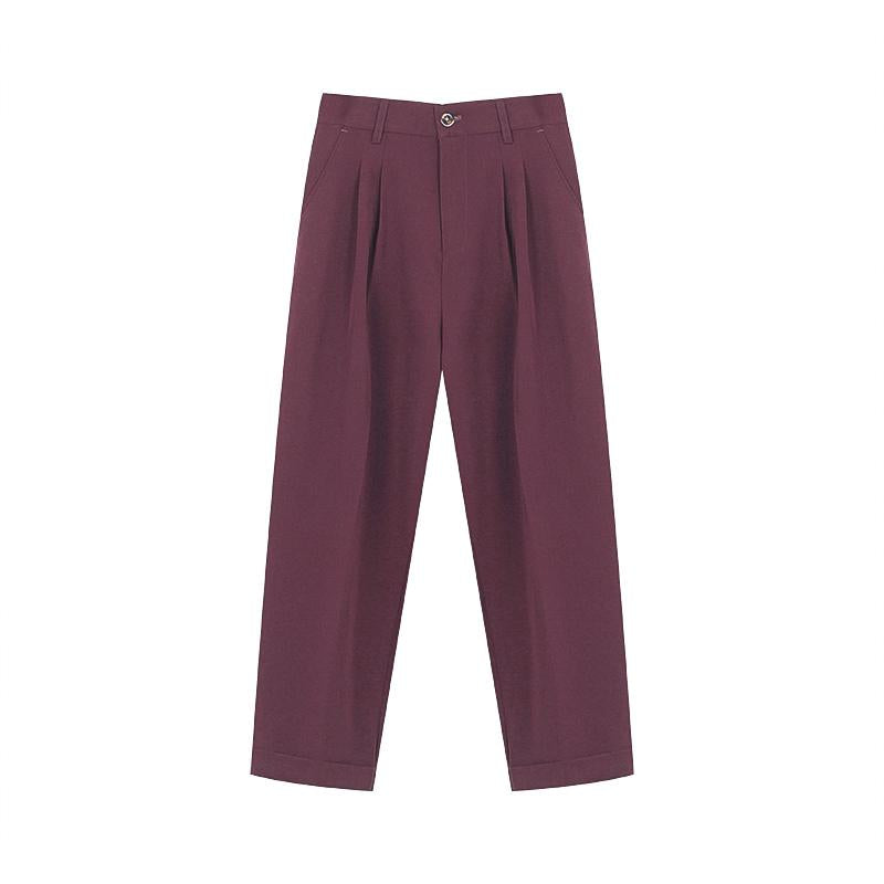 【C8016】韓系通勤九分直筒褲折邊寬鬆高腰休閒褲