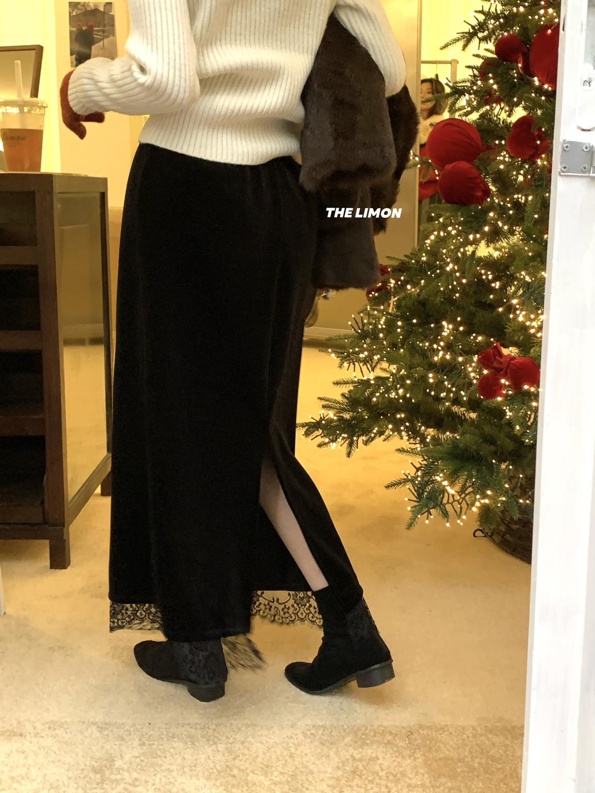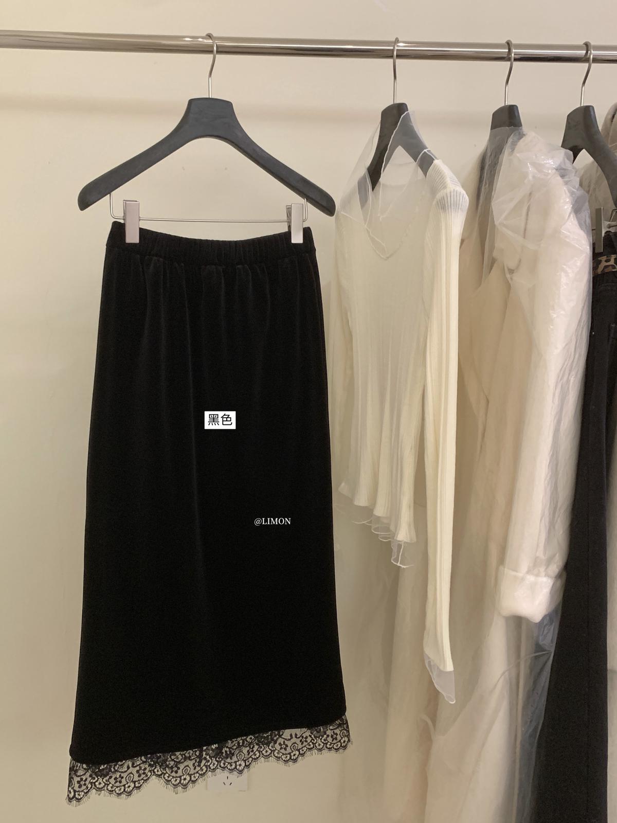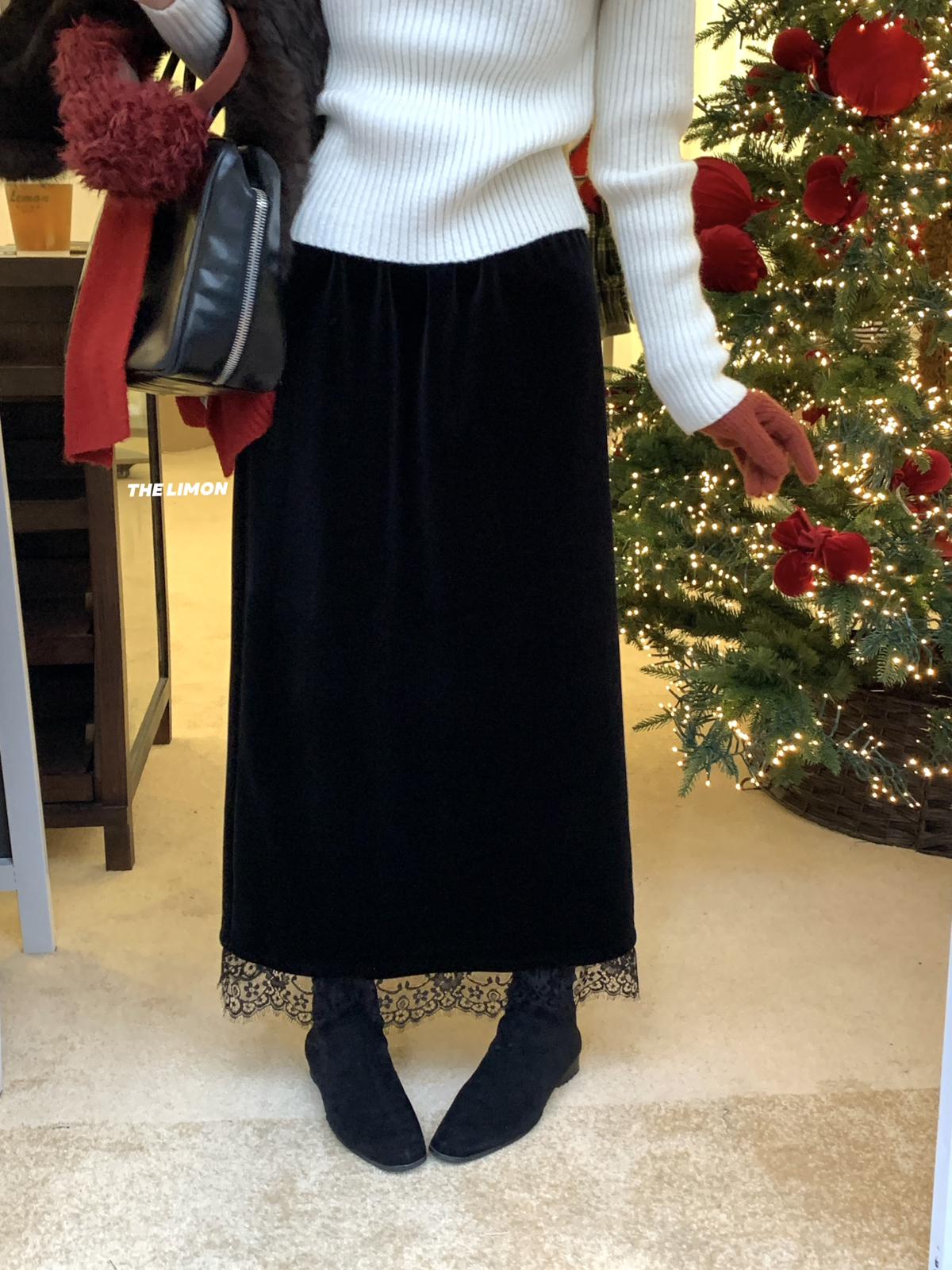 【C8071】韓系氛圍感蕾絲拼接加厚絲絨半身裙