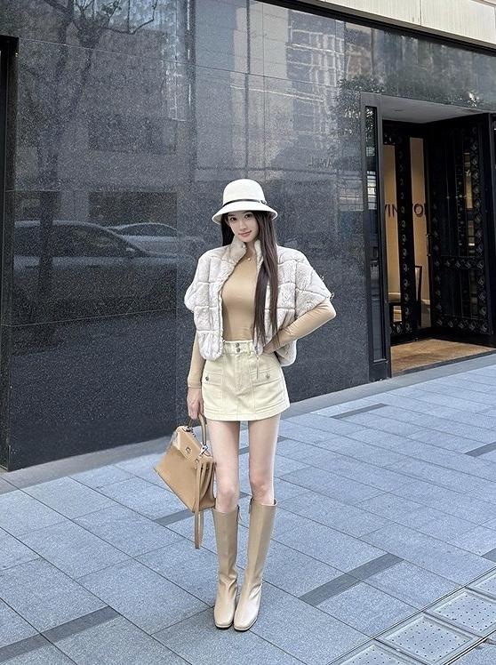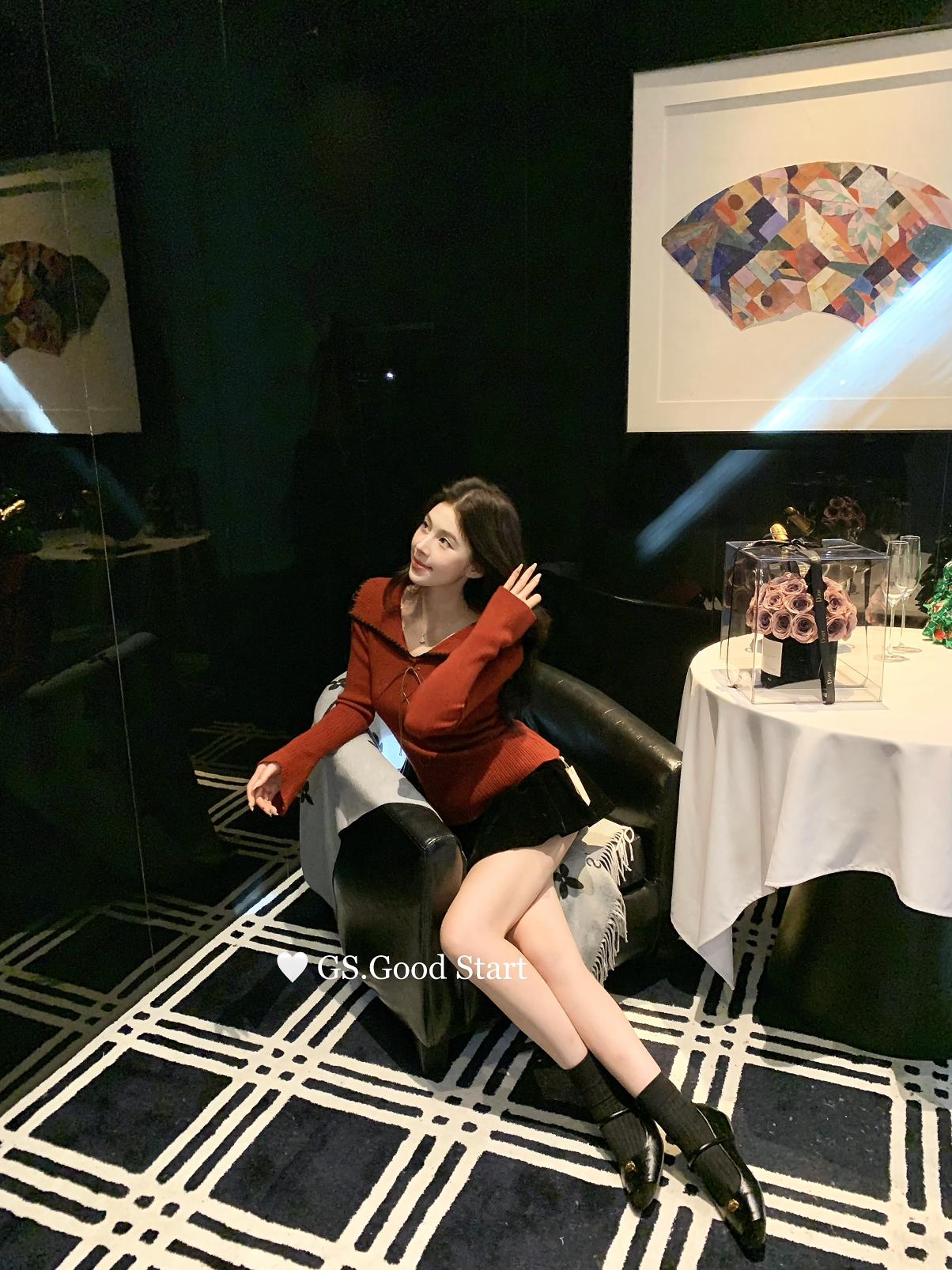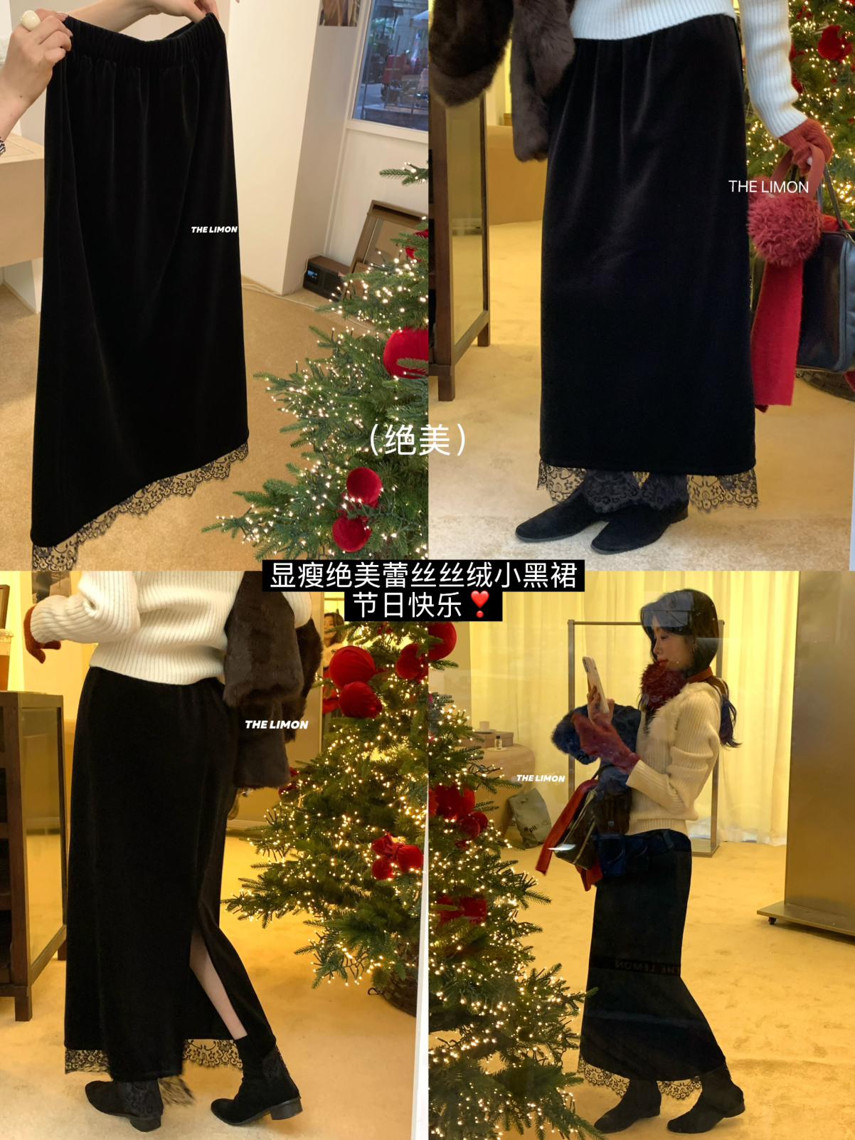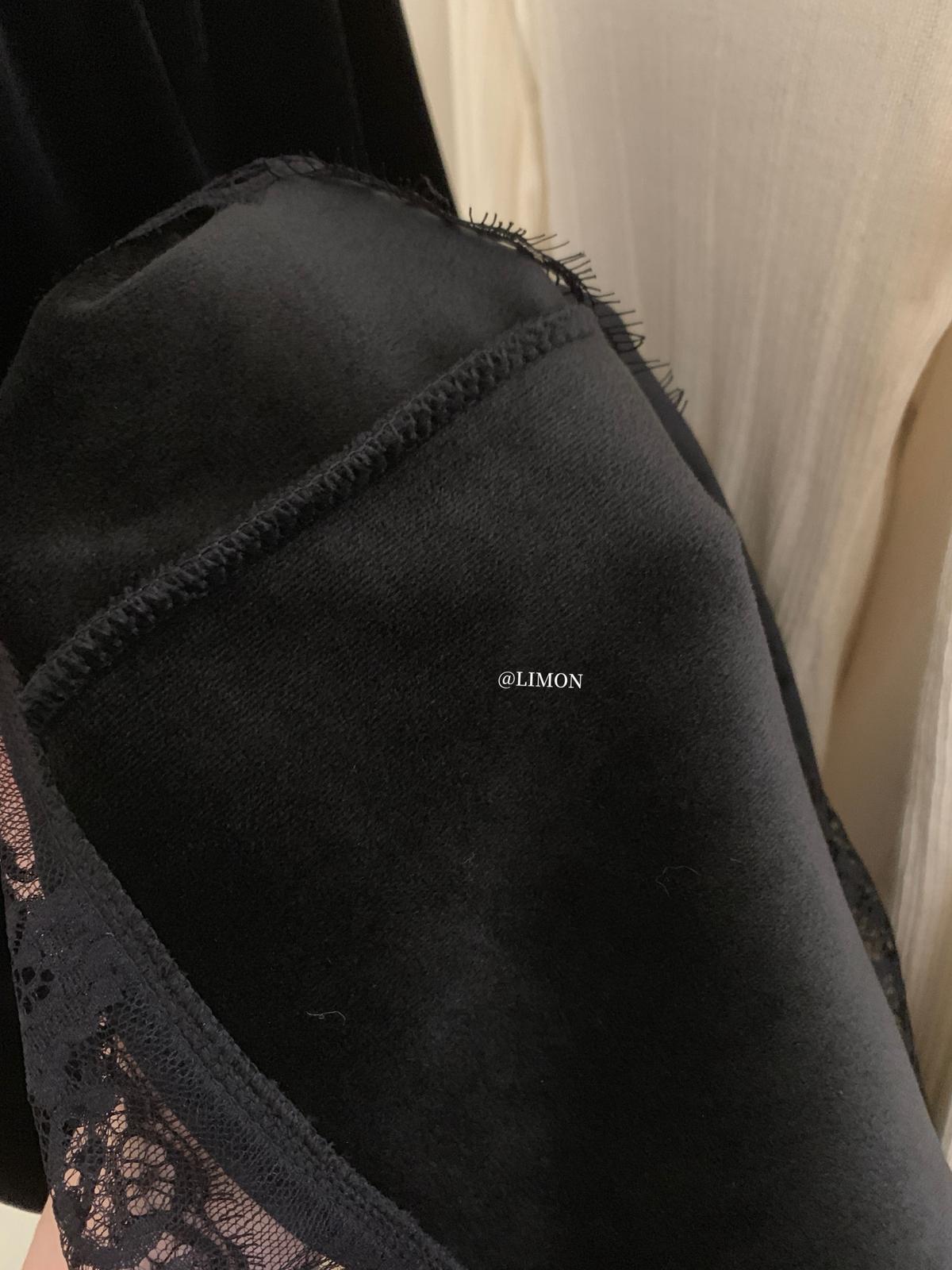 【C8071】韓系氛圍感蕾絲拼接加厚絲絨半身裙