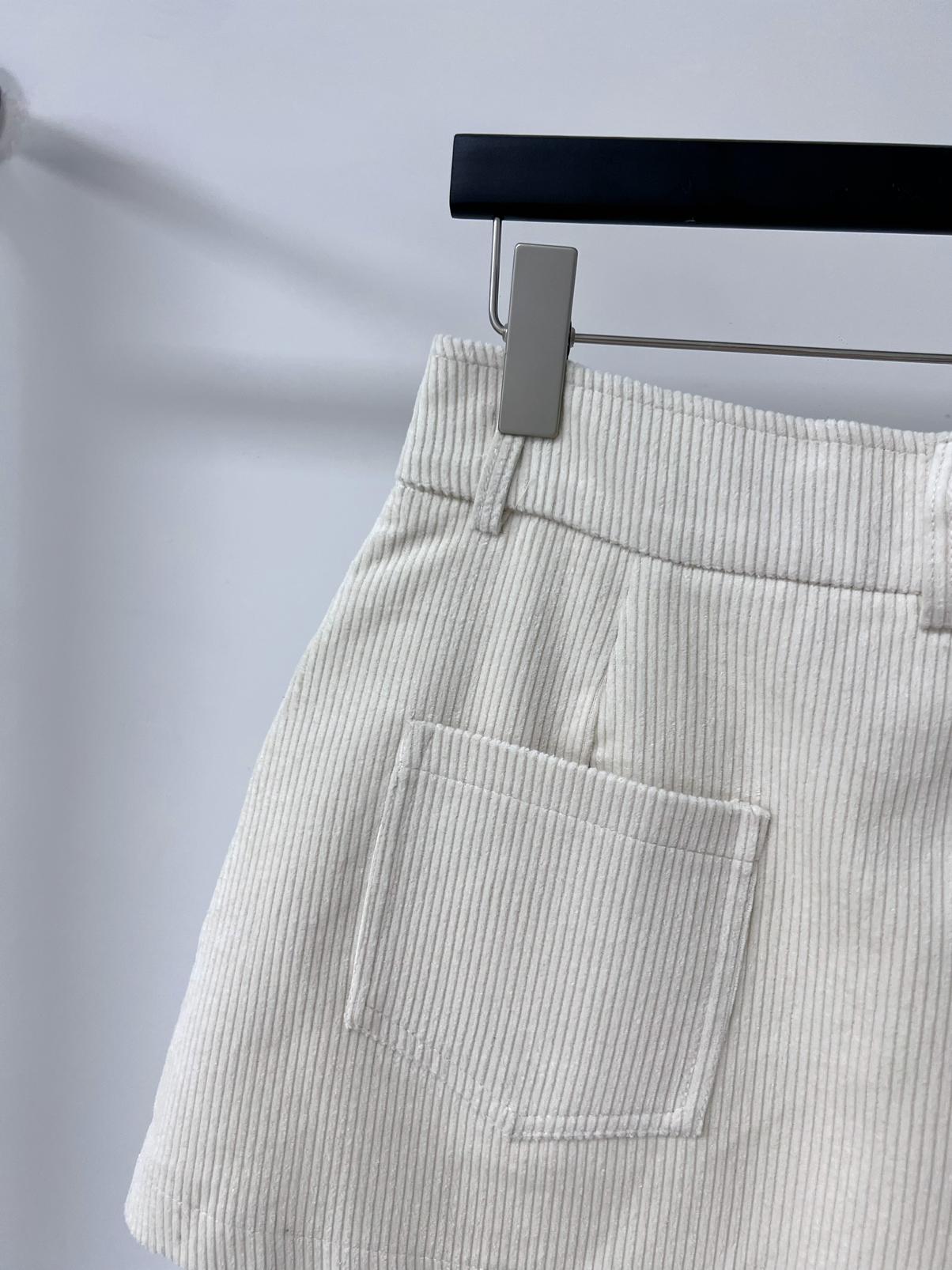 【C8018】韓系百搭純色高腰口袋拼接燈芯絨A字半身裙