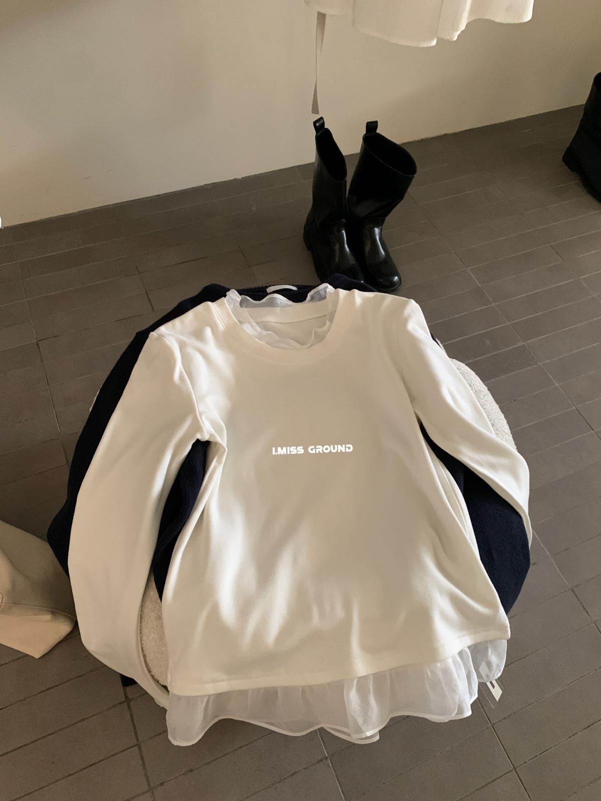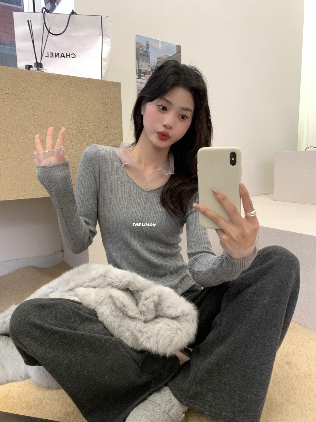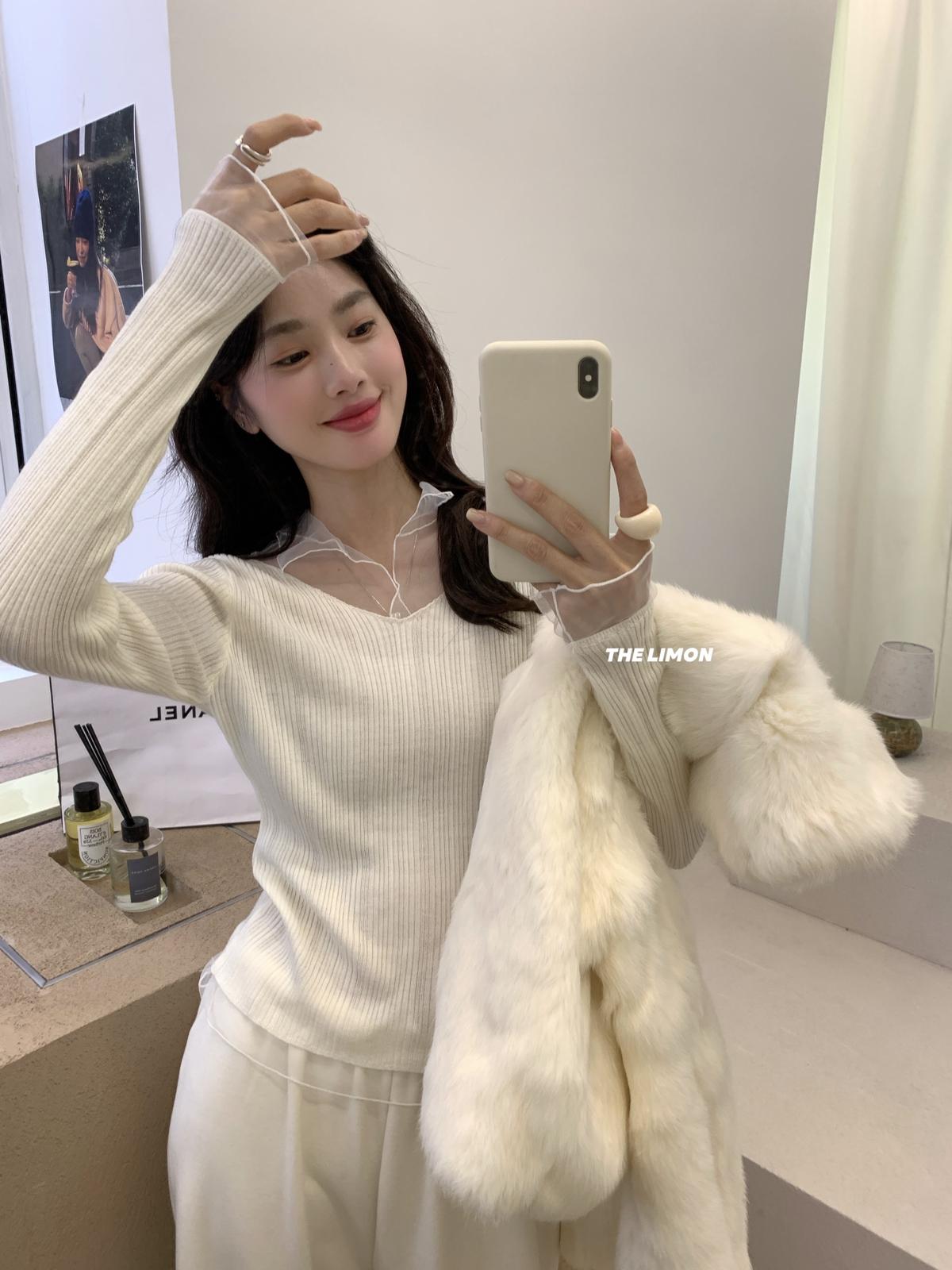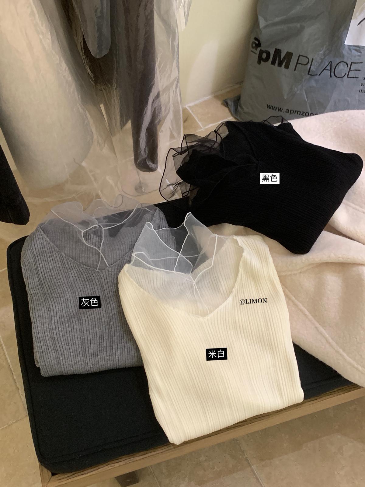 【C8019】絕美仙仙兒加絨加厚歐根紗拼接打底衫