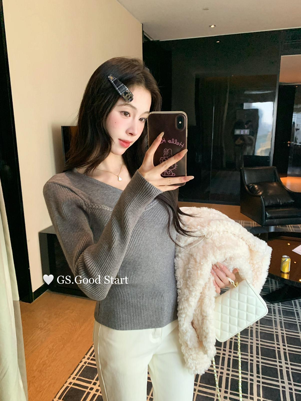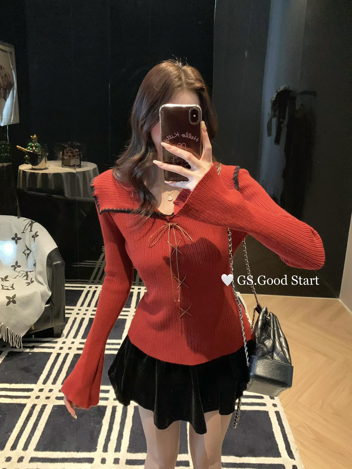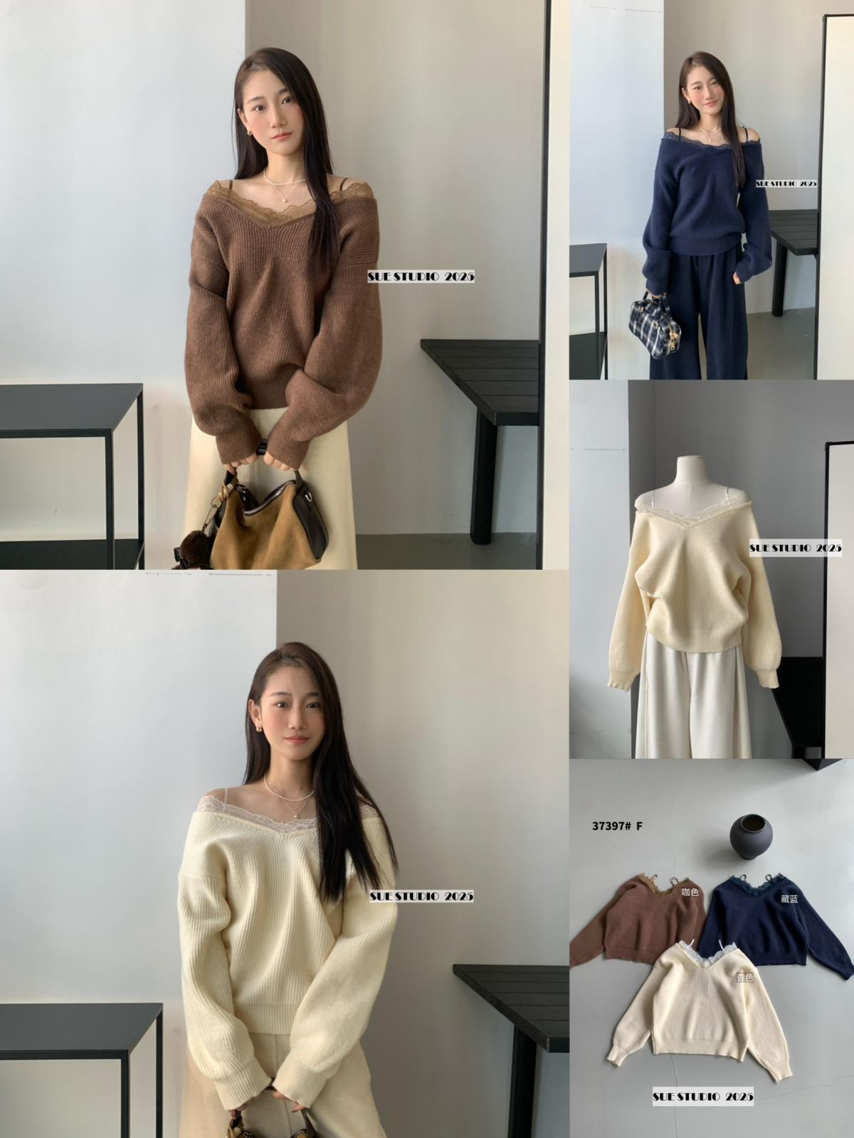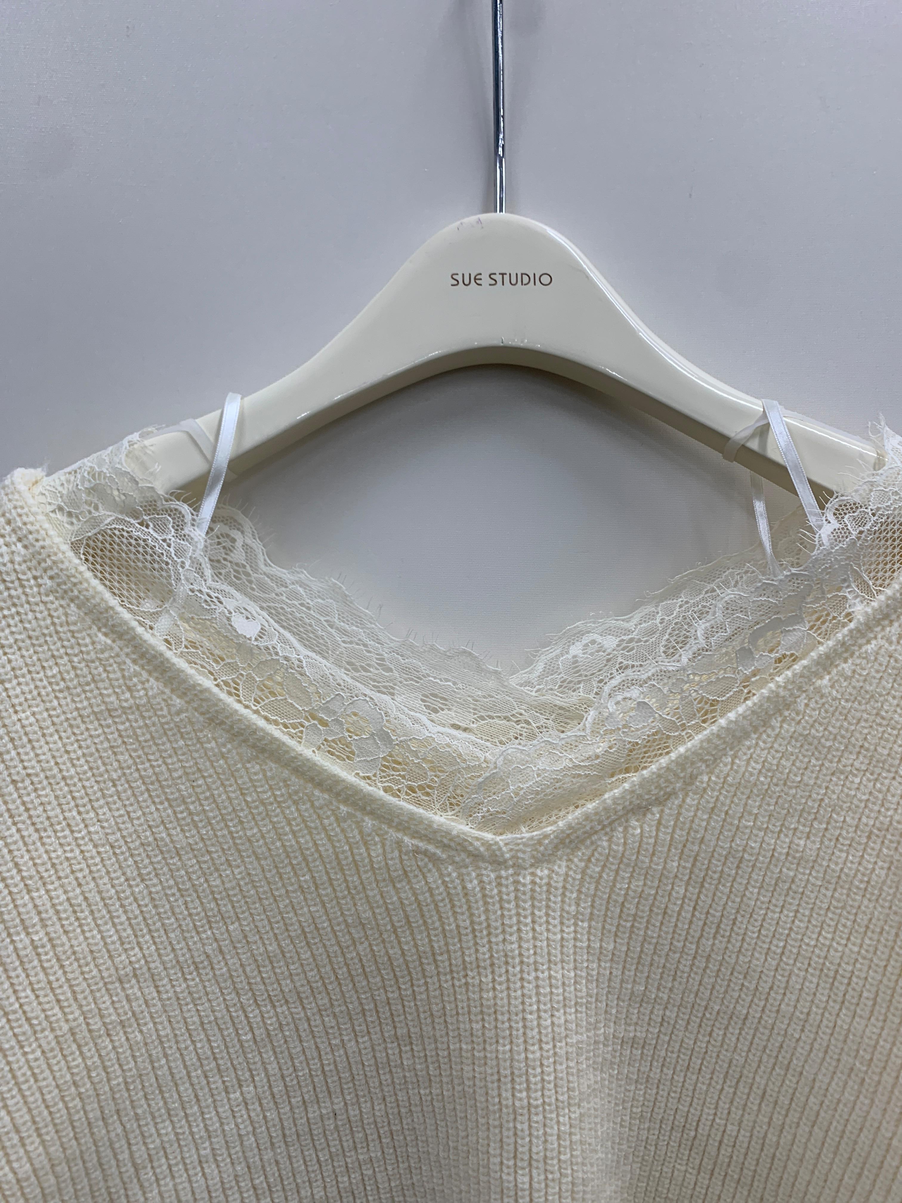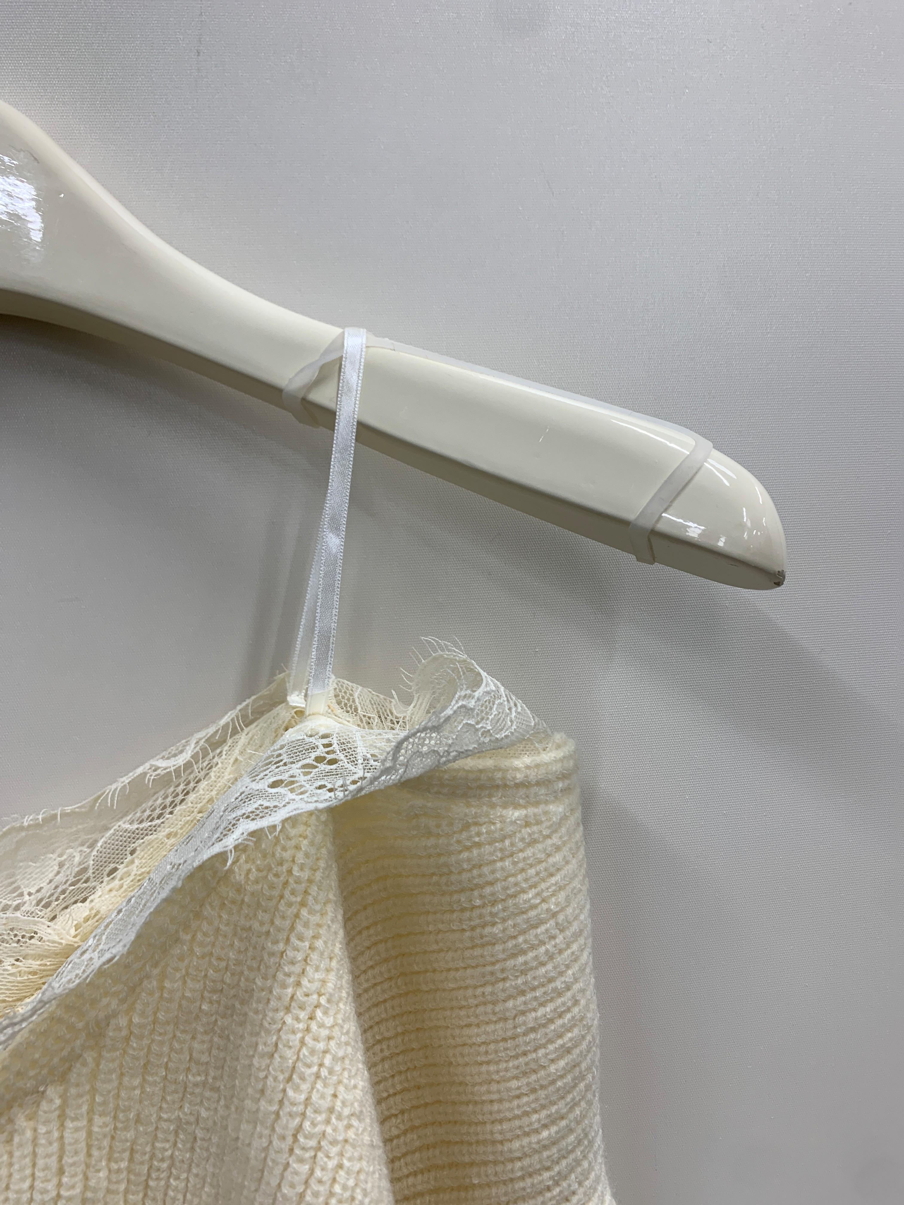 【C8020】韓系蕾絲小設計感一字領毛衣