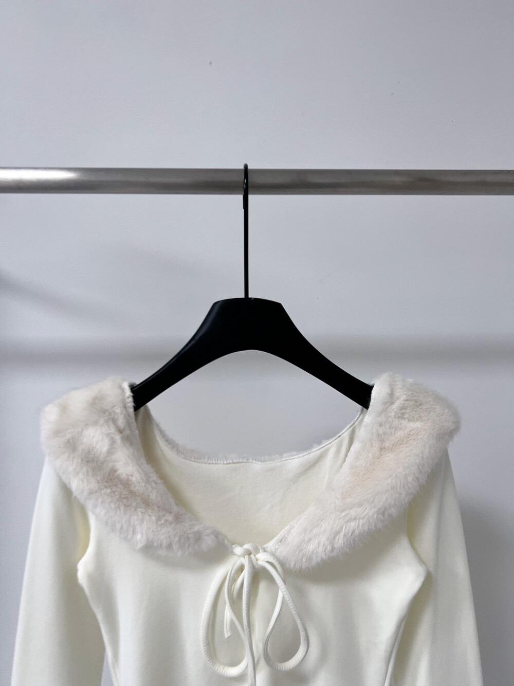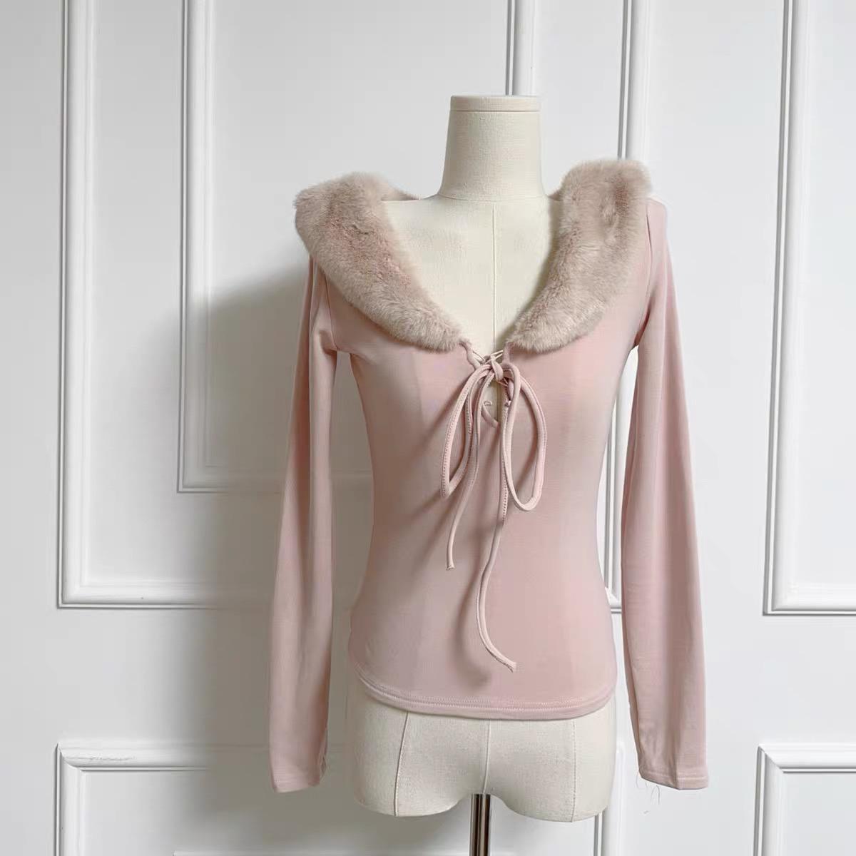 【C8021】韓系u領拼環保毛兩面穿小衫