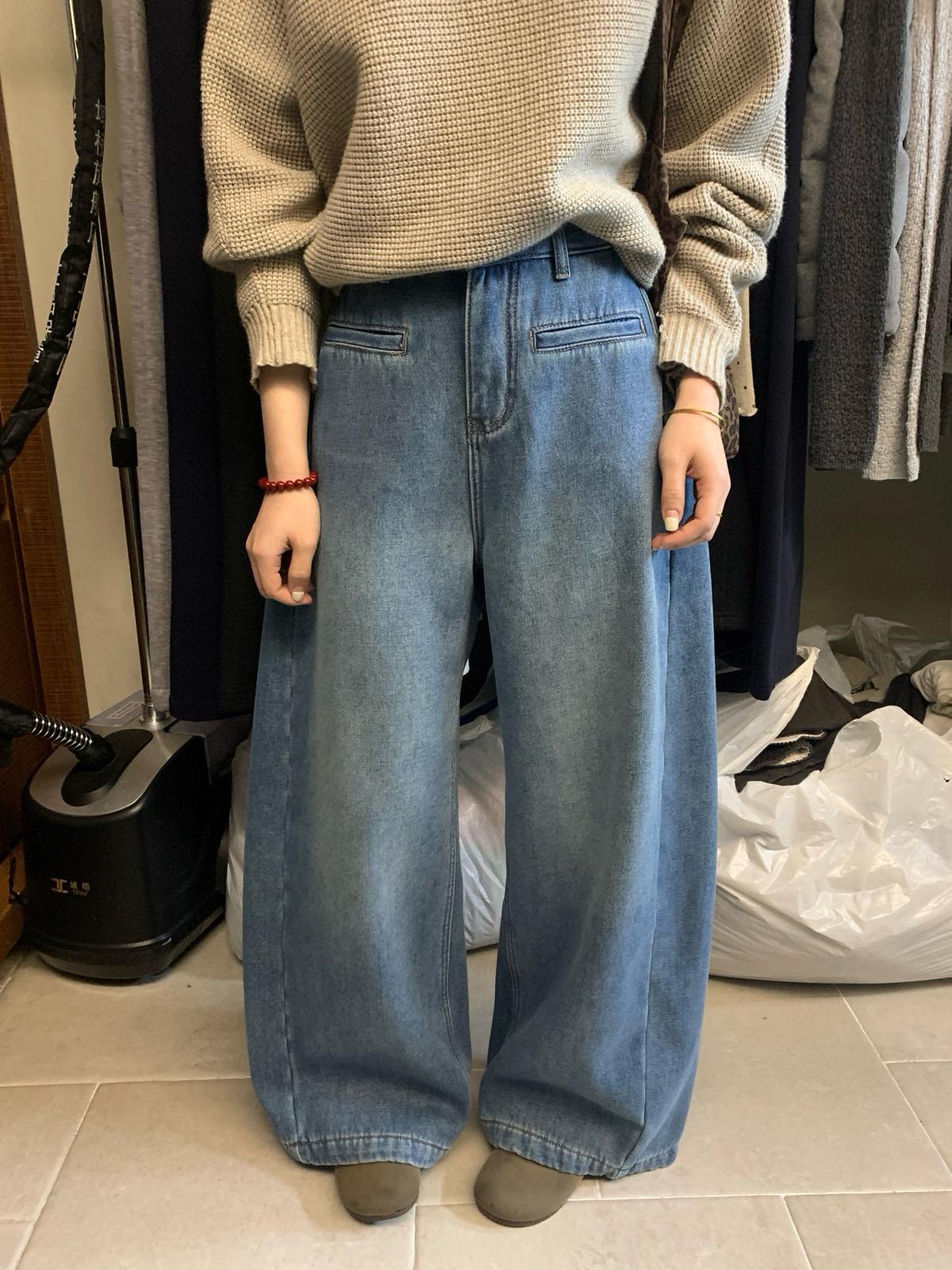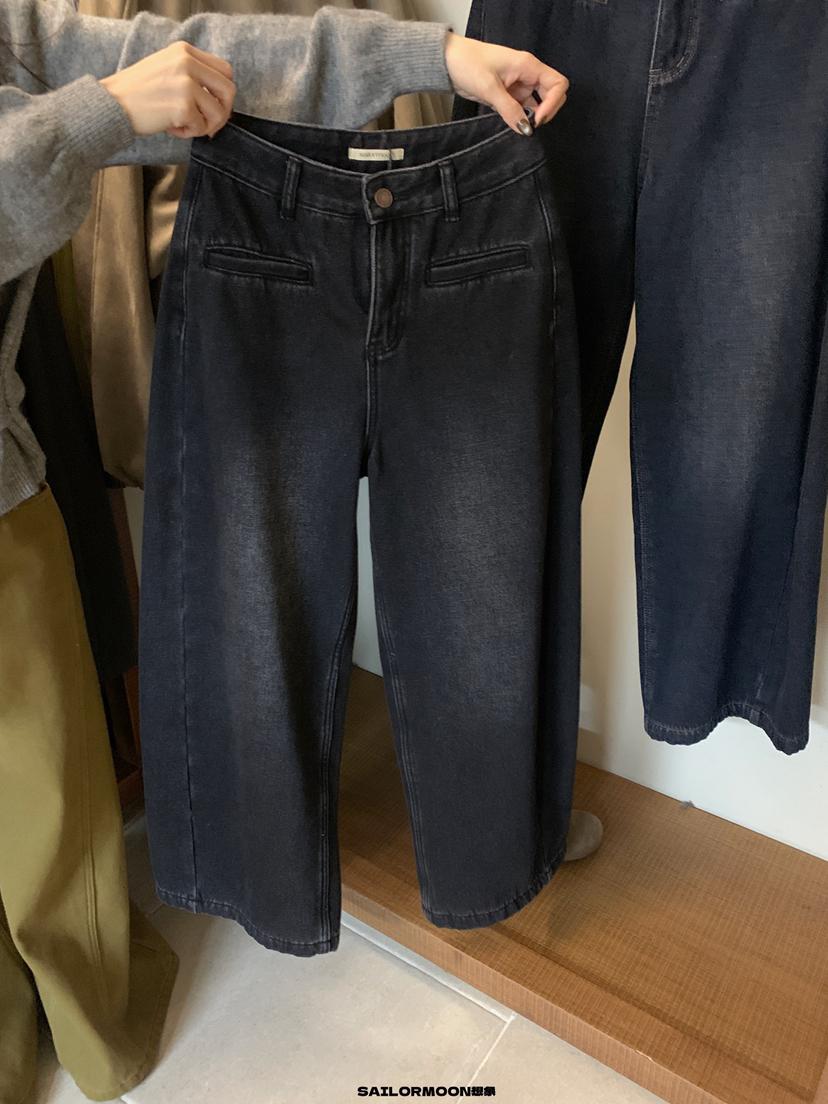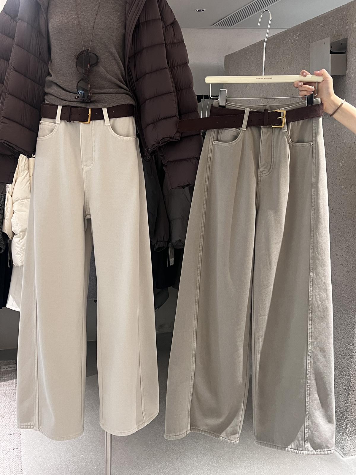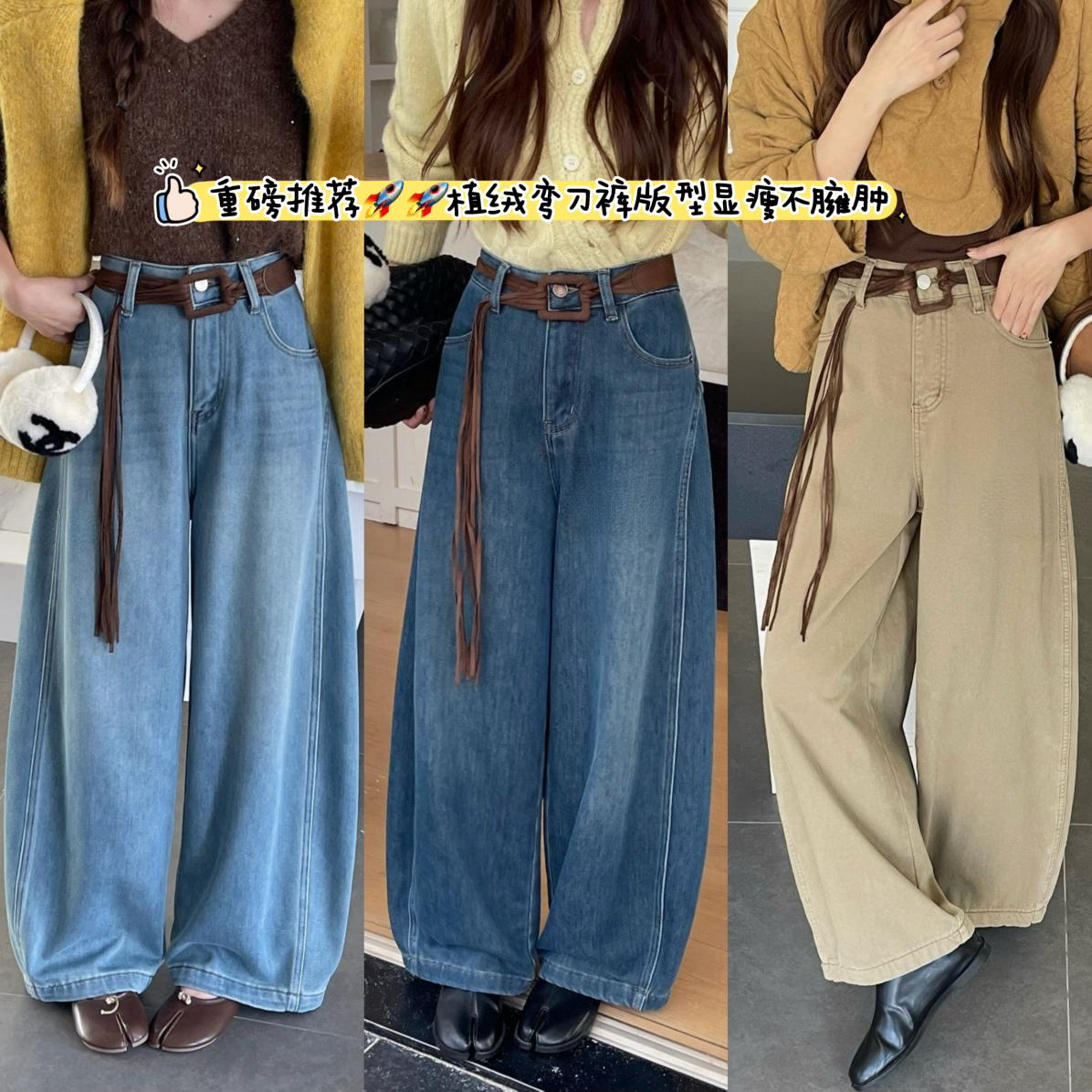 【C8085】重磅推薦植絨彎刀褲版型顯瘦不臃腫慵懶隨性感輕鬆拿捏牛仔褲(配腰帶)