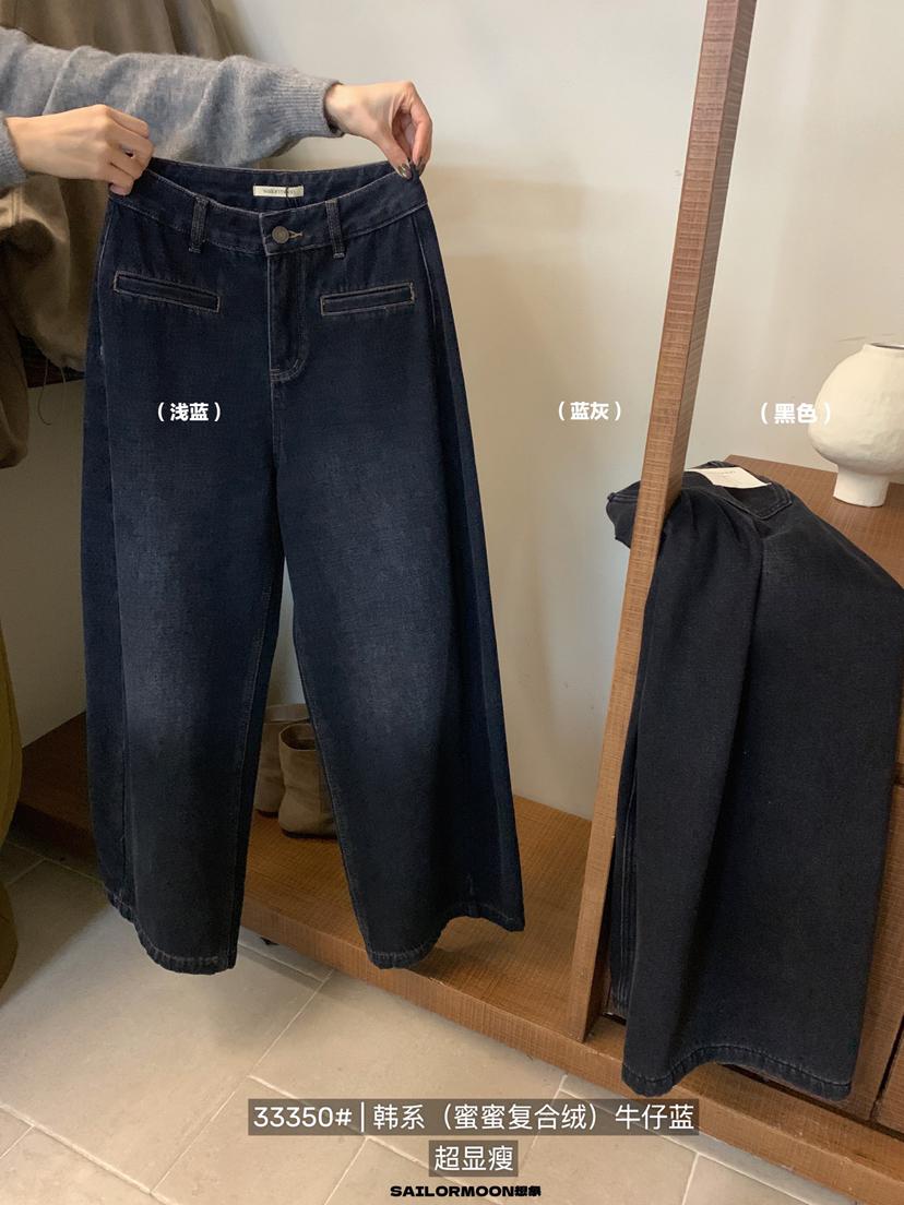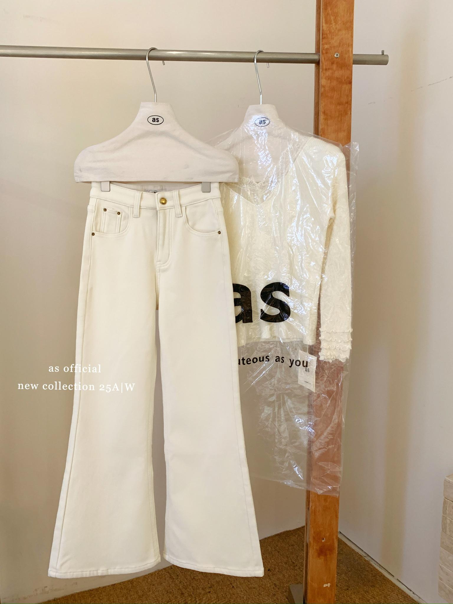 【C8029】秋冬限定‘一體絨’加絨高彈|掐出韓女腰身比例 提臀直腿微喇牛仔褲(1秒好身材的祕密~)