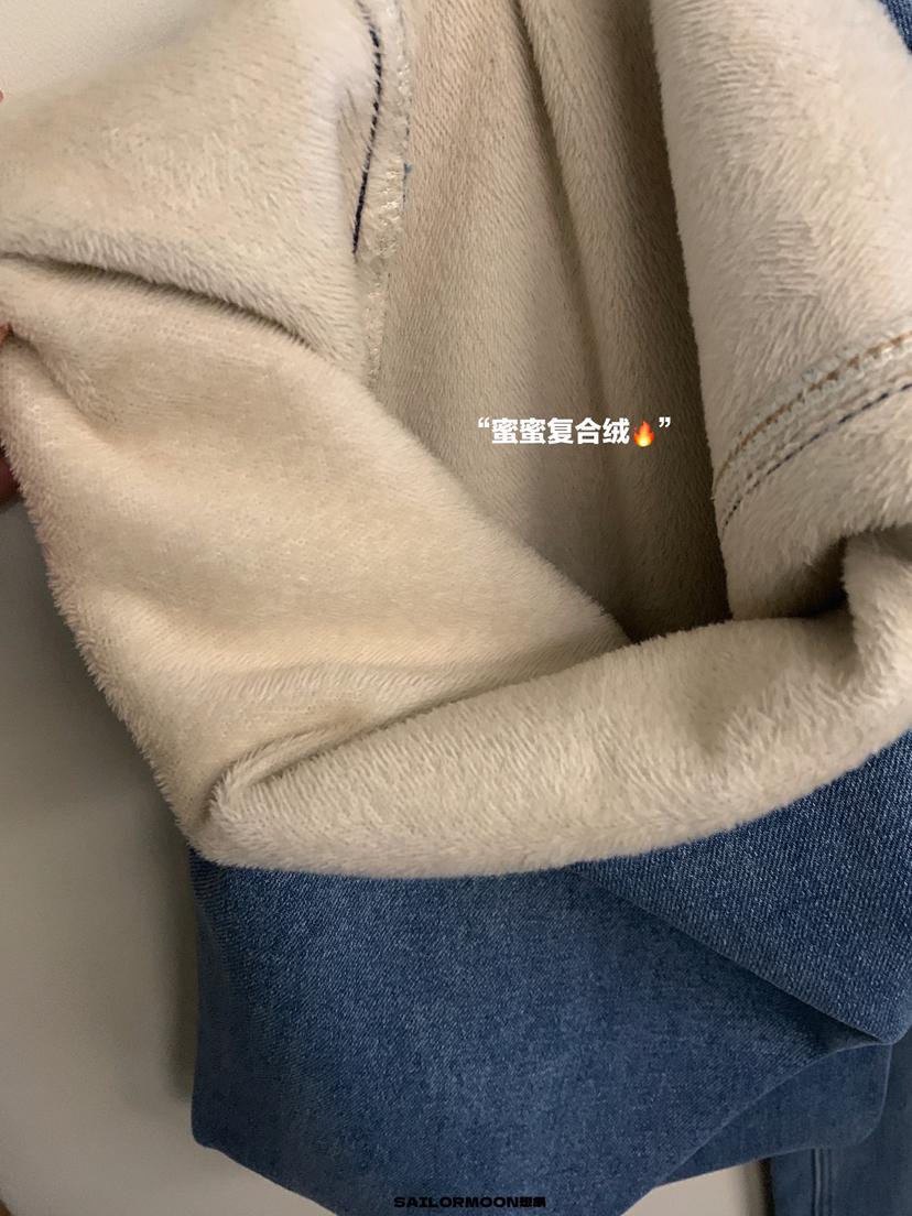 【C8023】高腰漸變加絨洋氣顯瘦牛仔褲