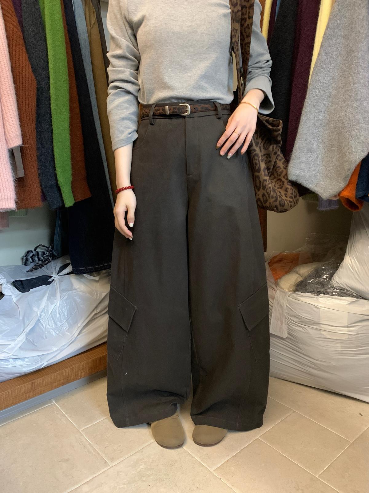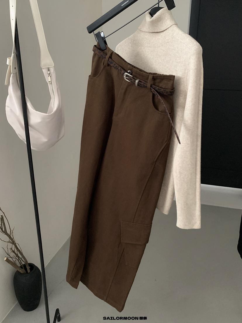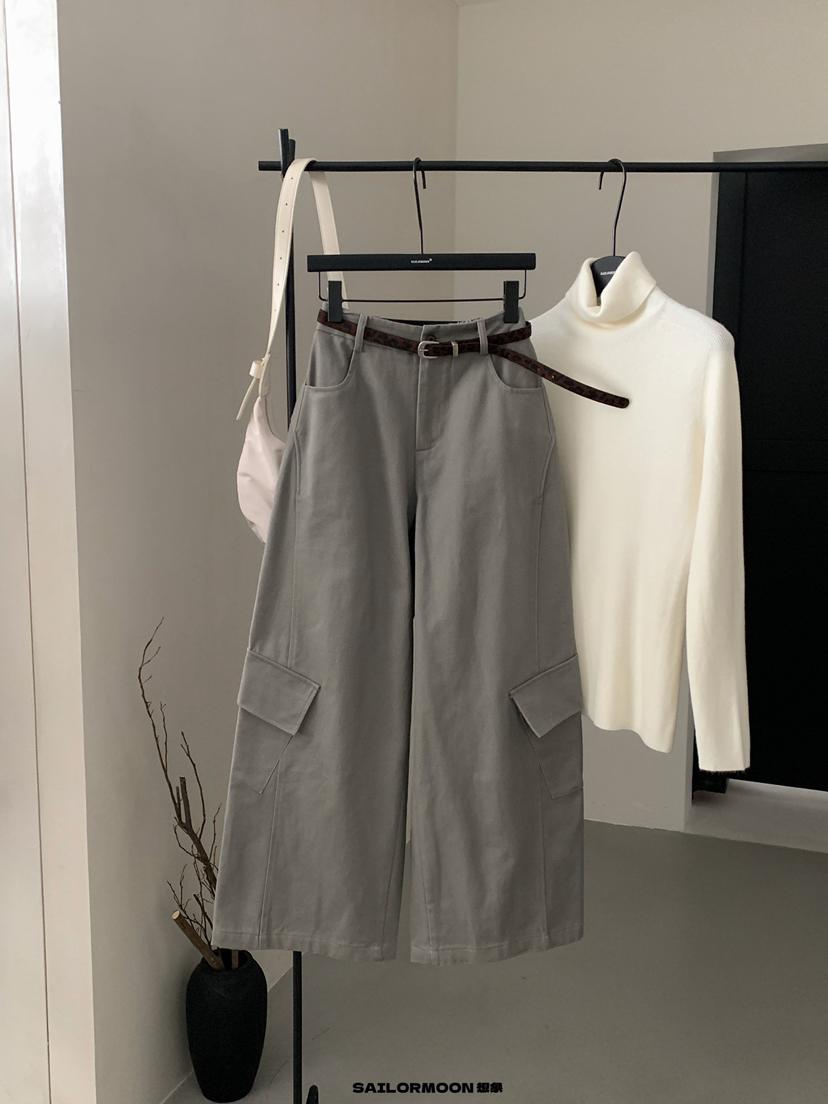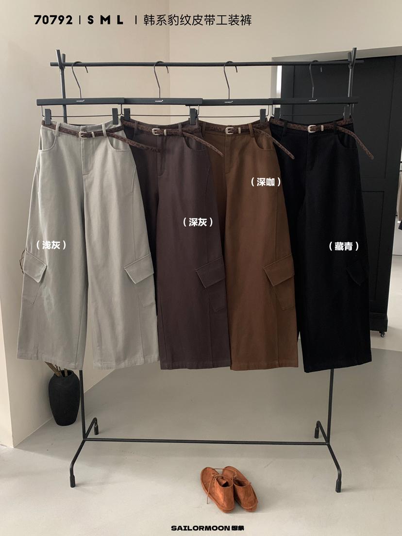 【C8025】復古闊腿大口袋時尚工裝褲(配腰帶)