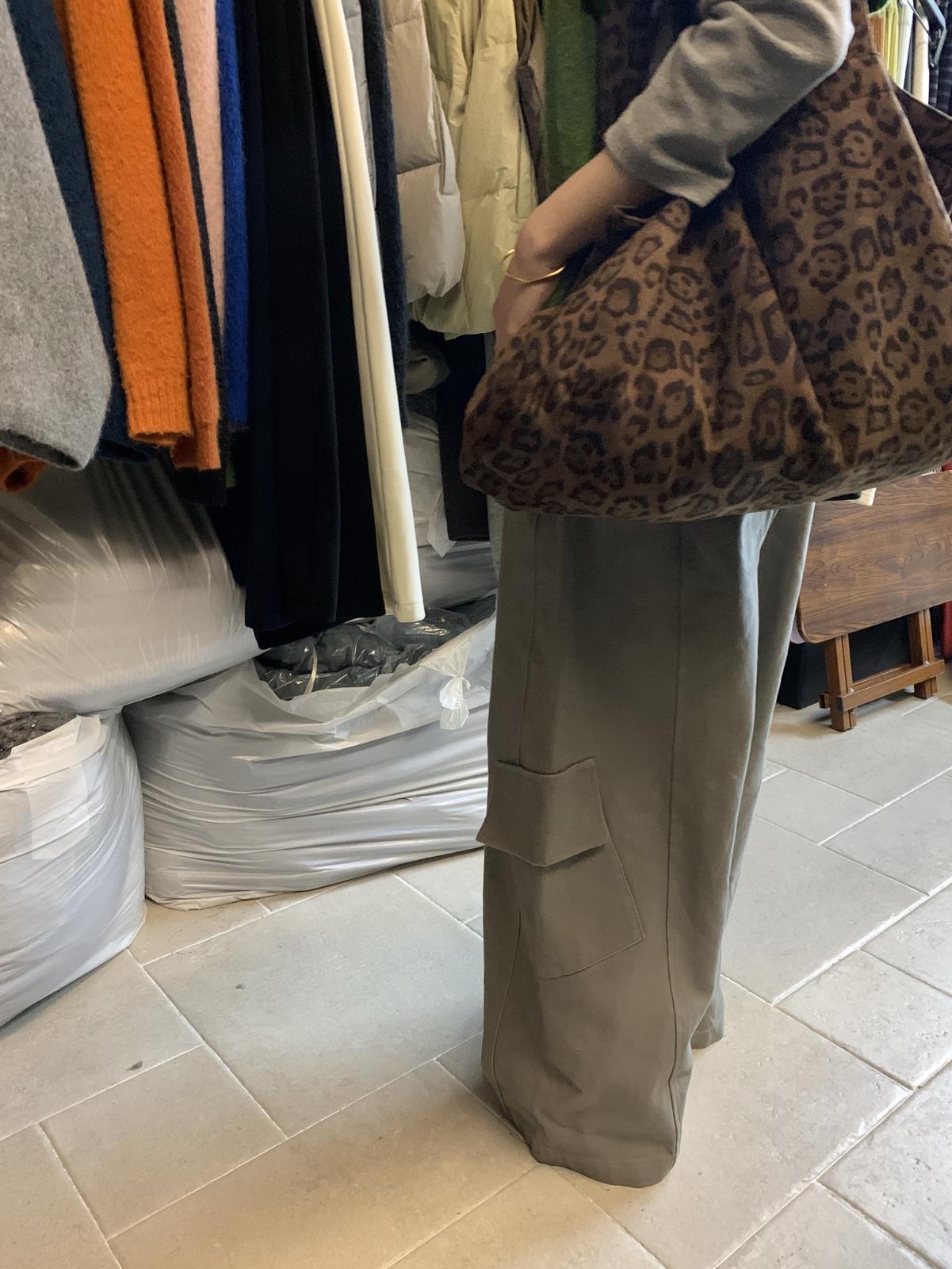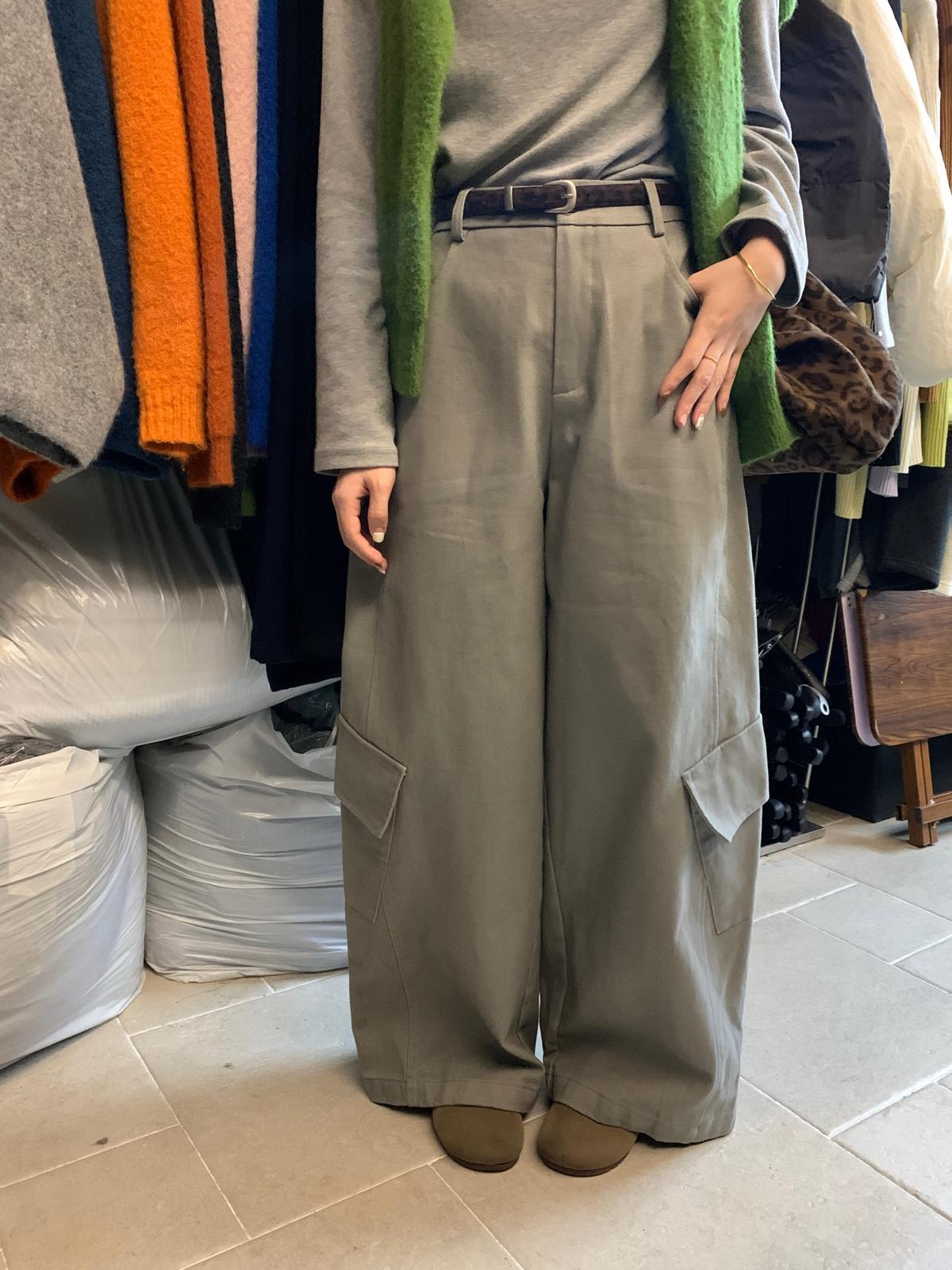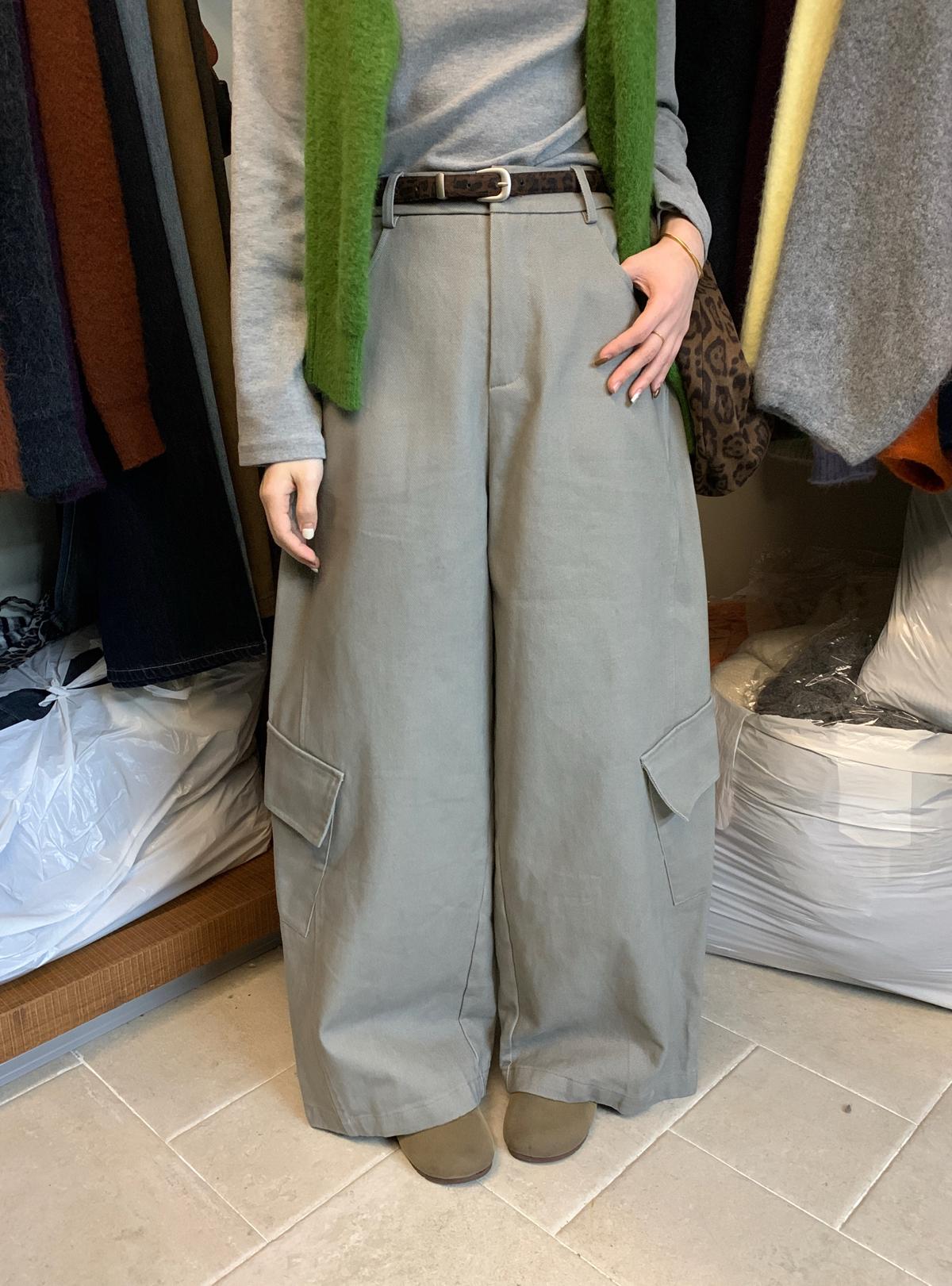 【C8025】復古闊腿大口袋時尚工裝褲(配腰帶)
