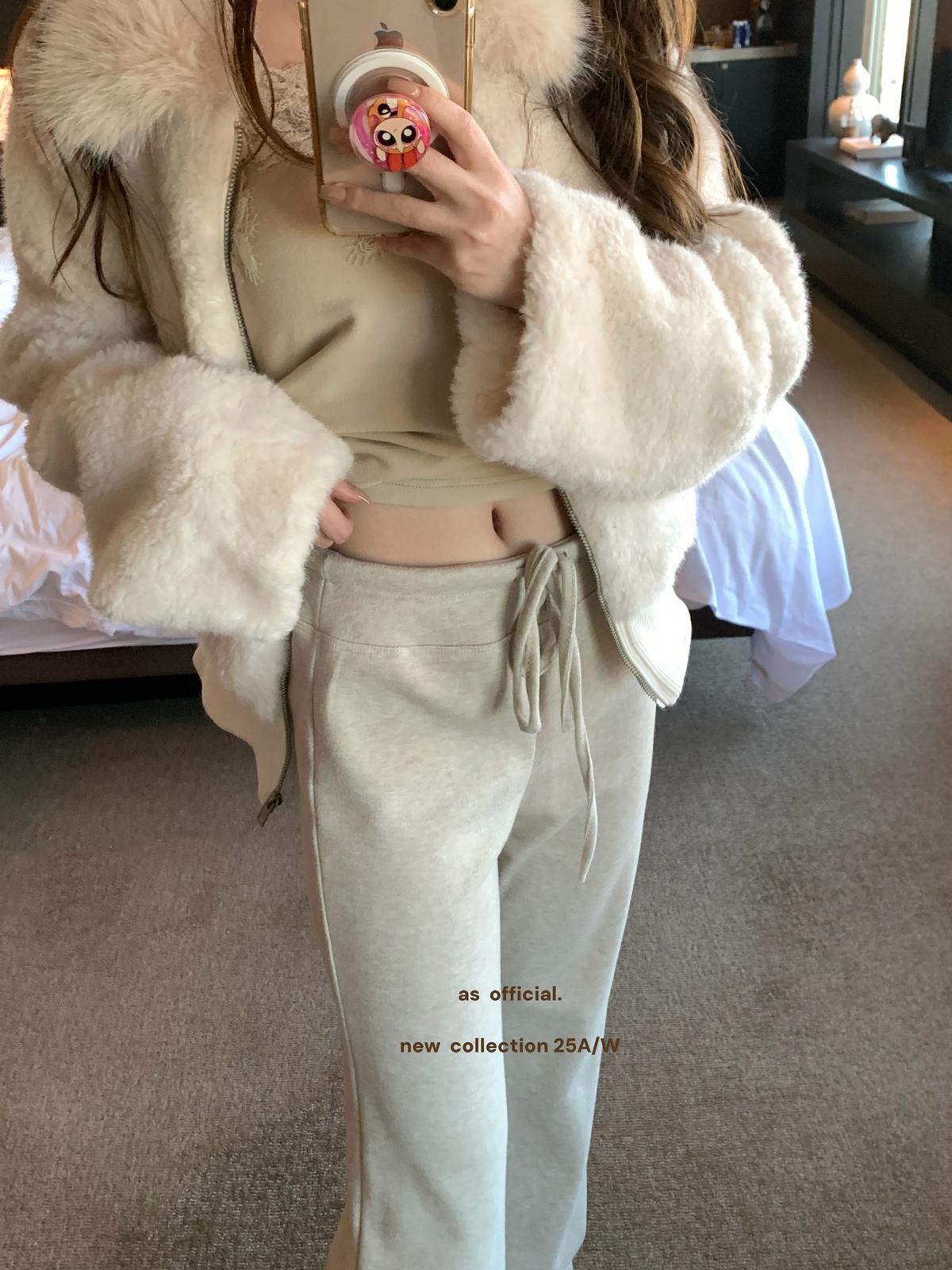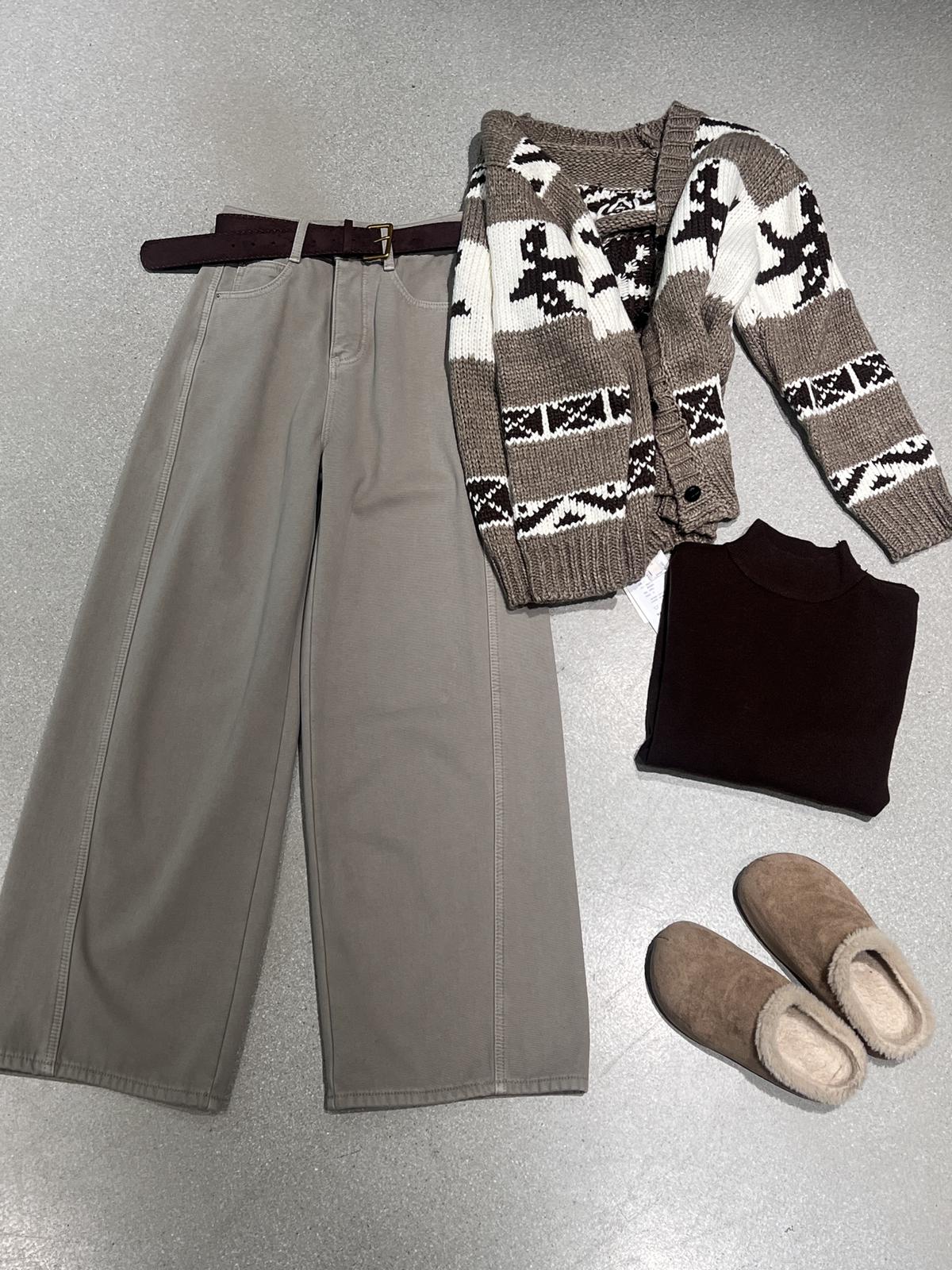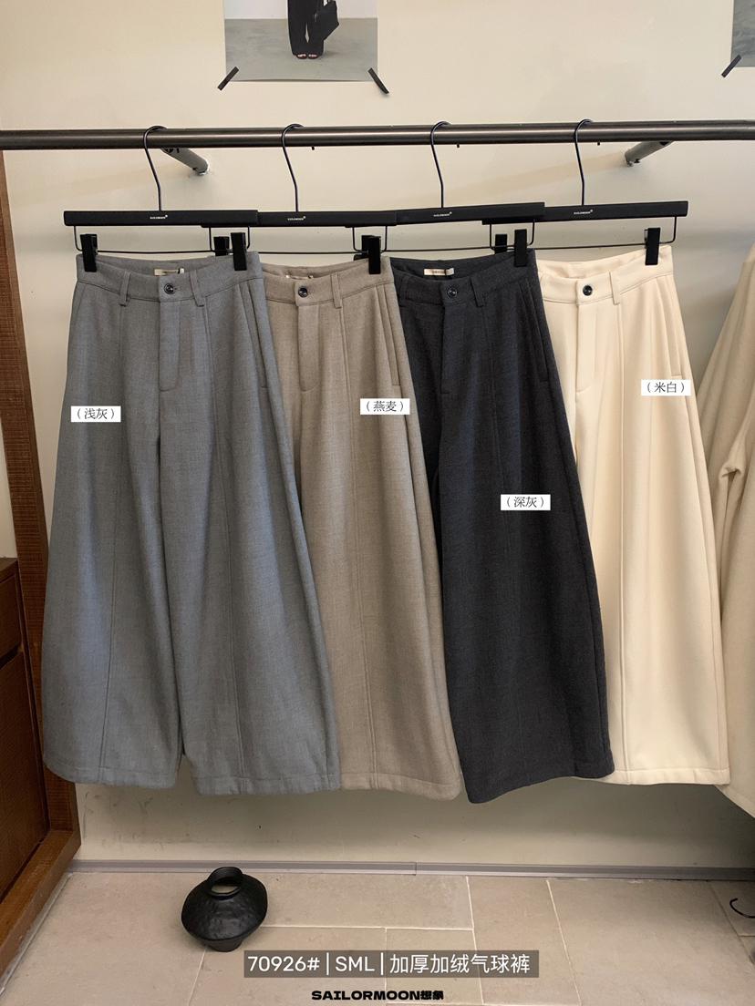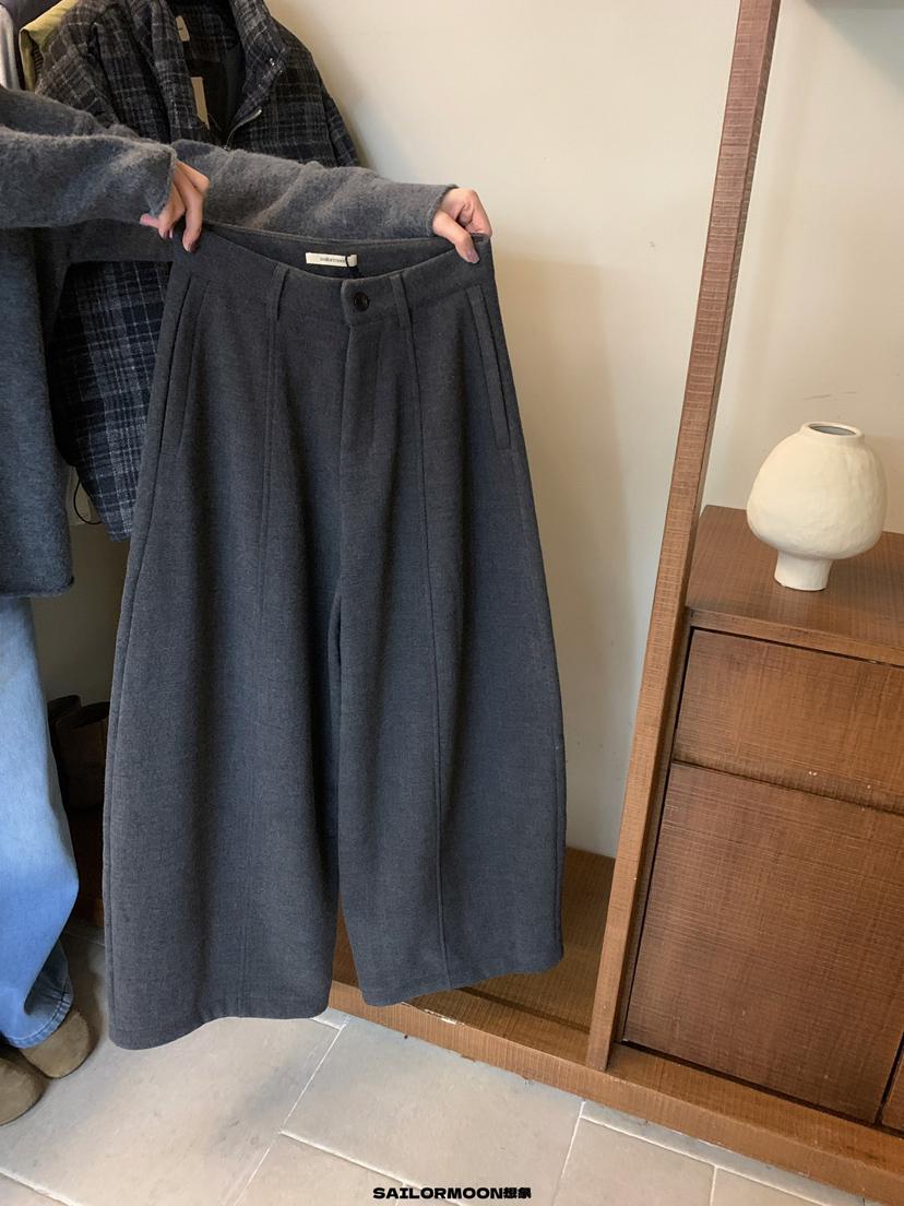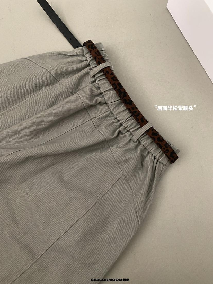 【C8092】密絨闊腿褲休閒褲(配腰帶)