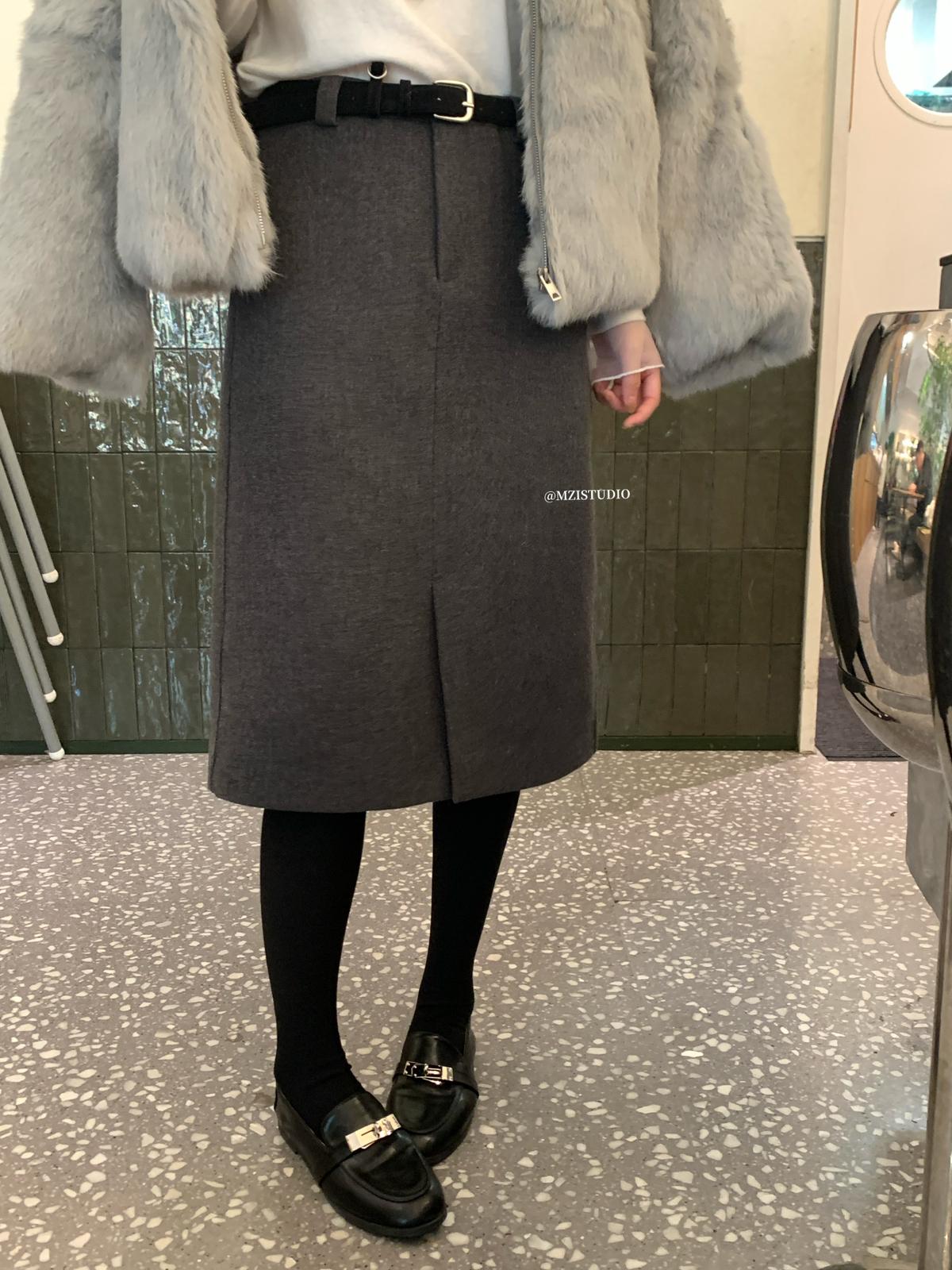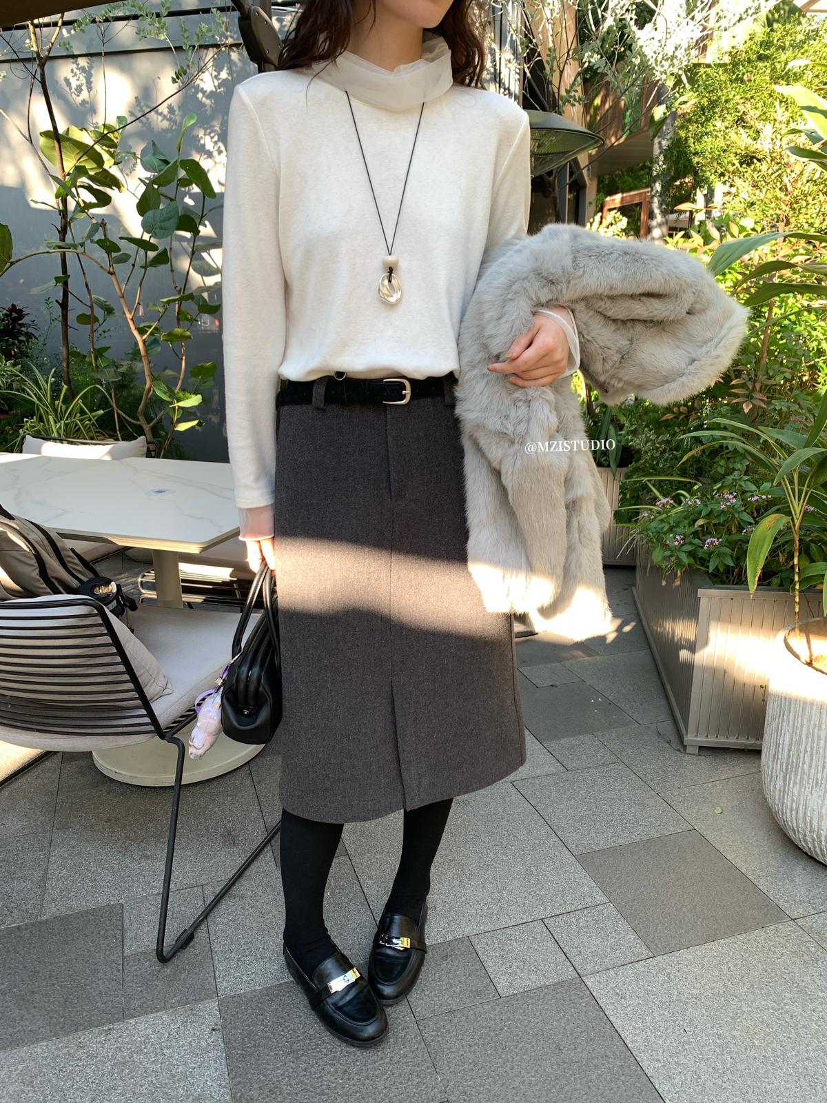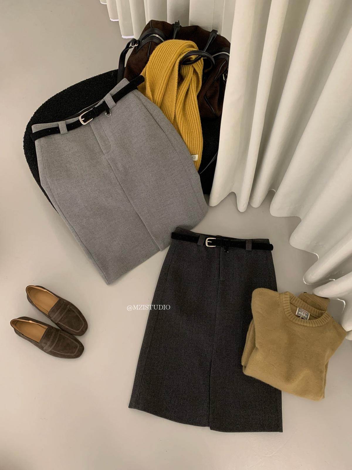 【C8027】知性優雅氣質歐尼冬季羊毛直筒顯瘦修腰線條口袋半身裙(配腰帶)(含5%羊毛)