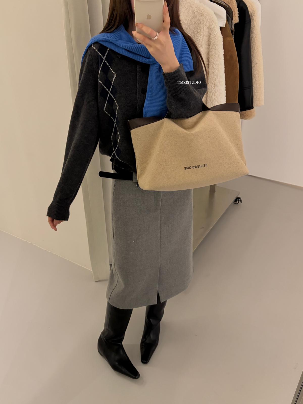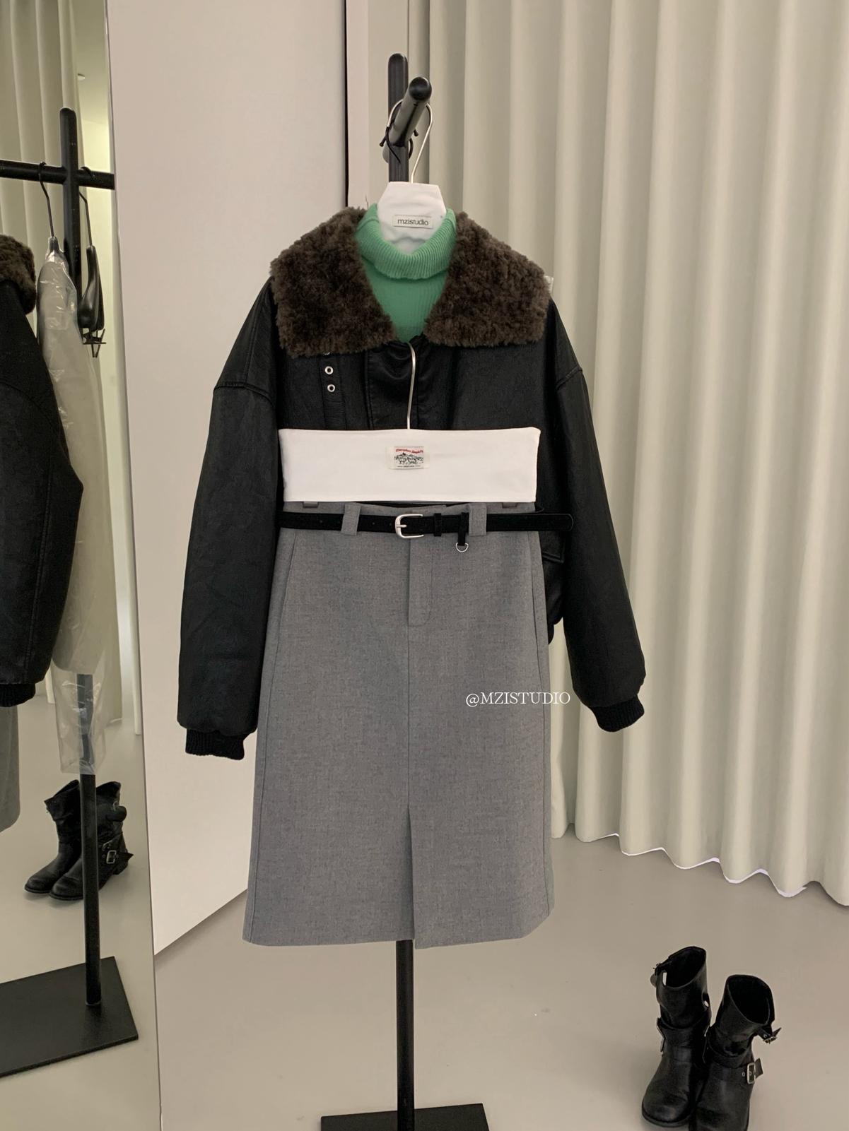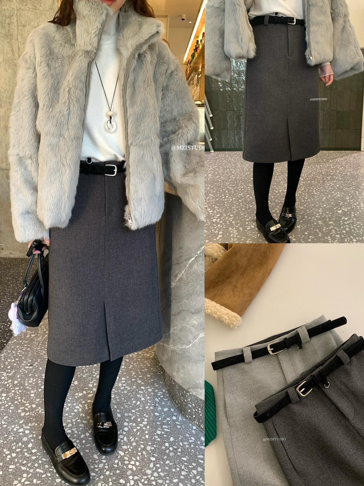 【C8027】知性優雅氣質歐尼冬季羊毛直筒顯瘦修腰線條口袋半身裙(配腰帶)(含5%羊毛)