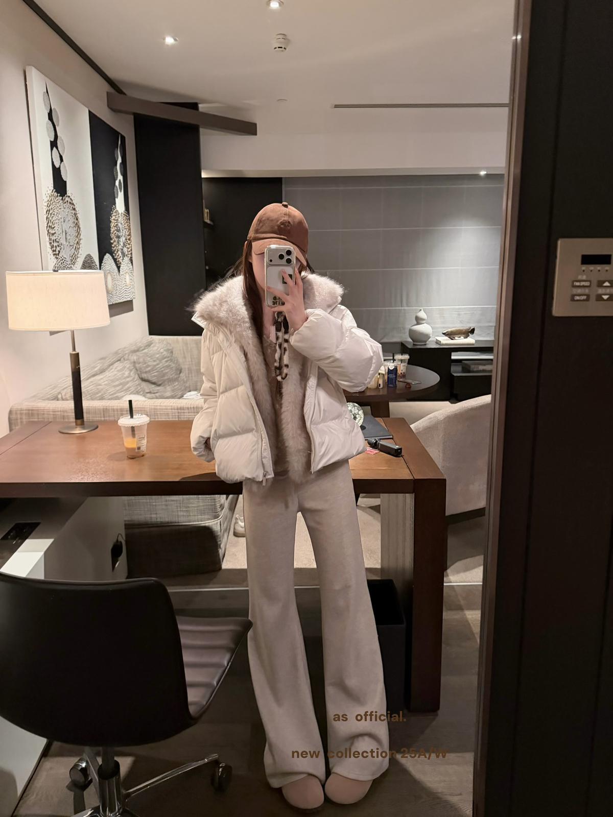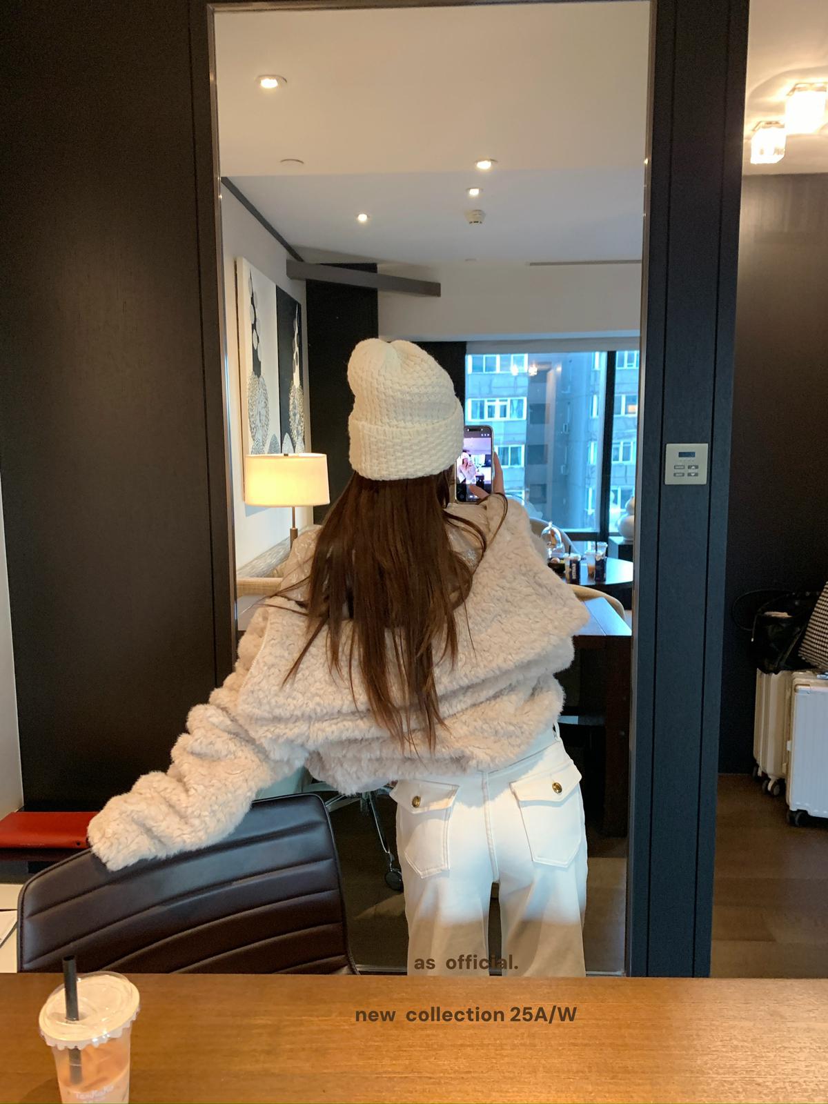 【C8089】2025冬季新款韓版寬鬆顯瘦百搭加厚保暖仿皮毛一體外套女短款短外套(配包包)