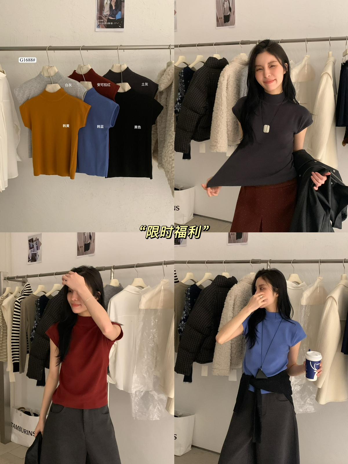 【C8032】小飛袖質感針織短袖保暖毛衣(含6%羊毛)