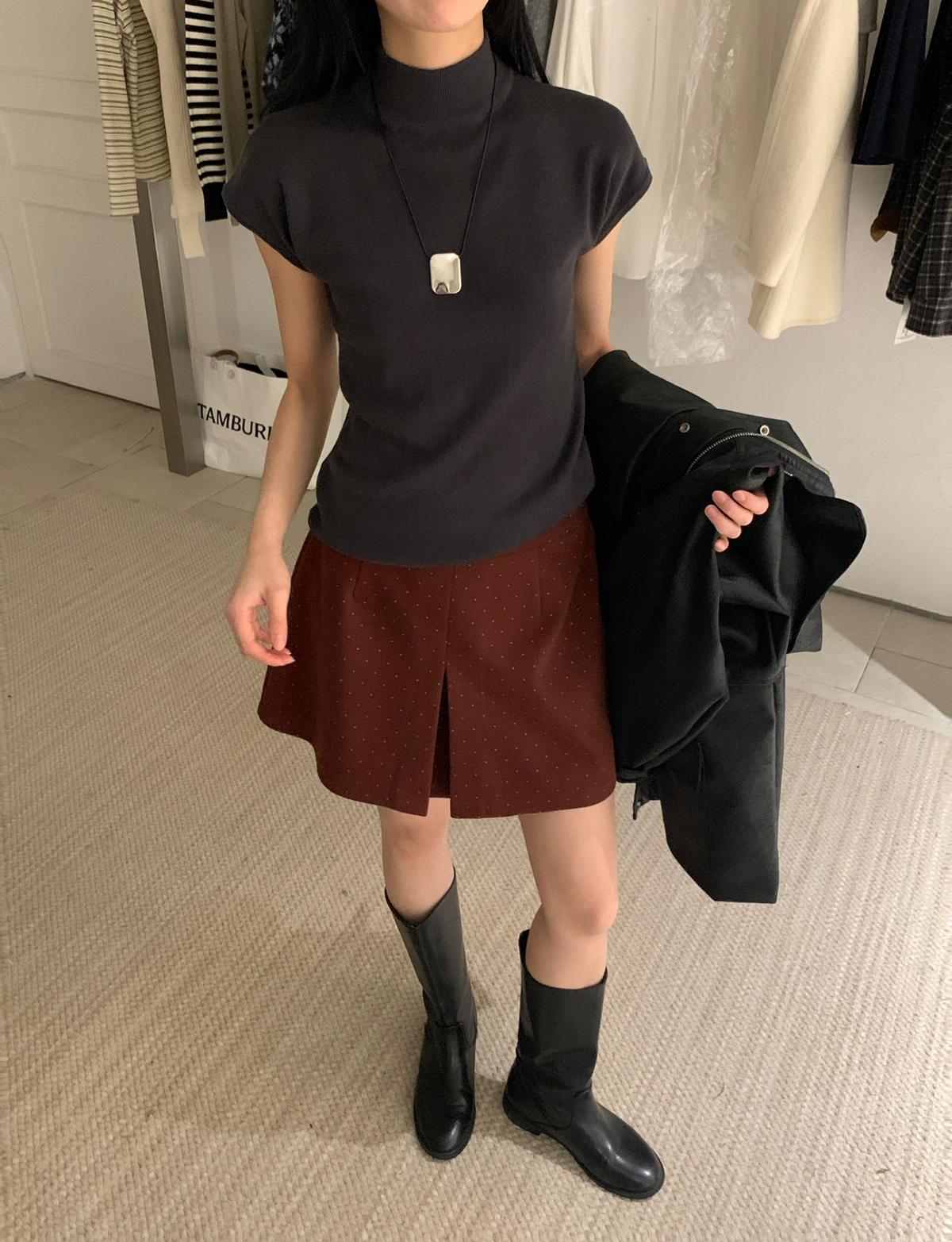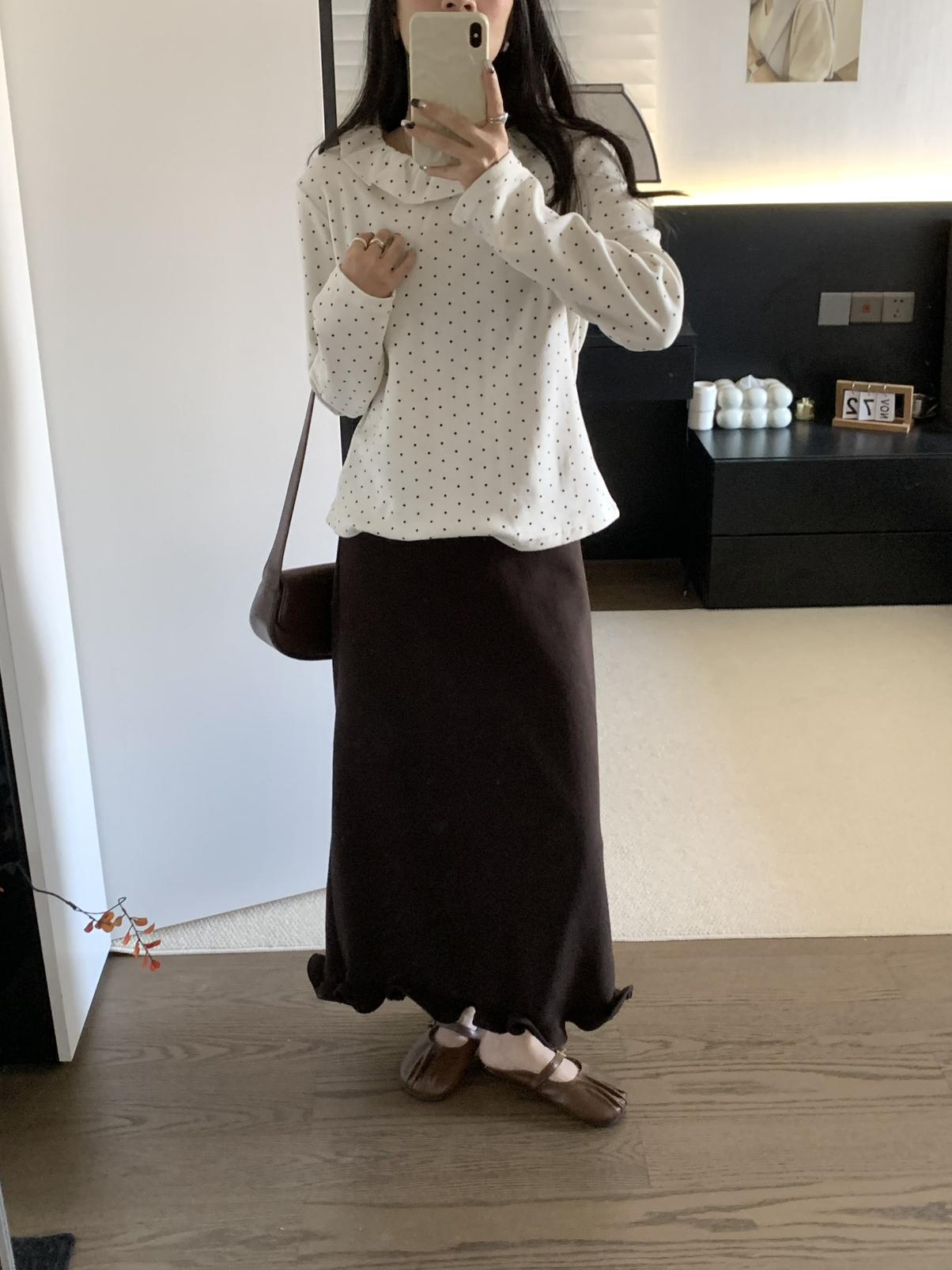 【C8059】韓式氣質波點木耳邊俏皮背心+半身裙套裝(配斜掛包)
