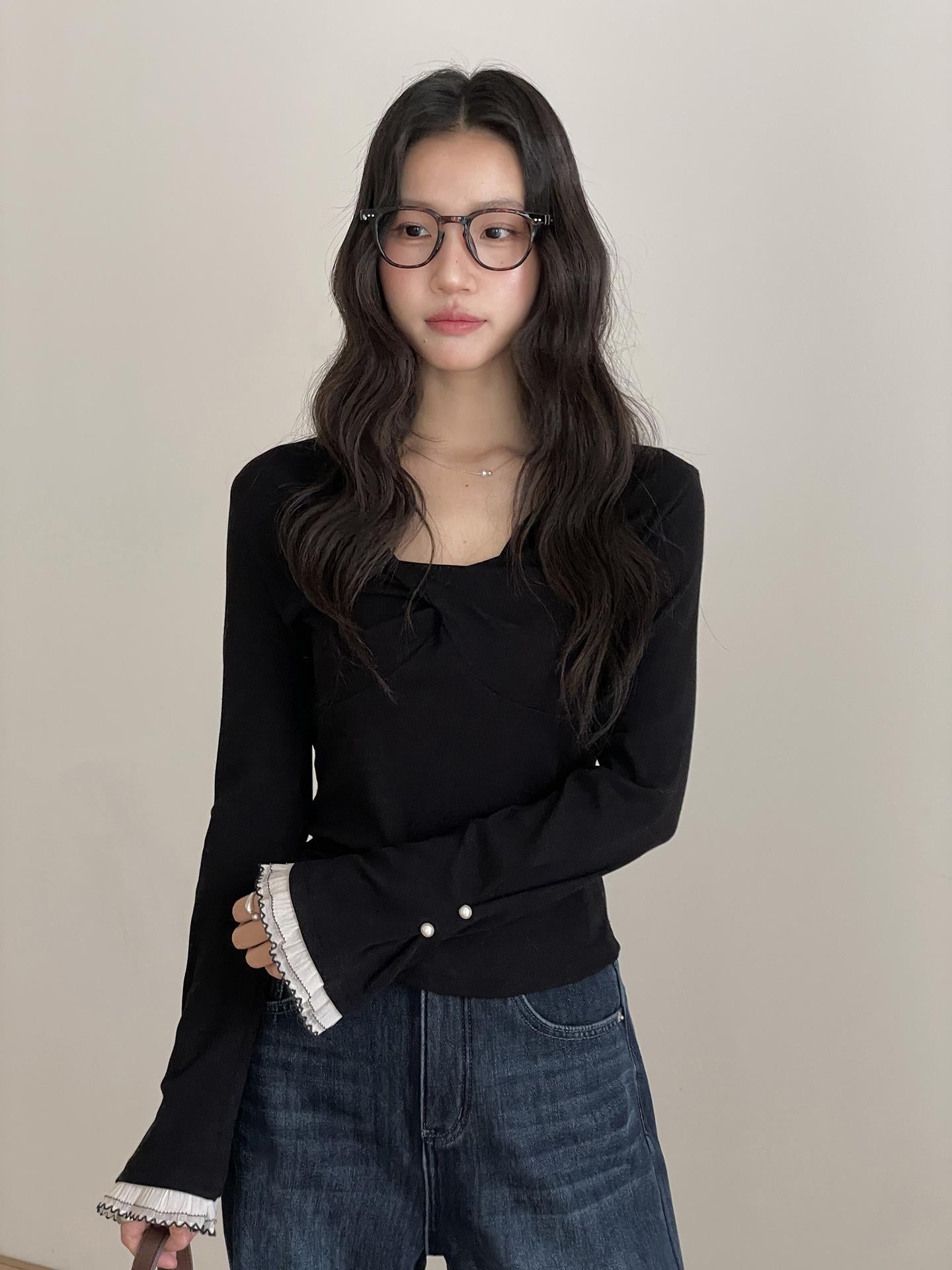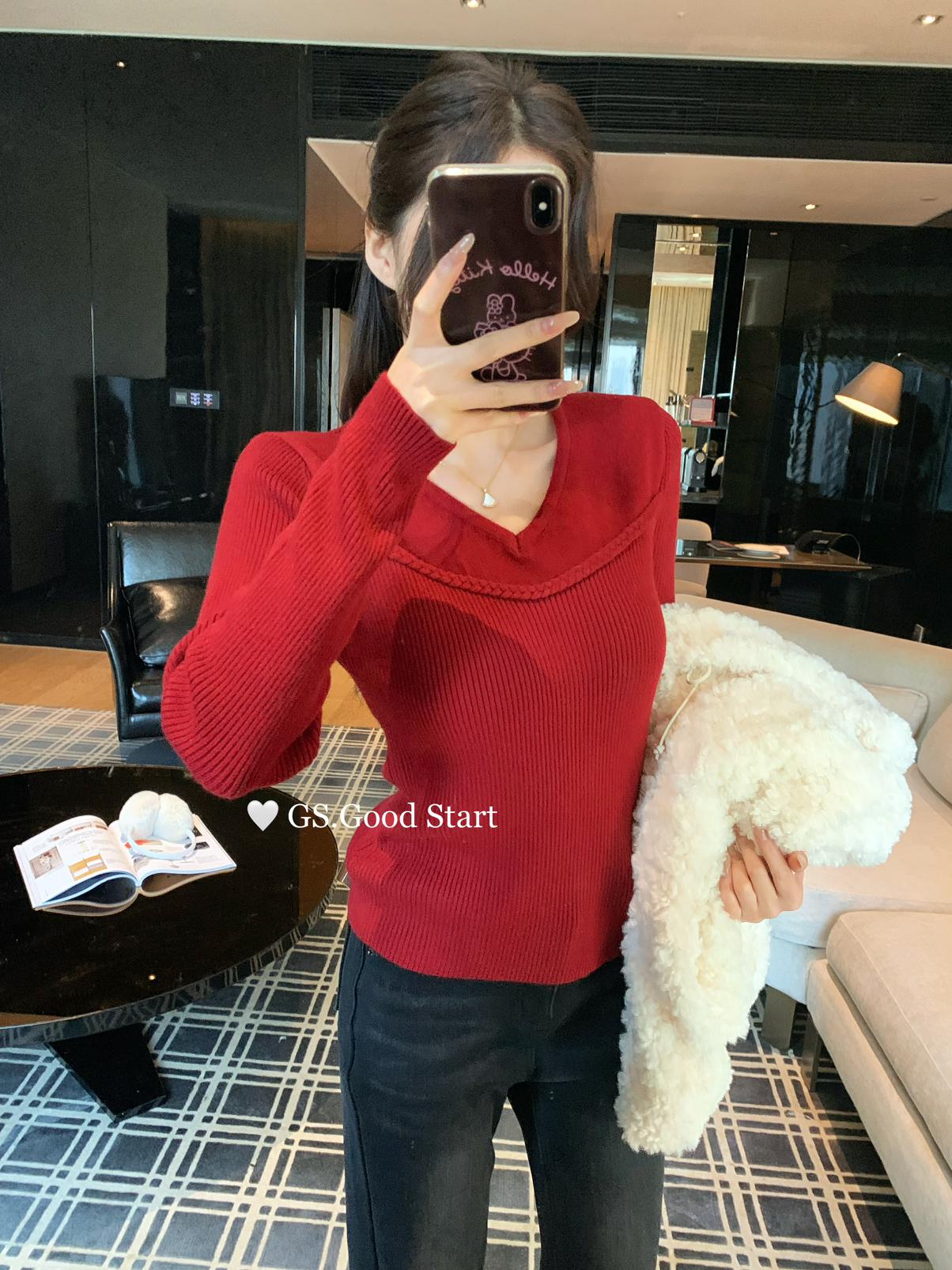 【C8056】冬上新!復古U領內搭上衣修身長袖T恤