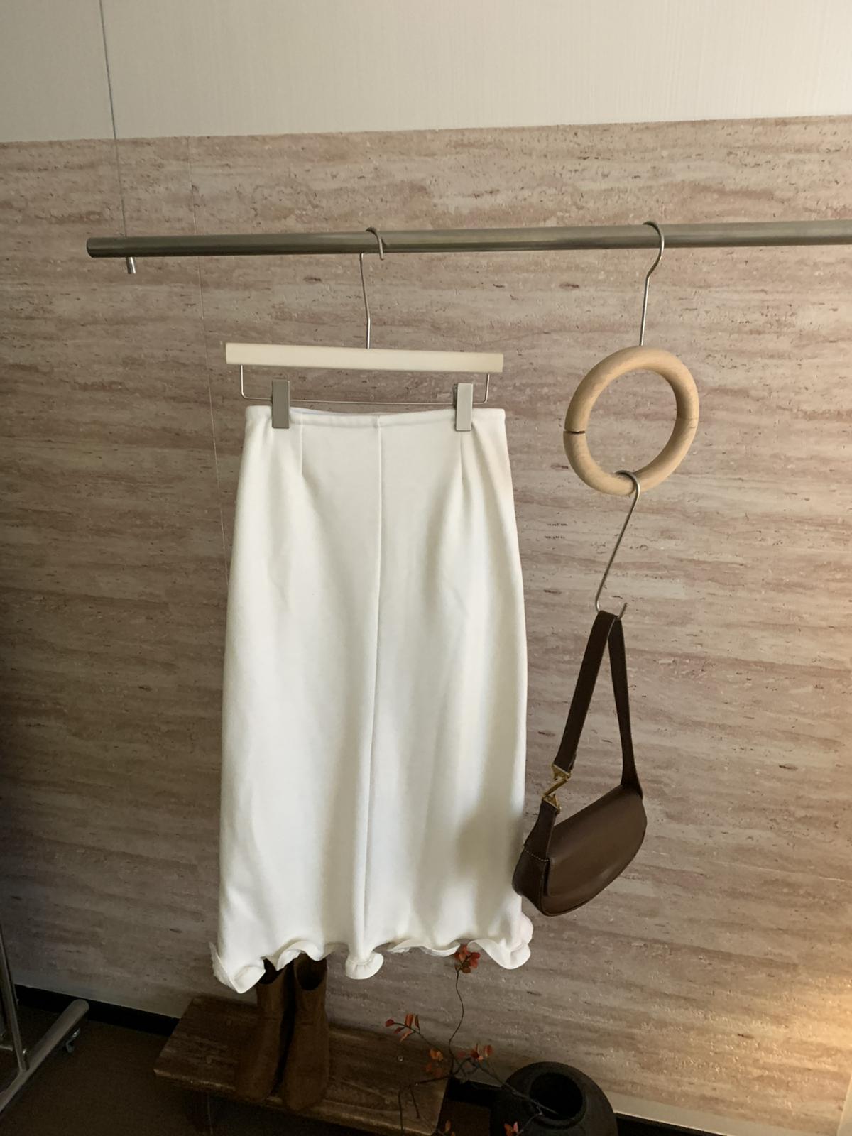 【C8058】加絨加厚荷葉邊直筒中長半身裙