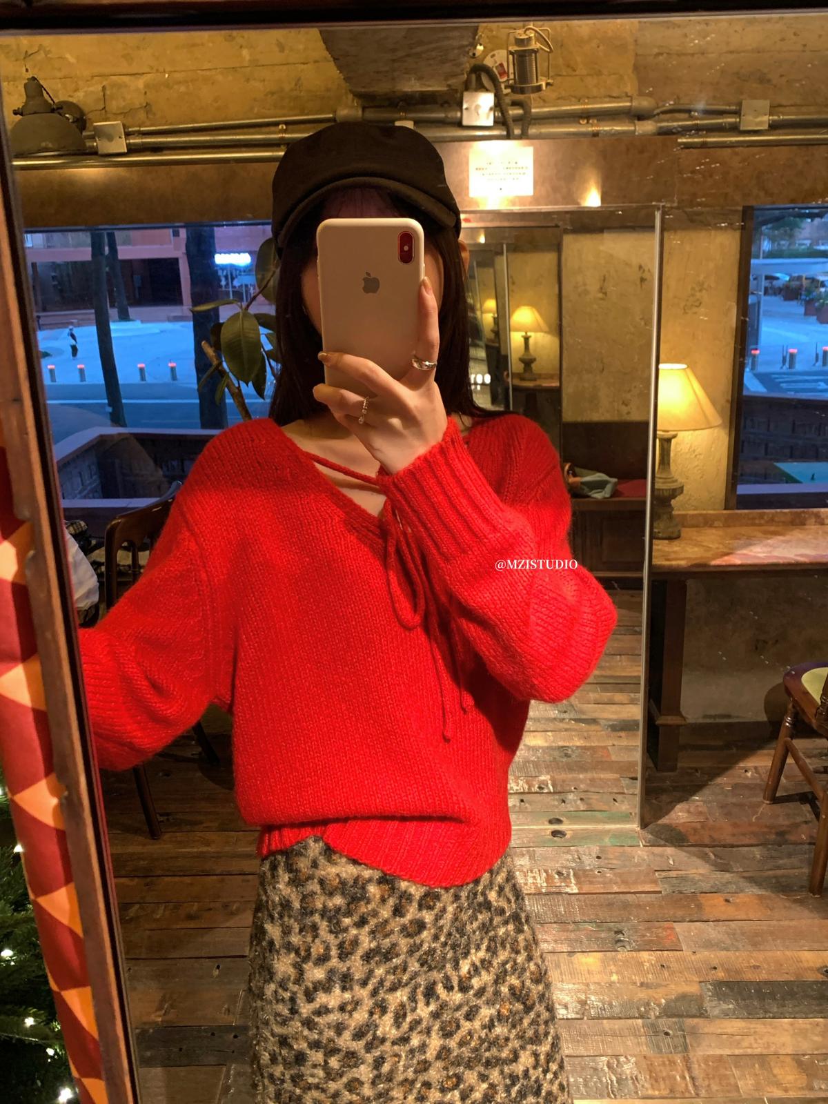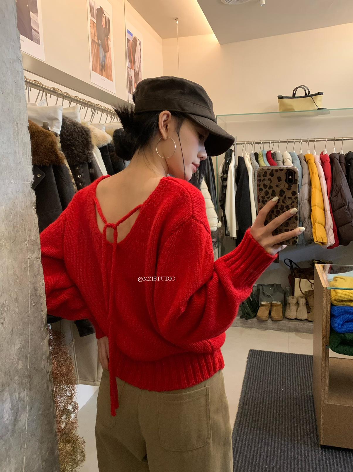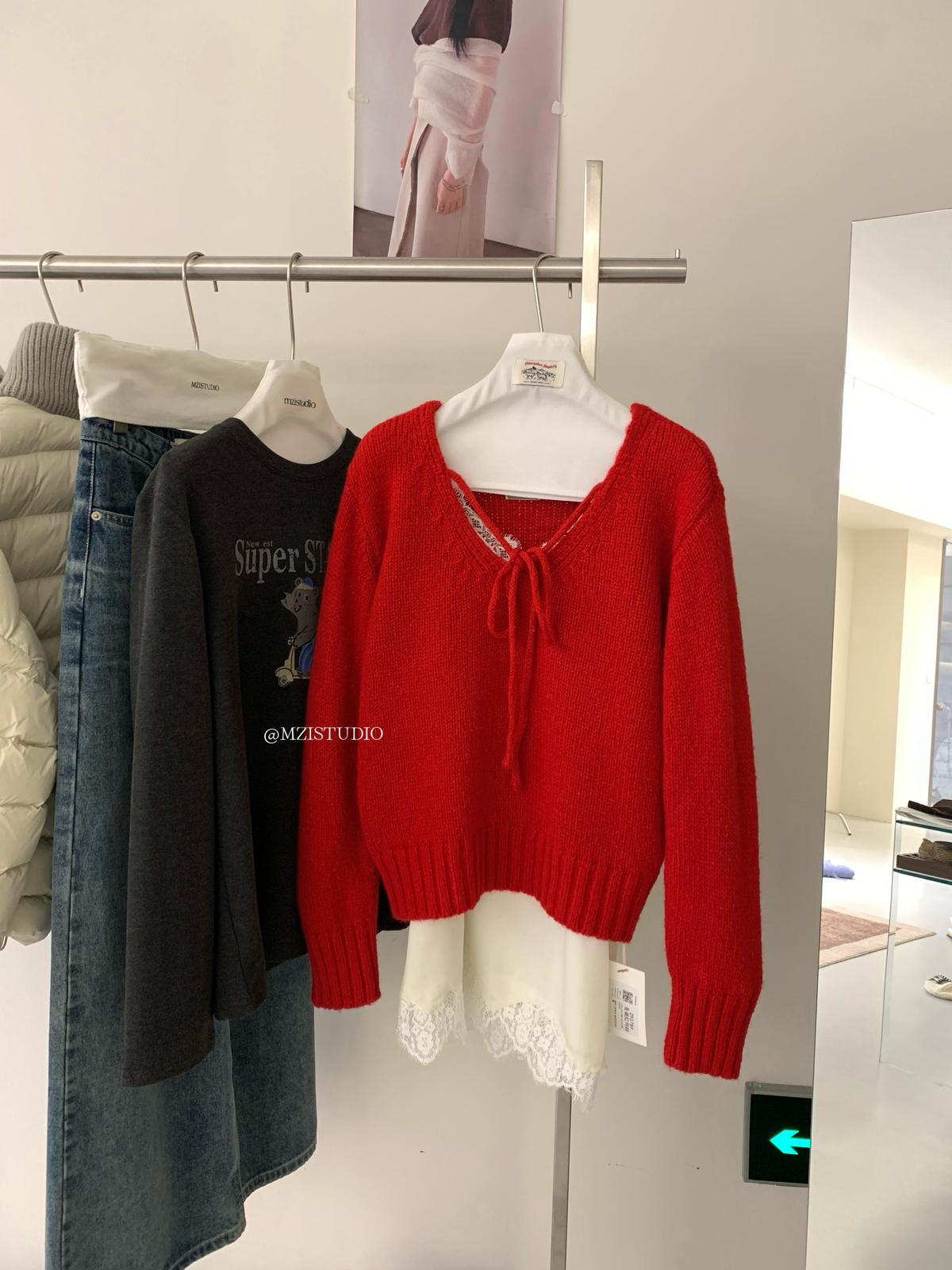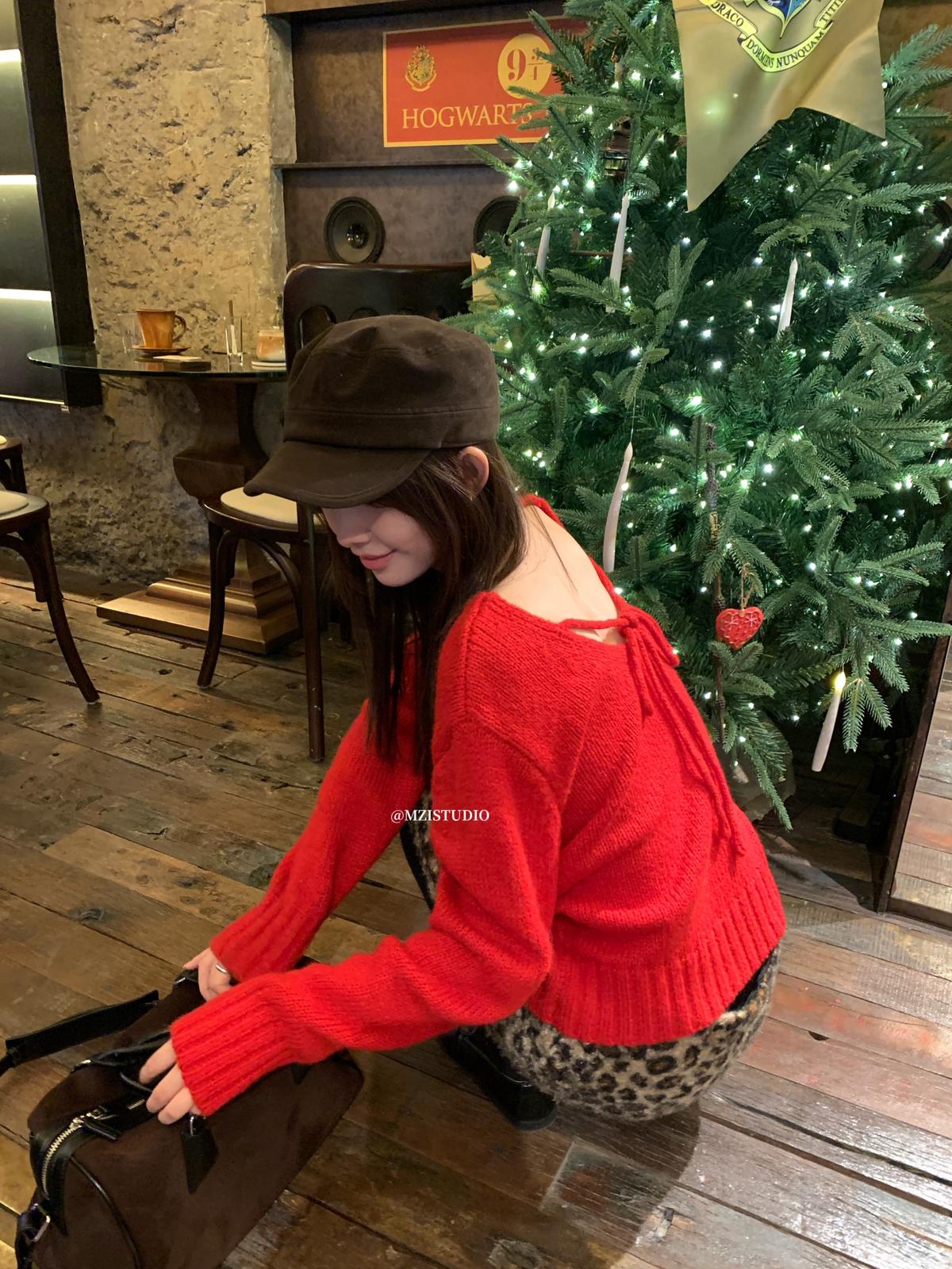【C8065】初雪如約而至兩面穿韓感冬日溫柔繫帶蝴蝶結軟糯舒適甜美套頭保暖毛衣(含12%羊毛)