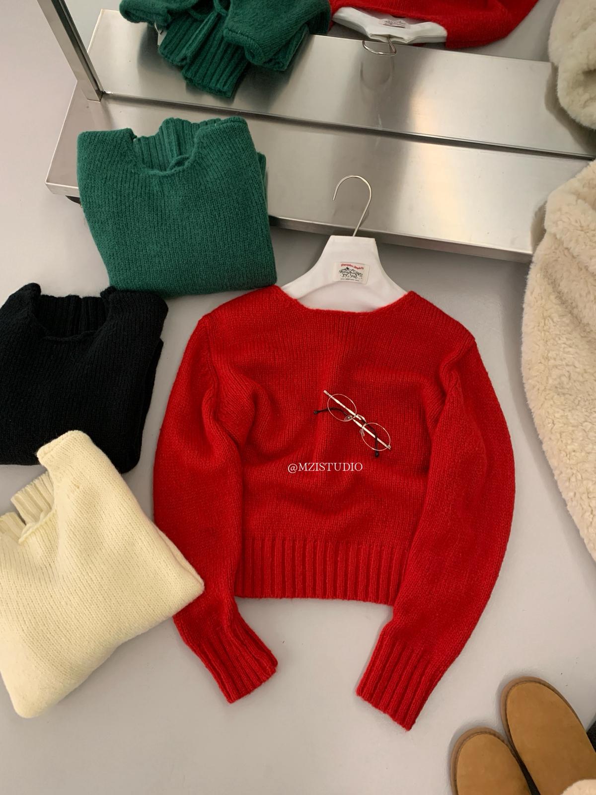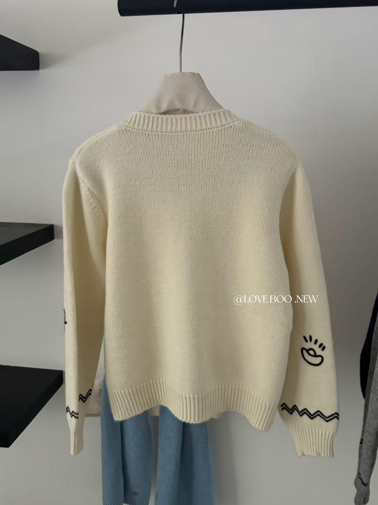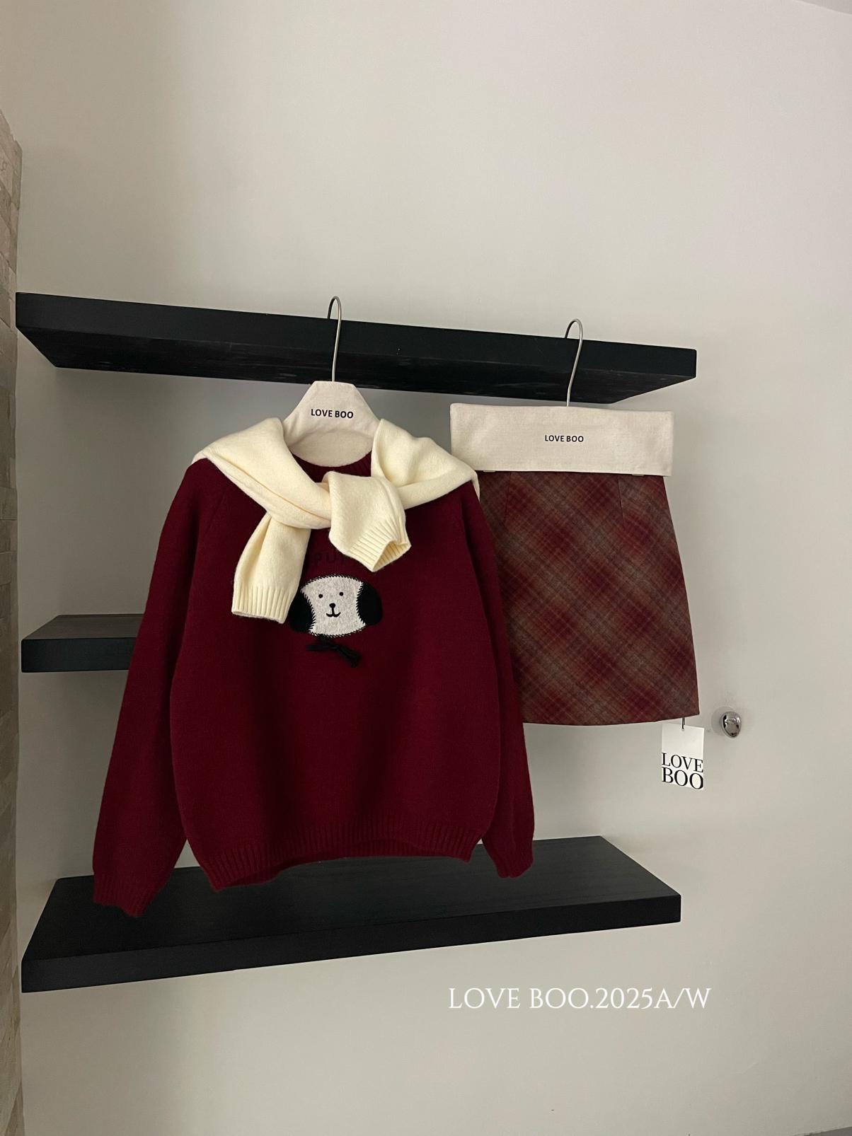 【C8082】韓系簡約百搭設計感小狗蝴蝶結套頭毛衣