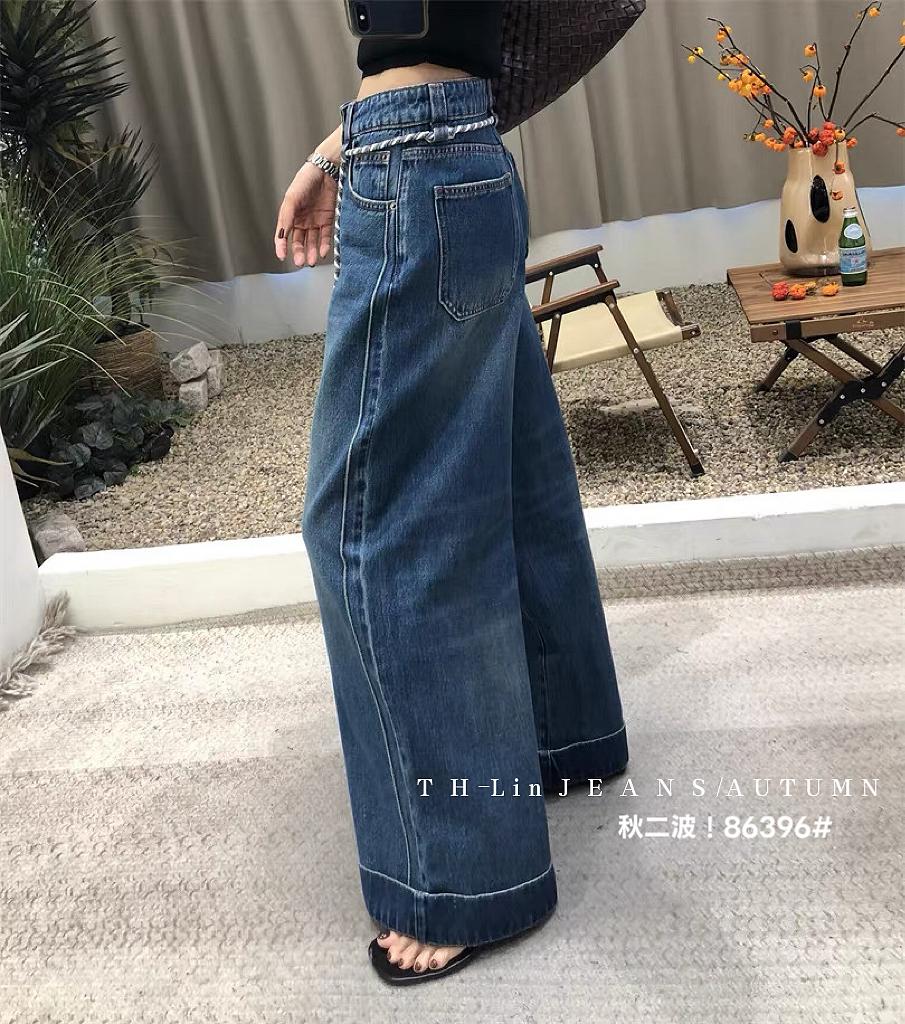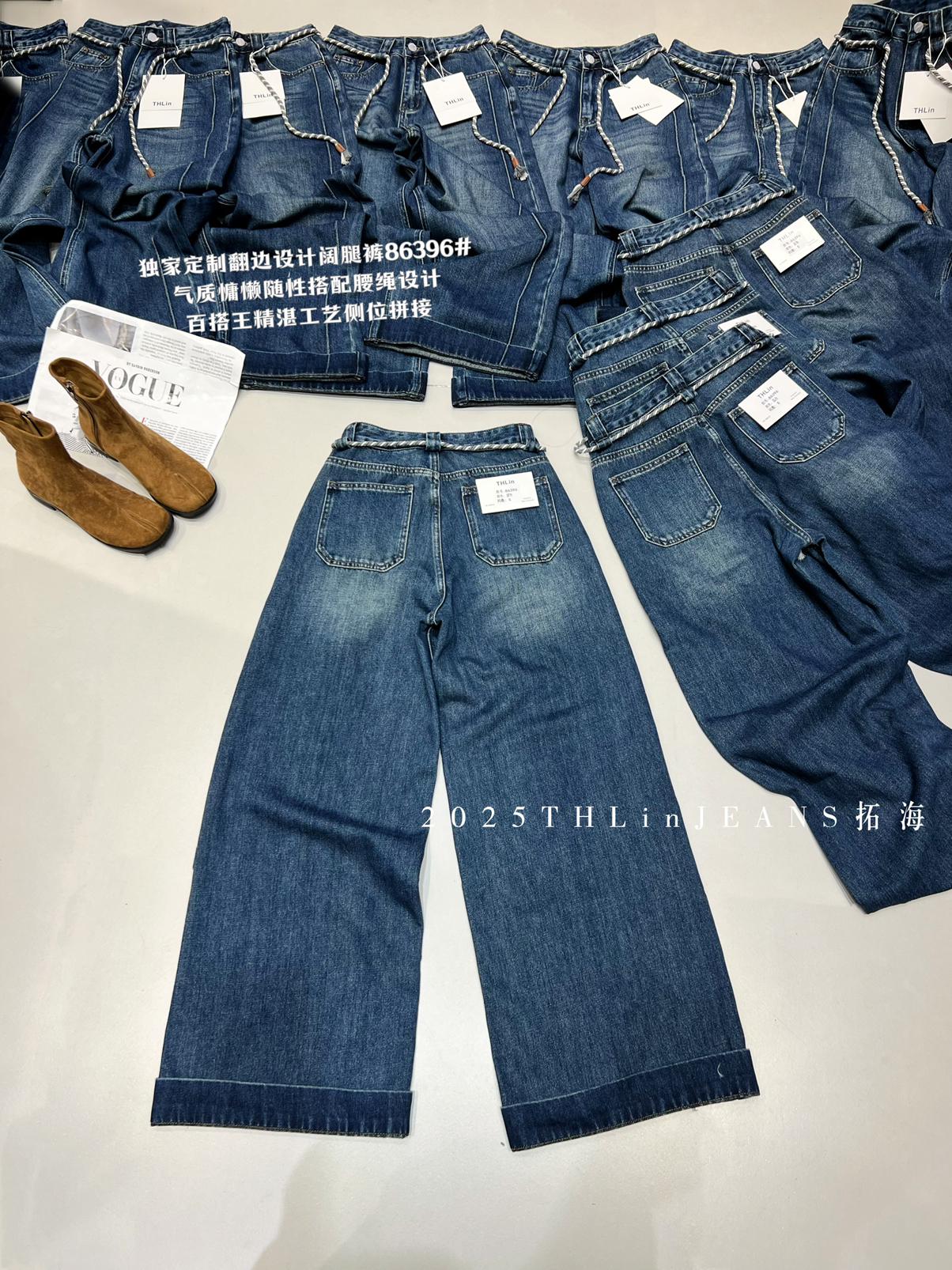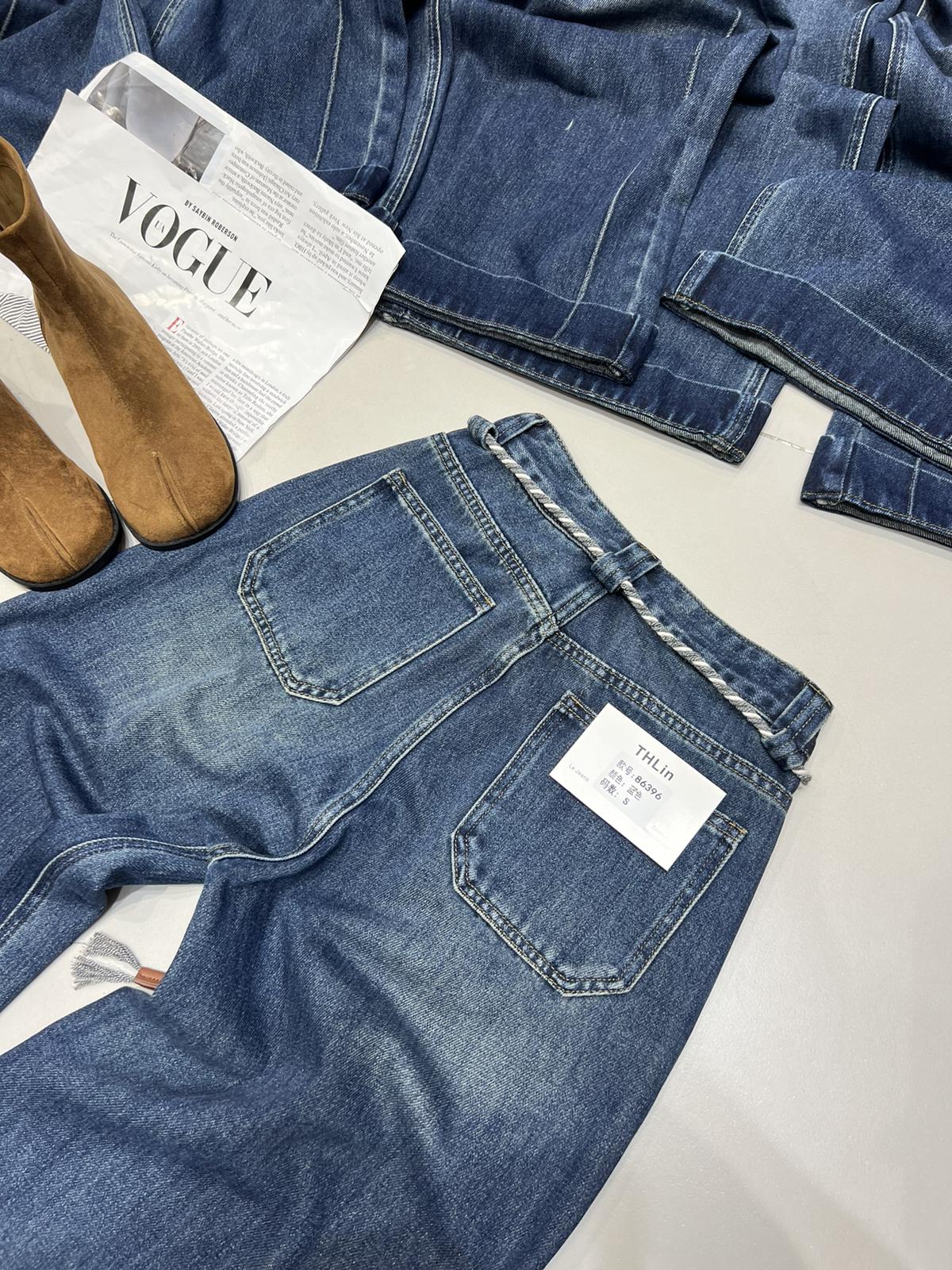 【C8067】百搭王氣質慵懶隨性搭配腰繩設計牛仔褲(配腰繩)