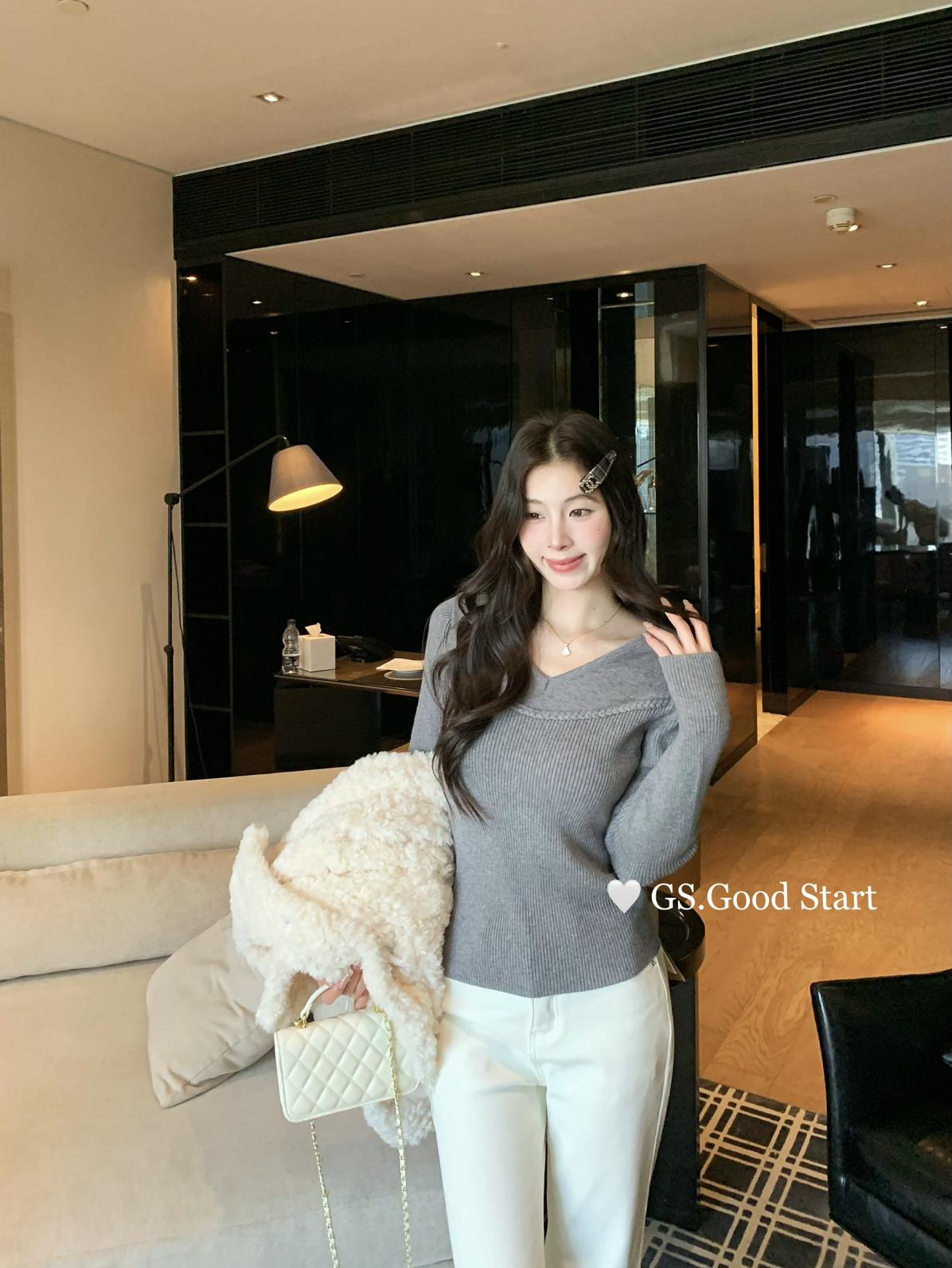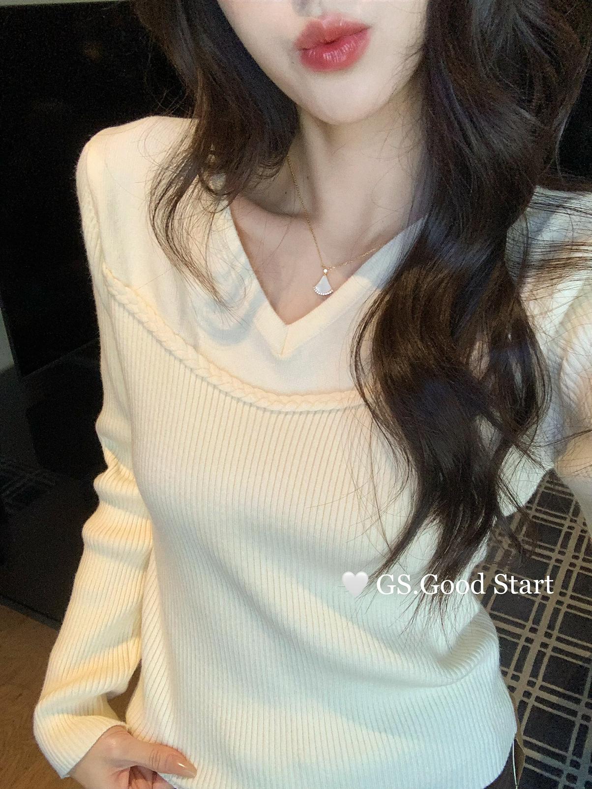 【C8069】必buy基礎款!不挑人巨百搭!秋冬氣質v領休閒彈力針織小衫