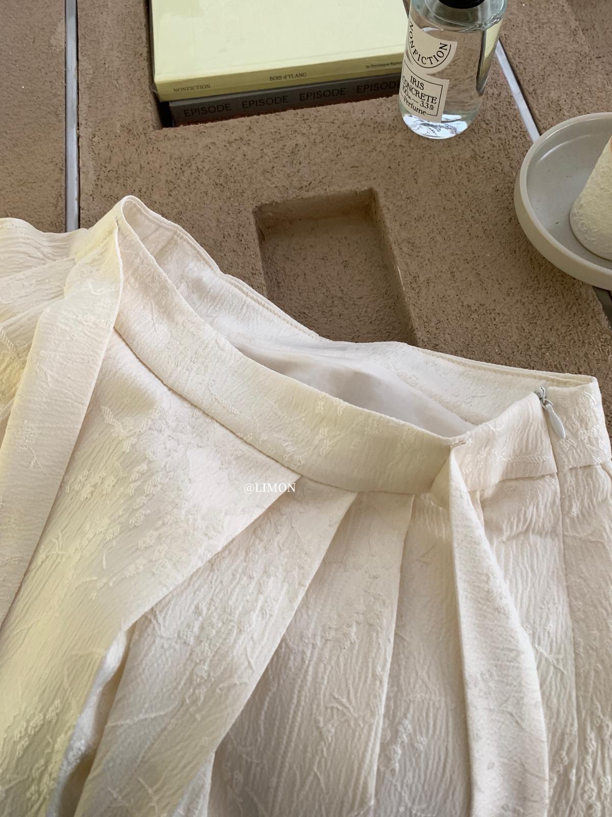 【C8070】氛圍感國風高腰百褶繫帶半身裙