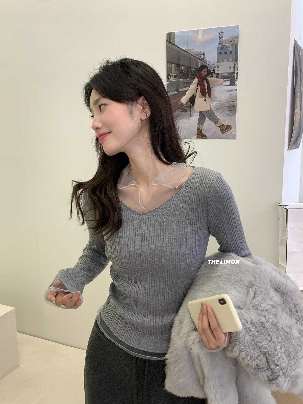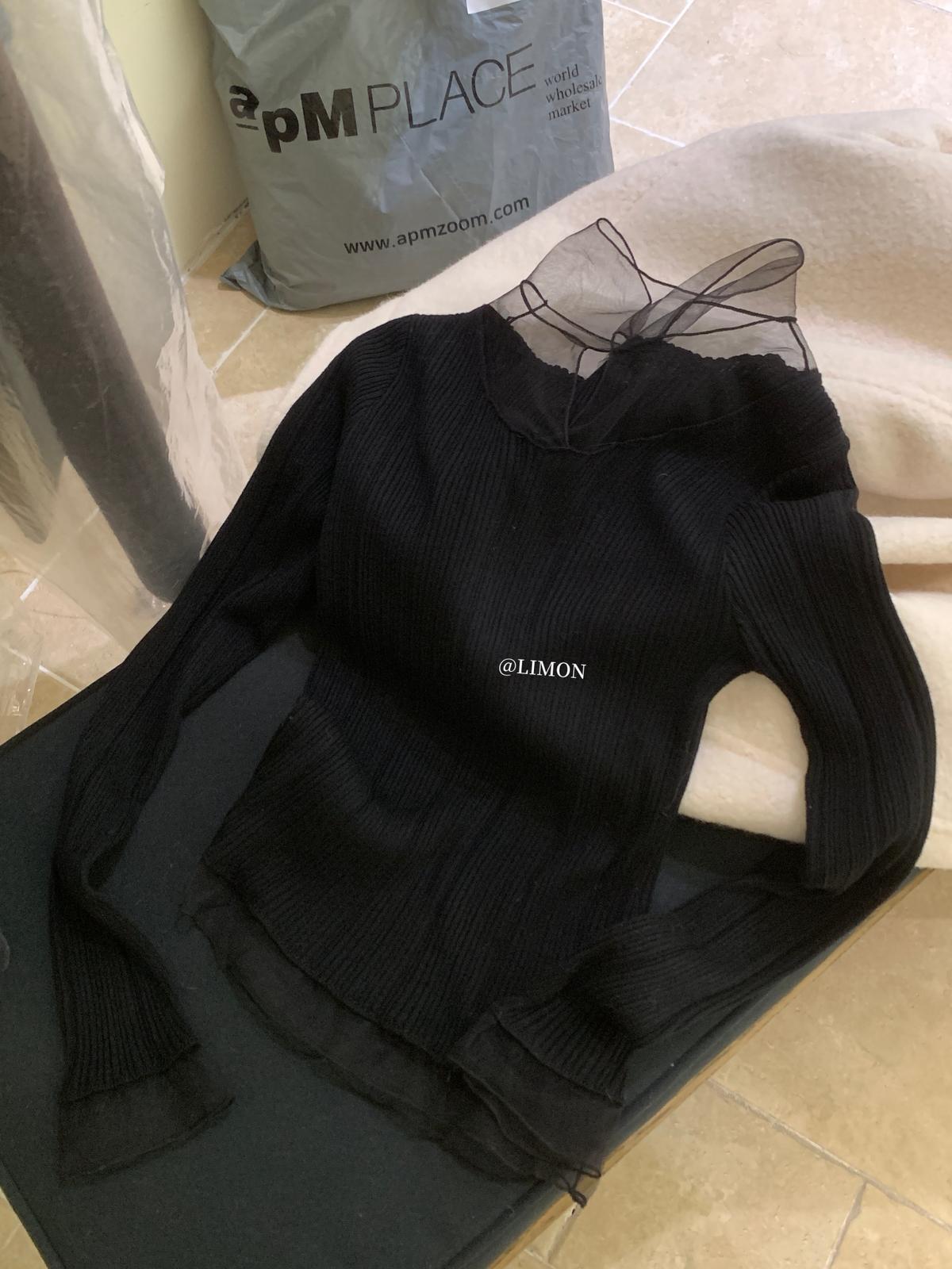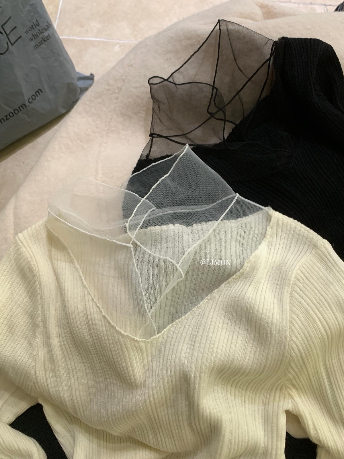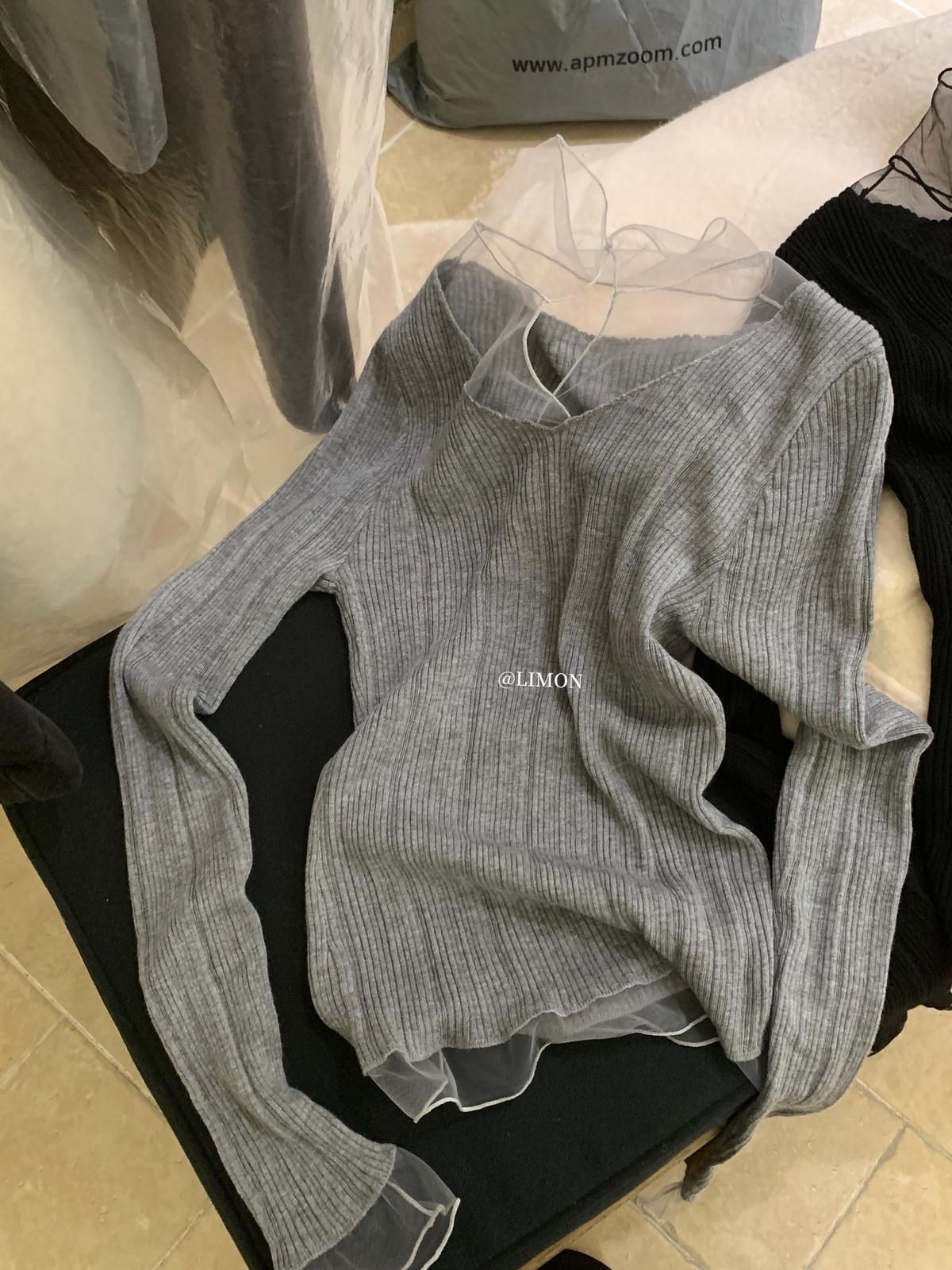【C8072】溫柔氣質歐根紗拼接顯瘦百搭針織衫(含9%羊毛)