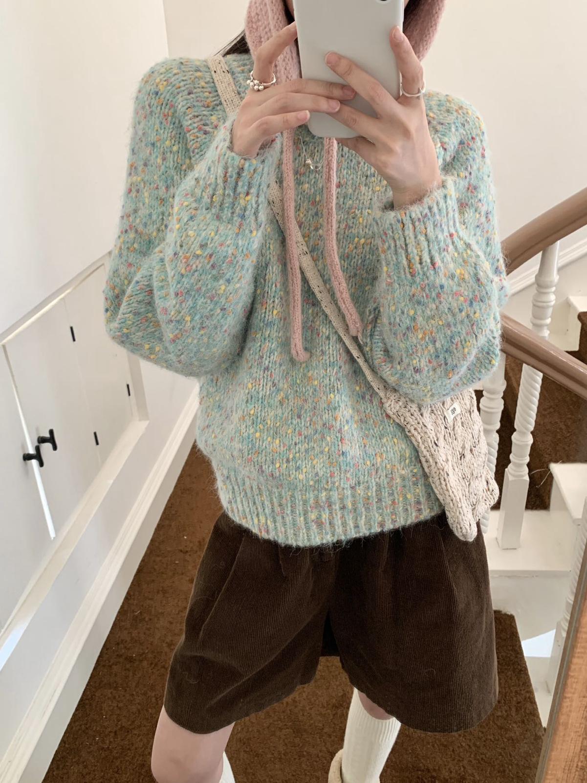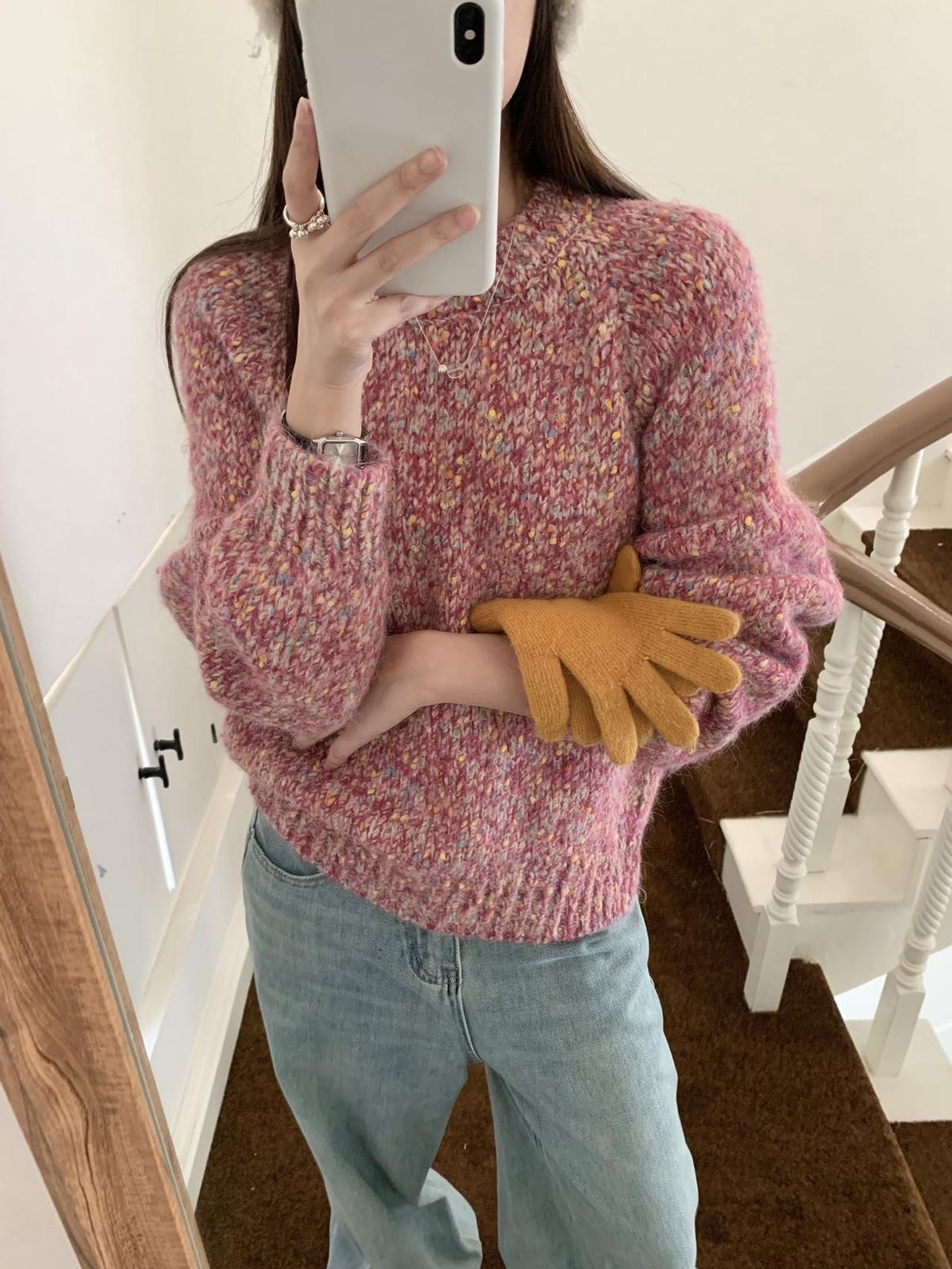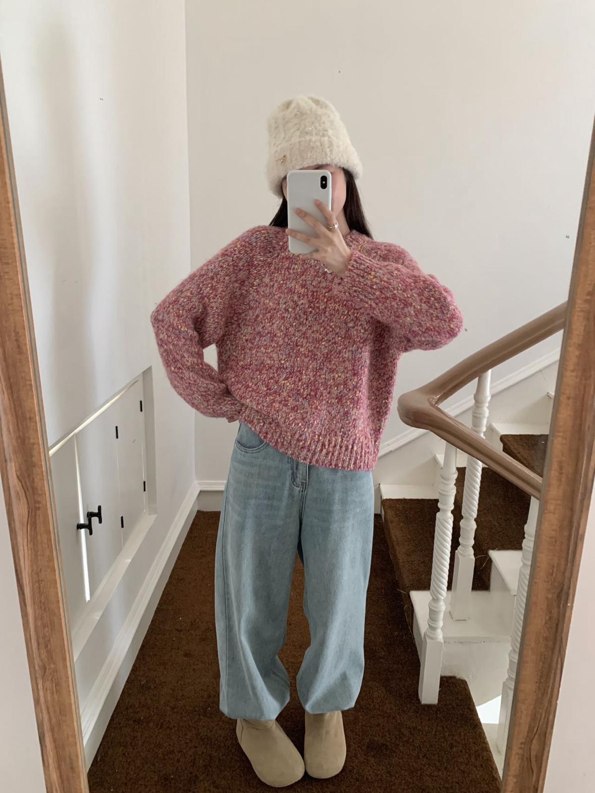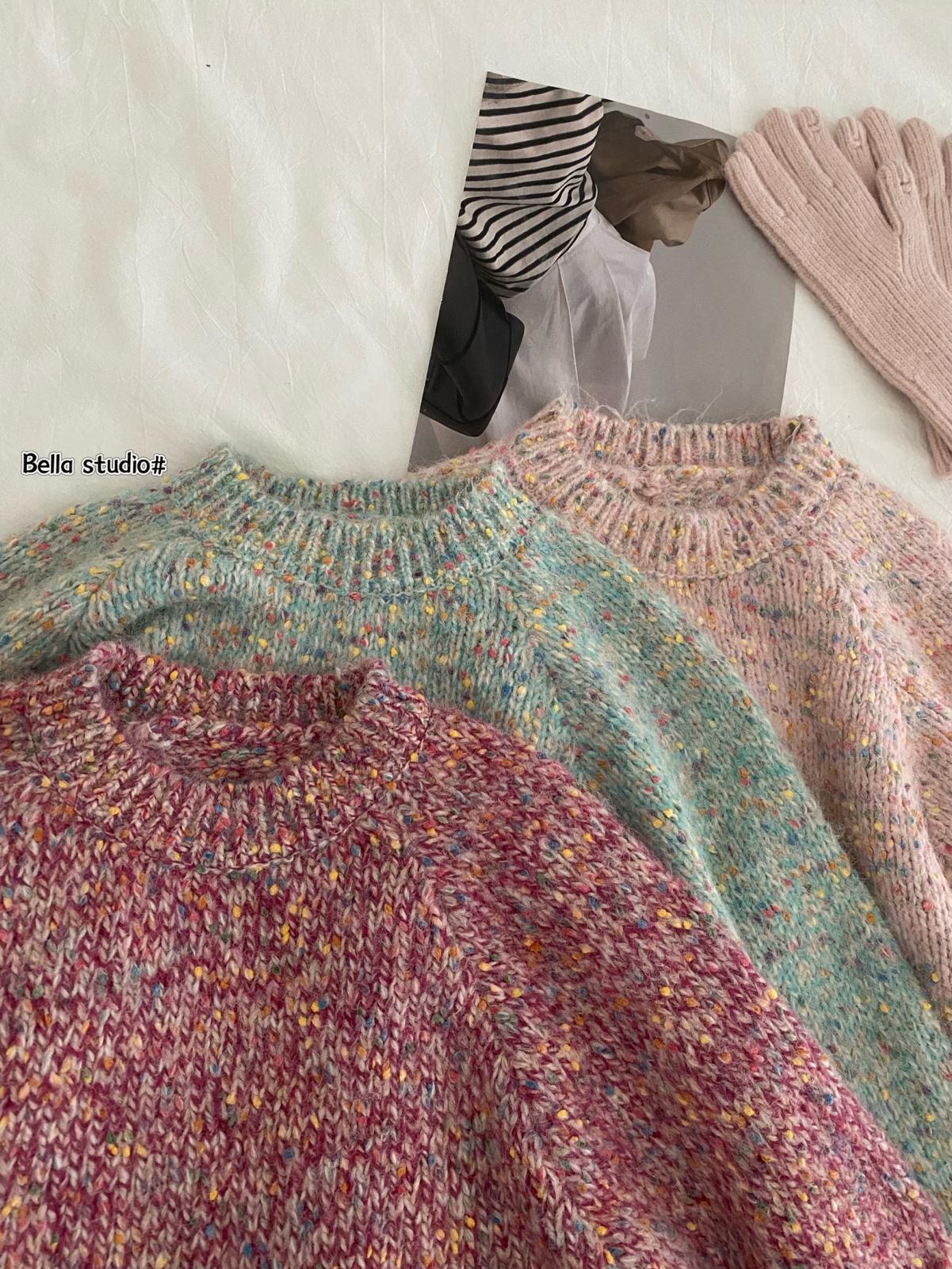 【C8073】韓系定製彩紗圓領手感柔軟色彩超吸睛復古簡約寬鬆百搭保暖毛衣
