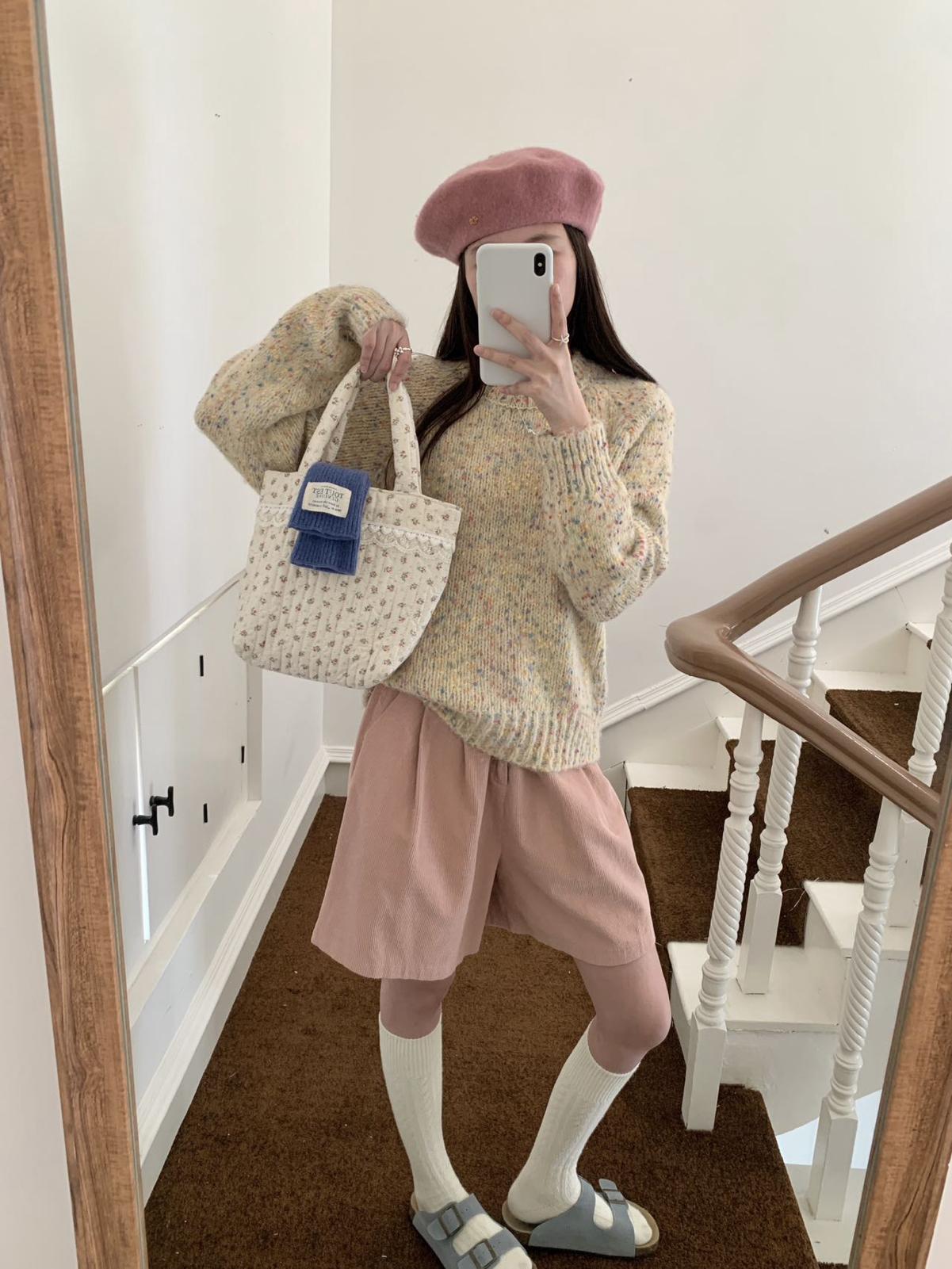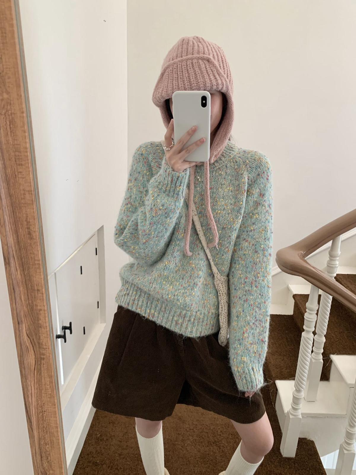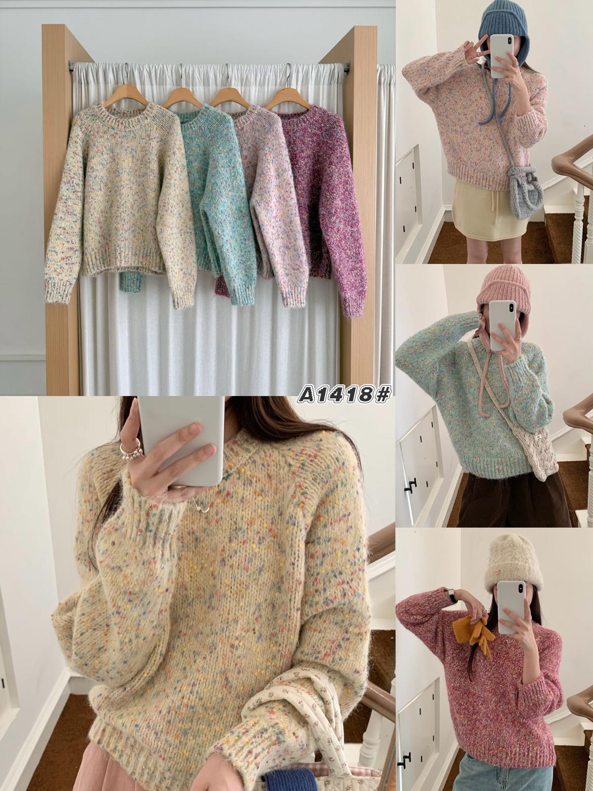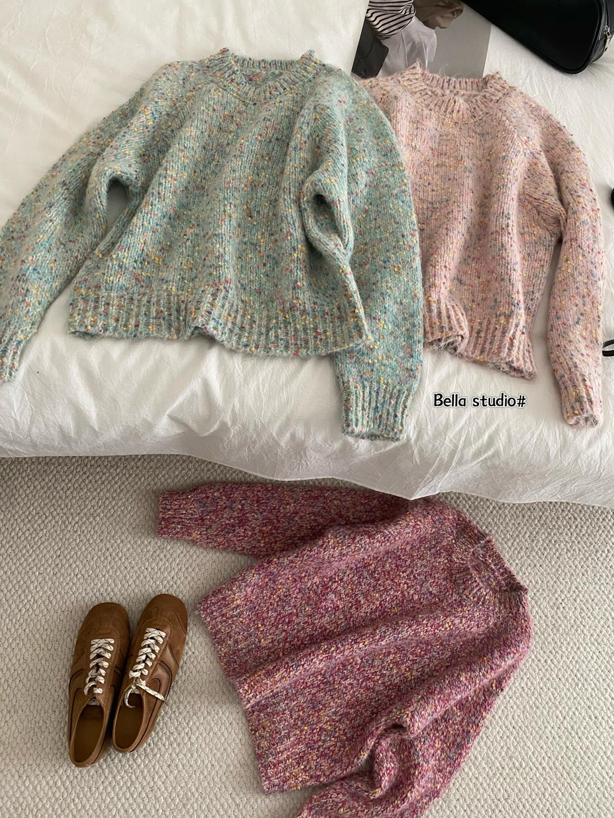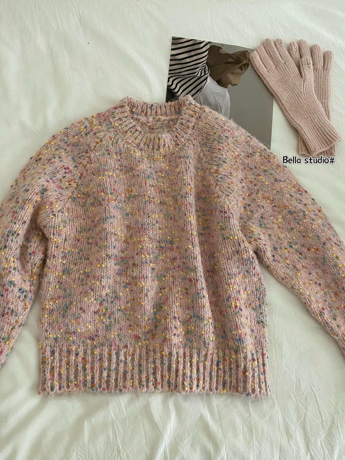 【C8073】韓系定製彩紗圓領手感柔軟色彩超吸睛復古簡約寬鬆百搭保暖毛衣