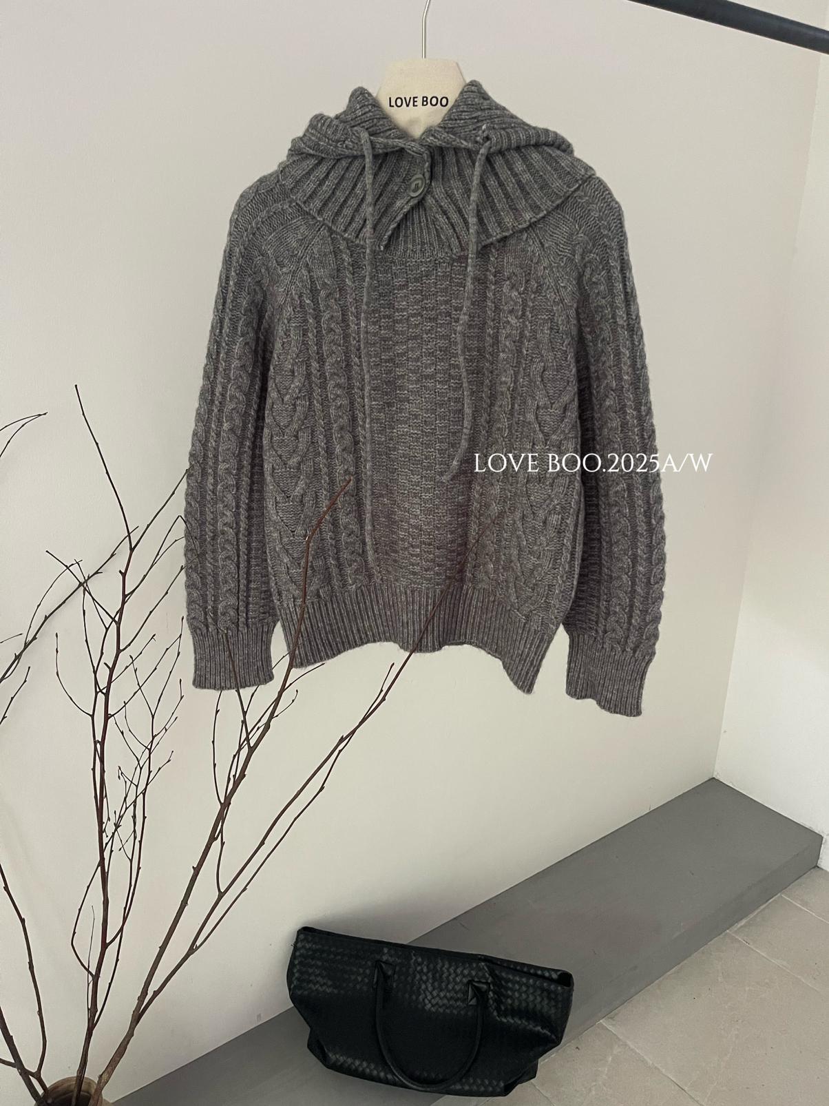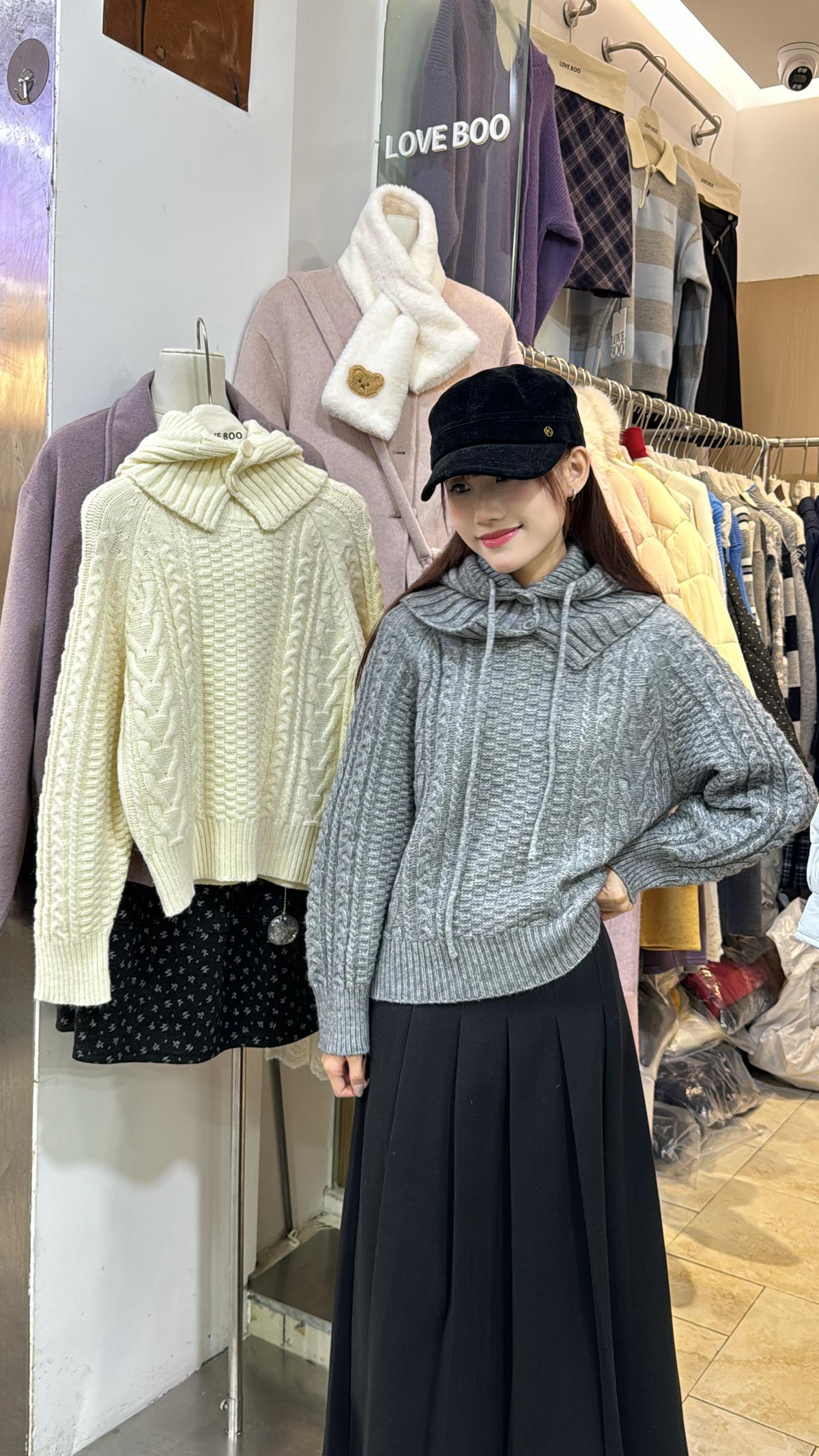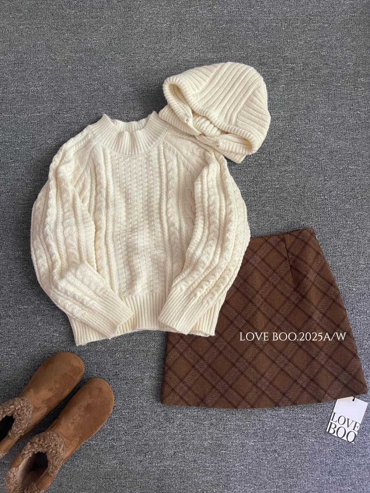 【C8078】韓系設計感麻花套頭圓領保暖毛衣(配帽子)