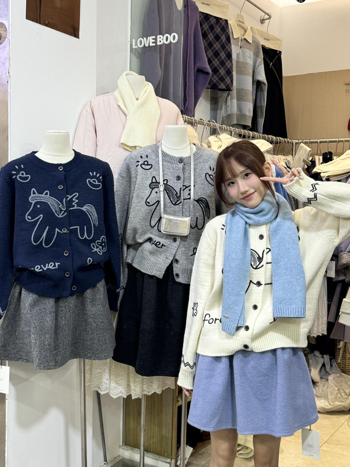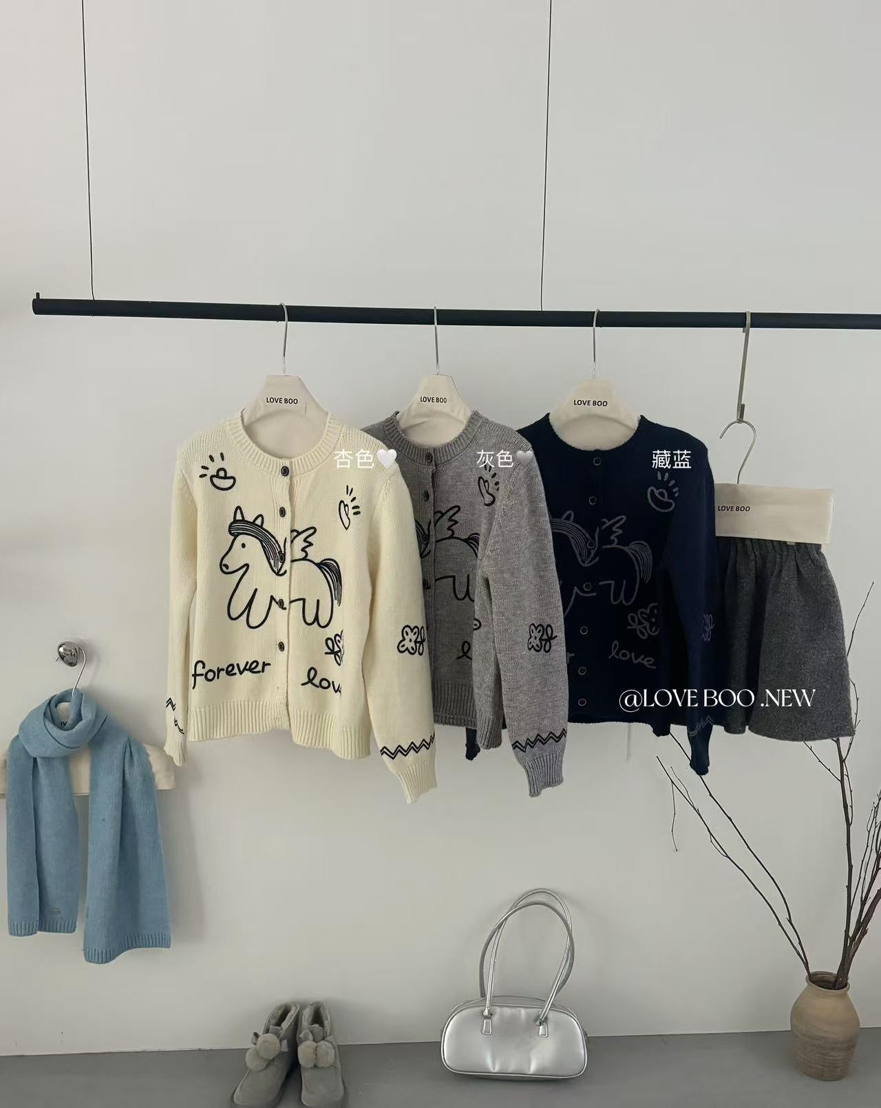 【C8079】韓系冬季圓領發財小馬針織開衫