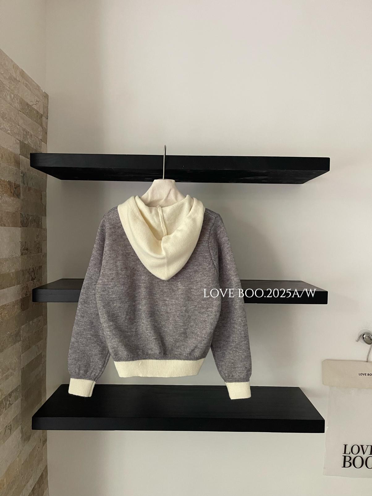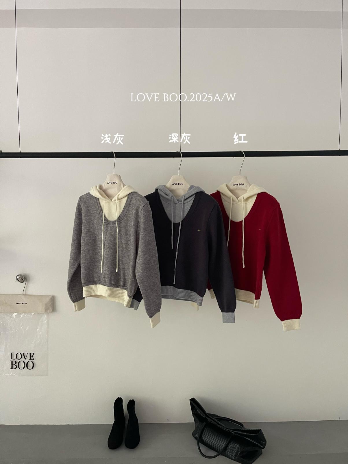 【C8083】韓系假兩件百搭撞色顯瘦帶帽針織衫
