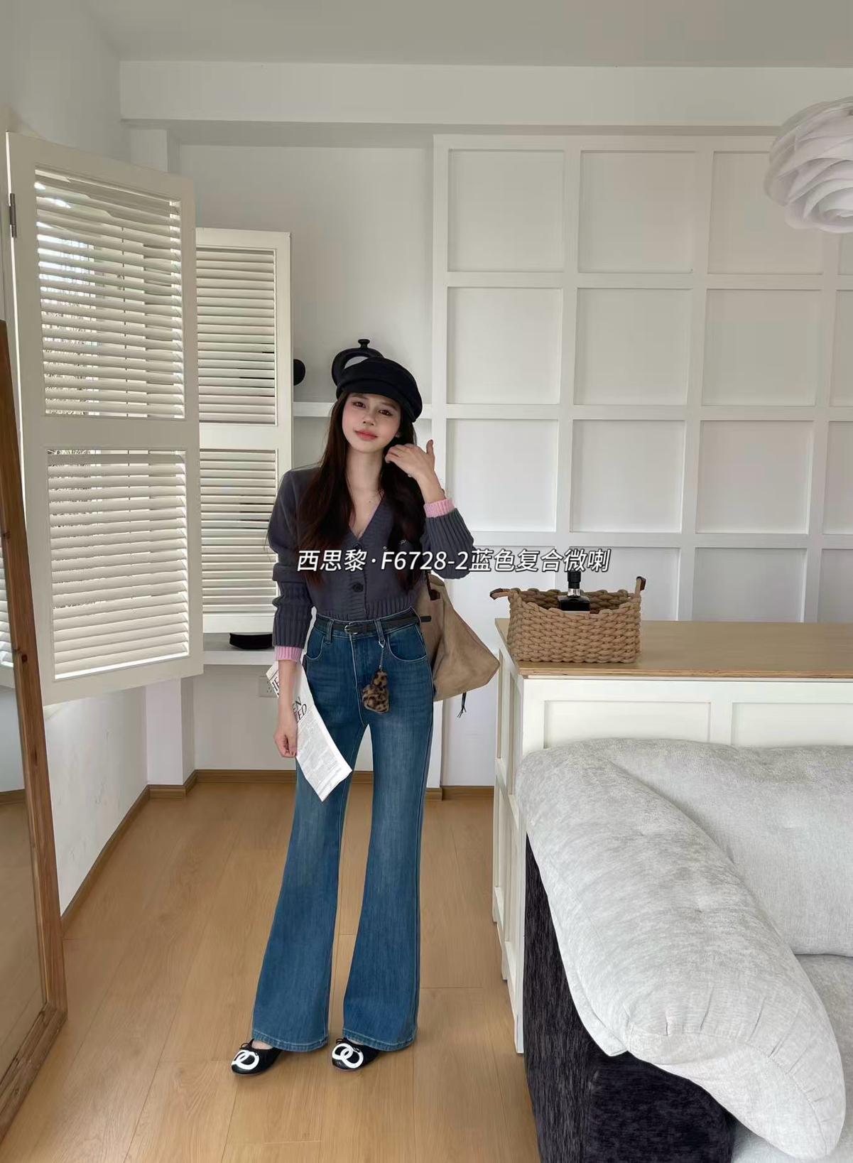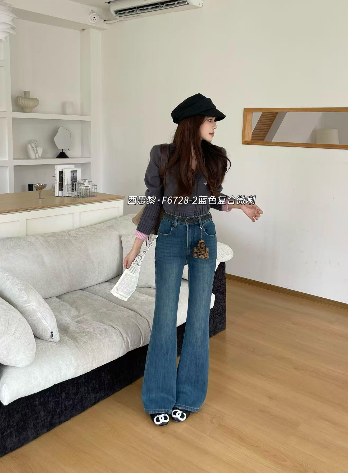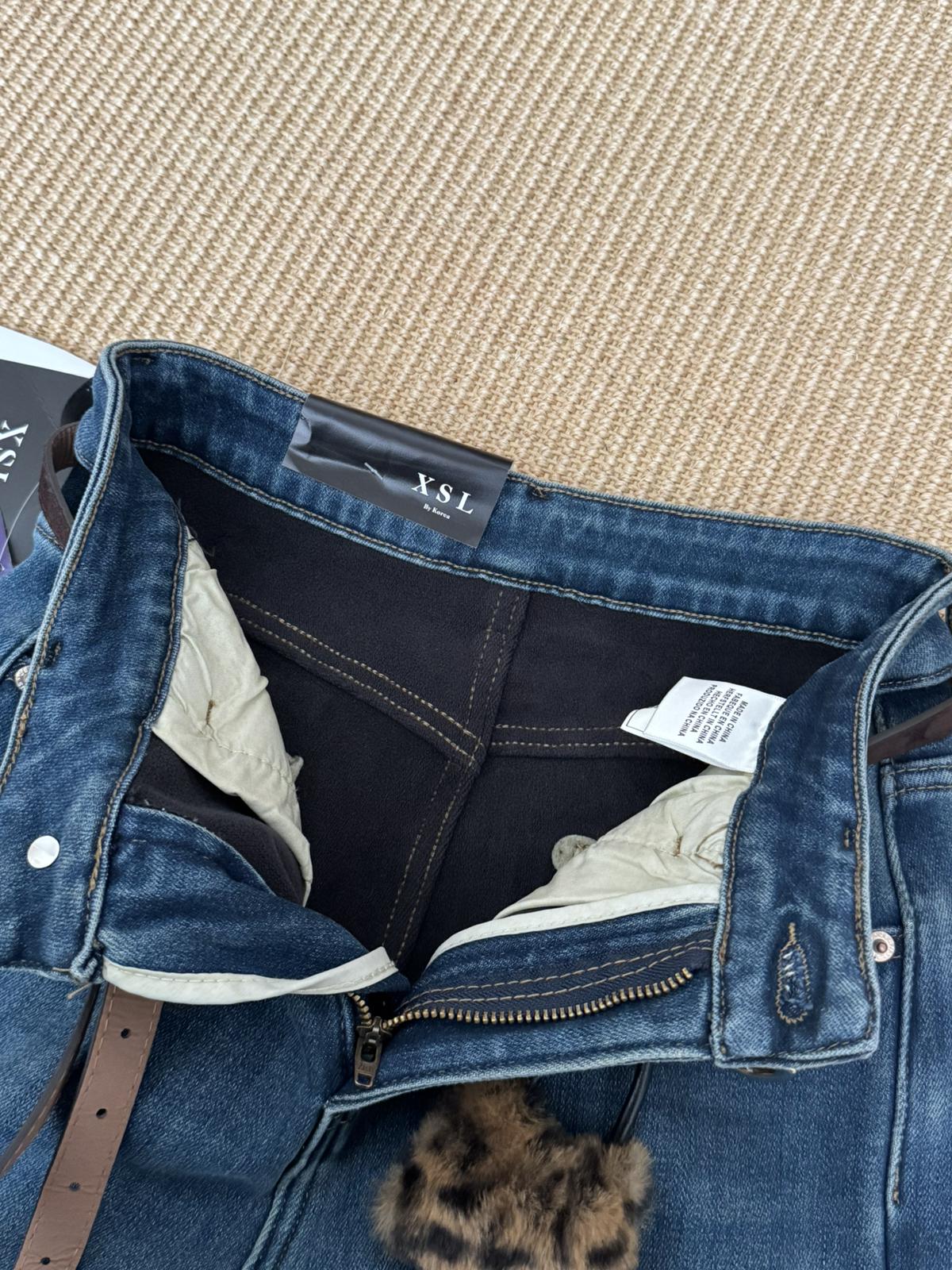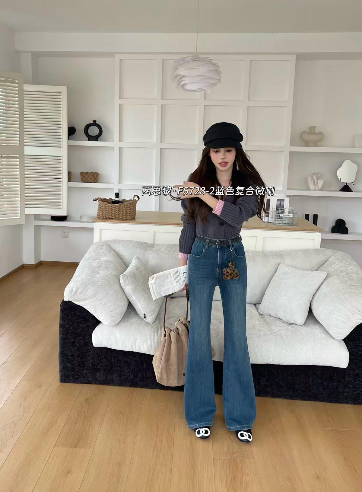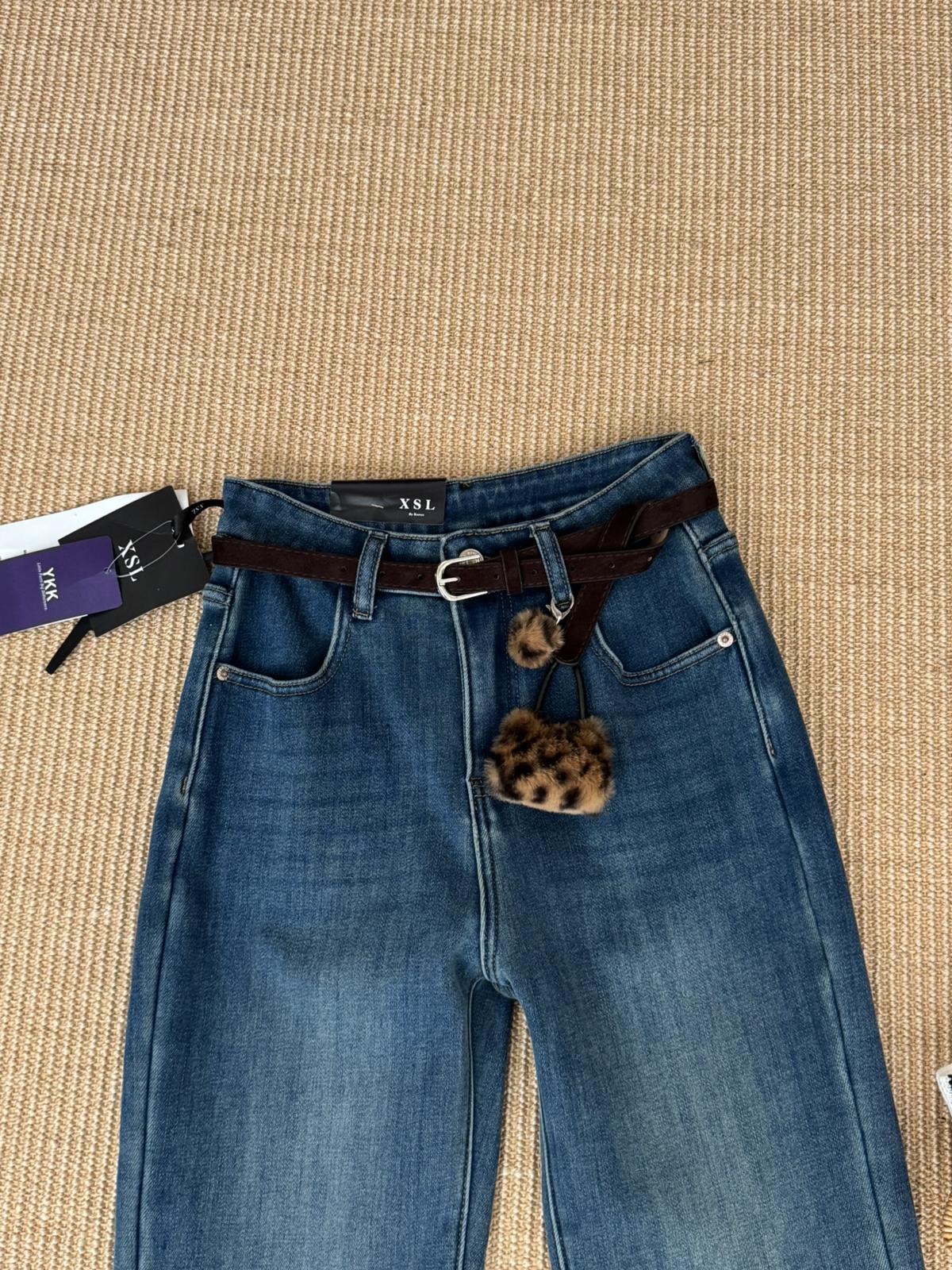 【C8086】❄️❄️複合微喇褲修身版型超顯瘦搭配豹紋小掛件牛仔褲(配腰帶)