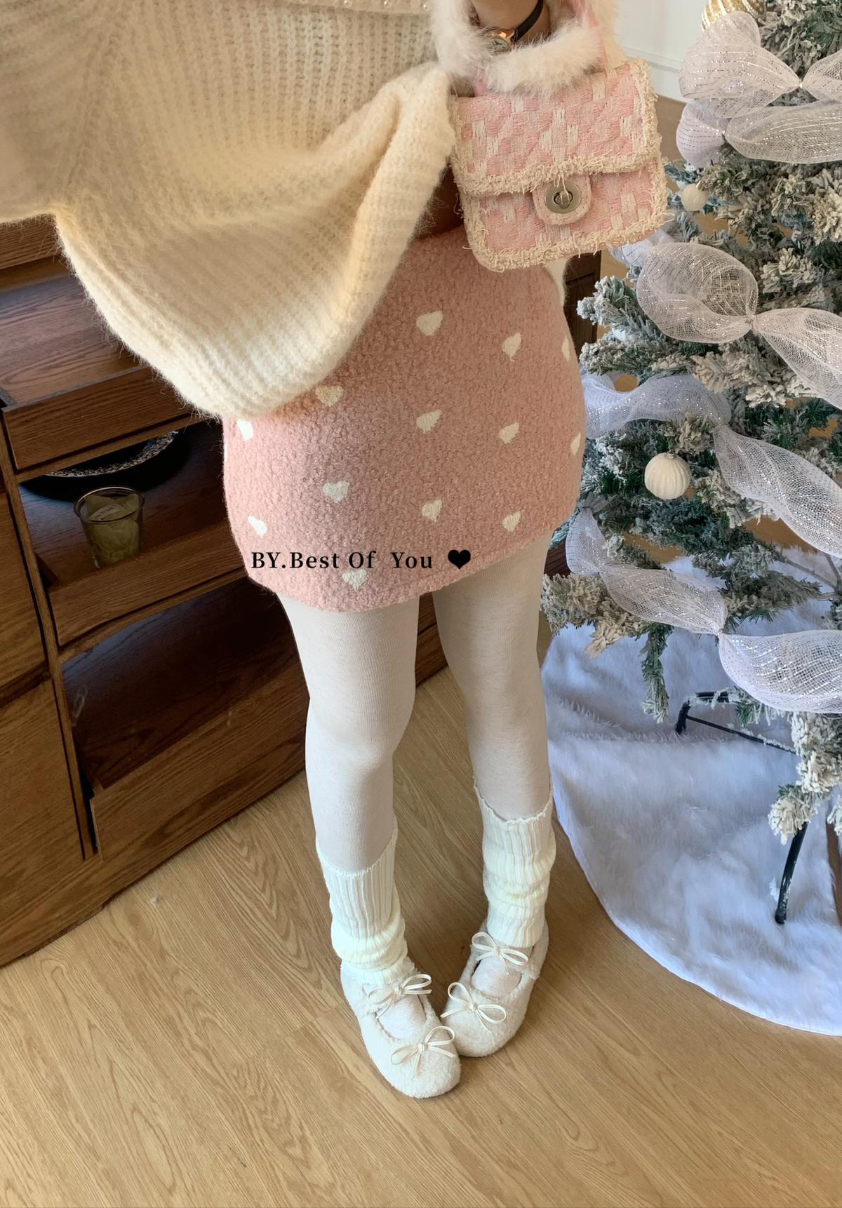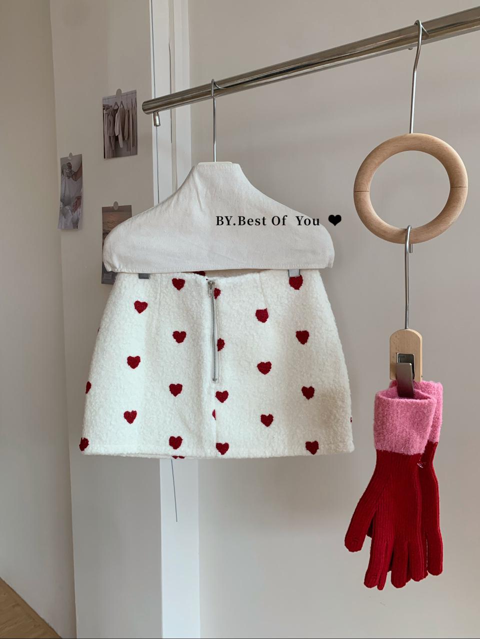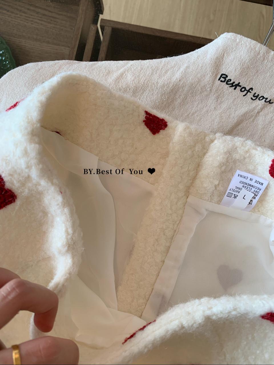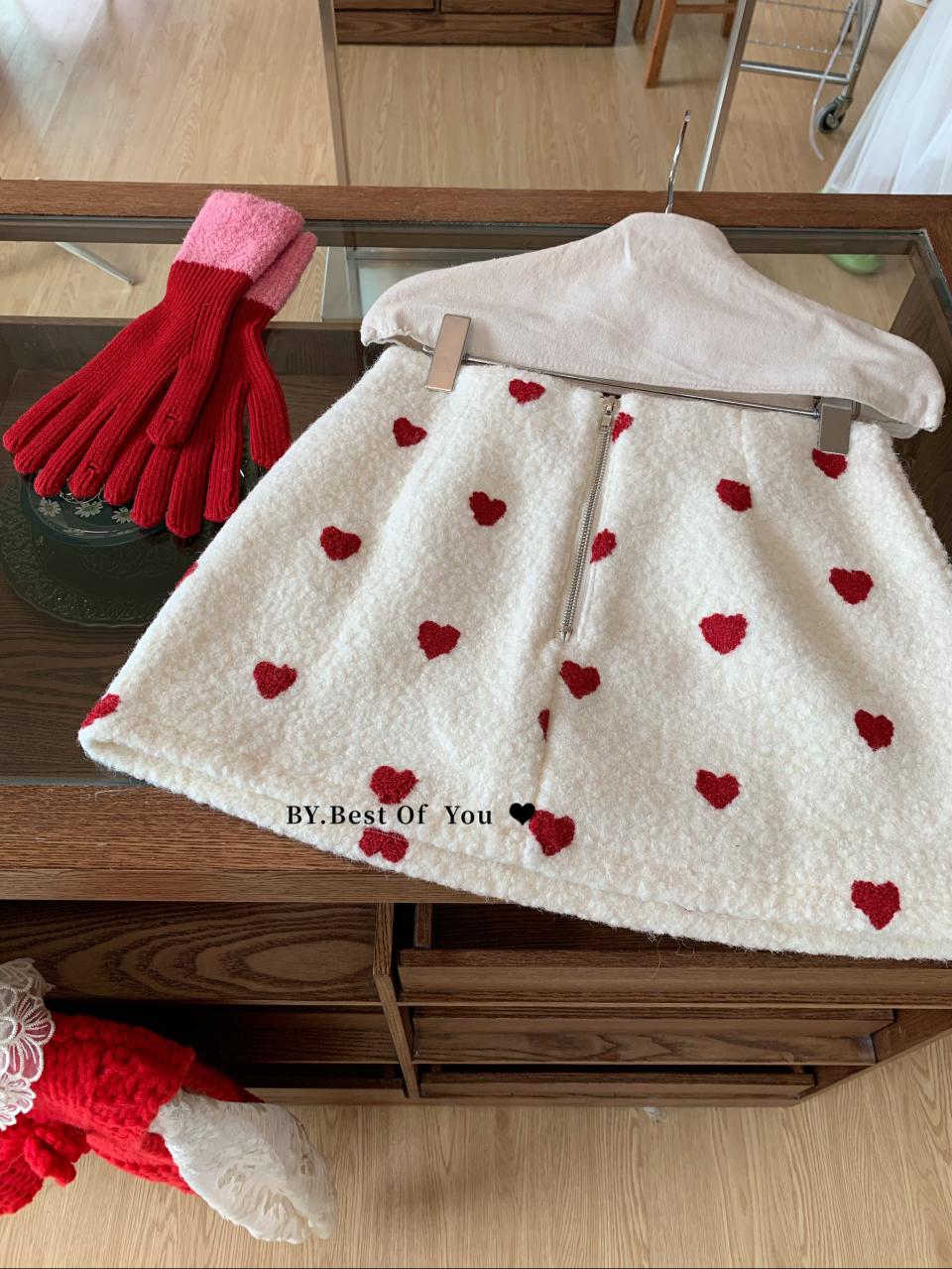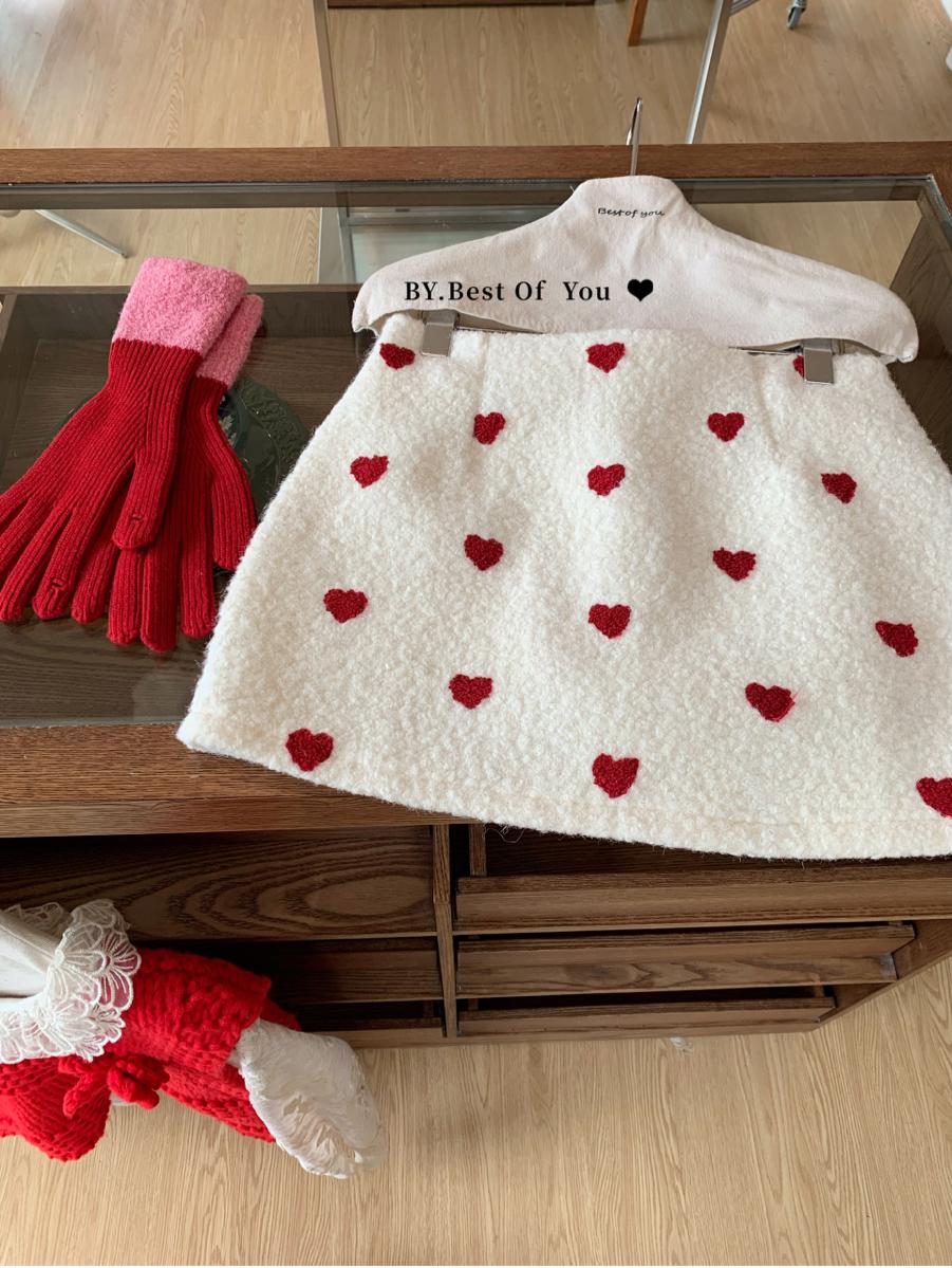 【C7976】法式復古愛心圖案羊羔毛半身裙半身裙