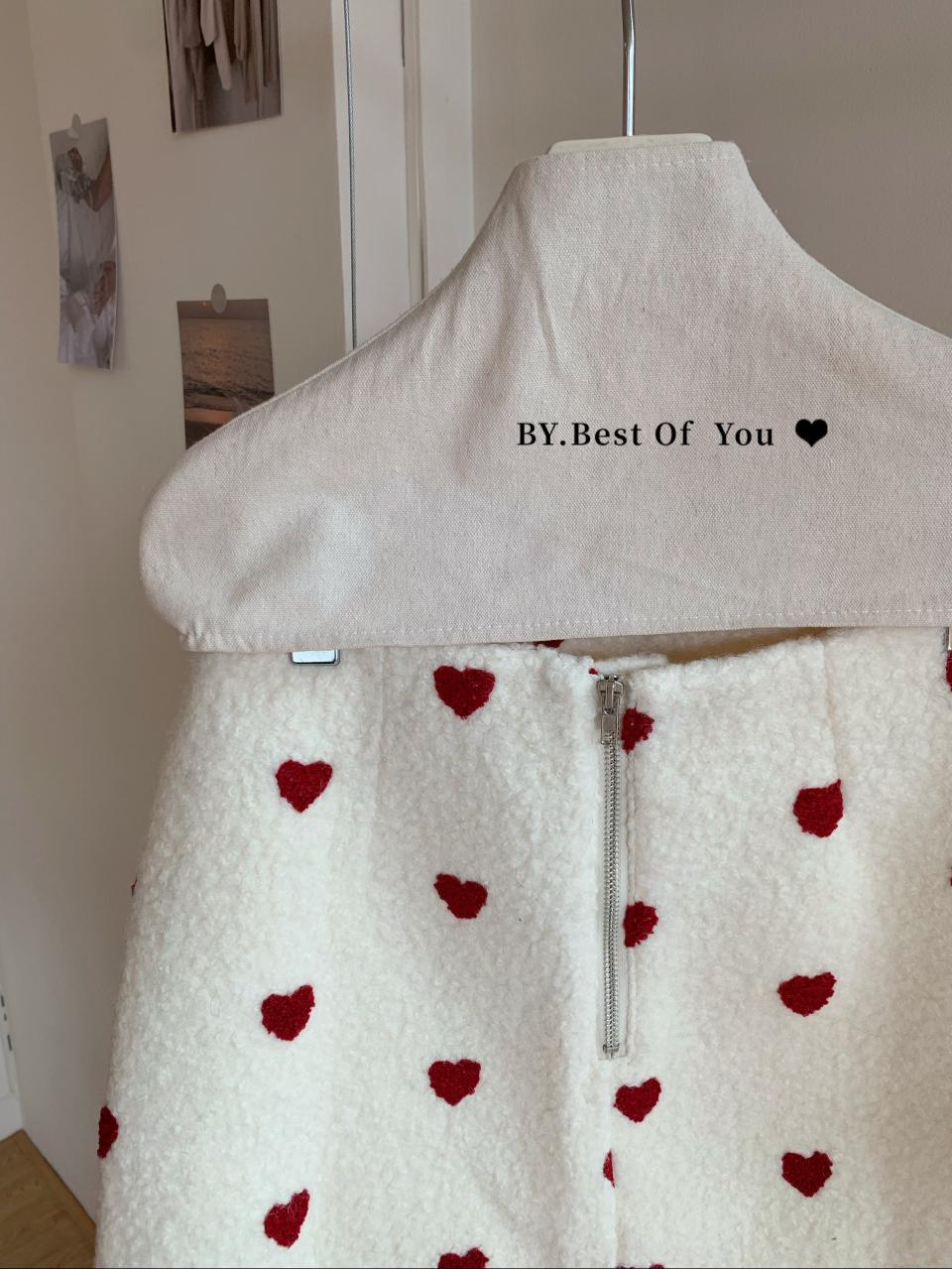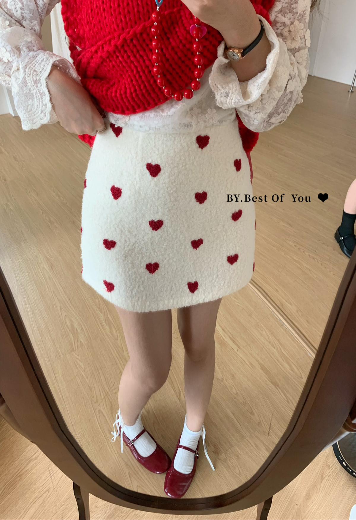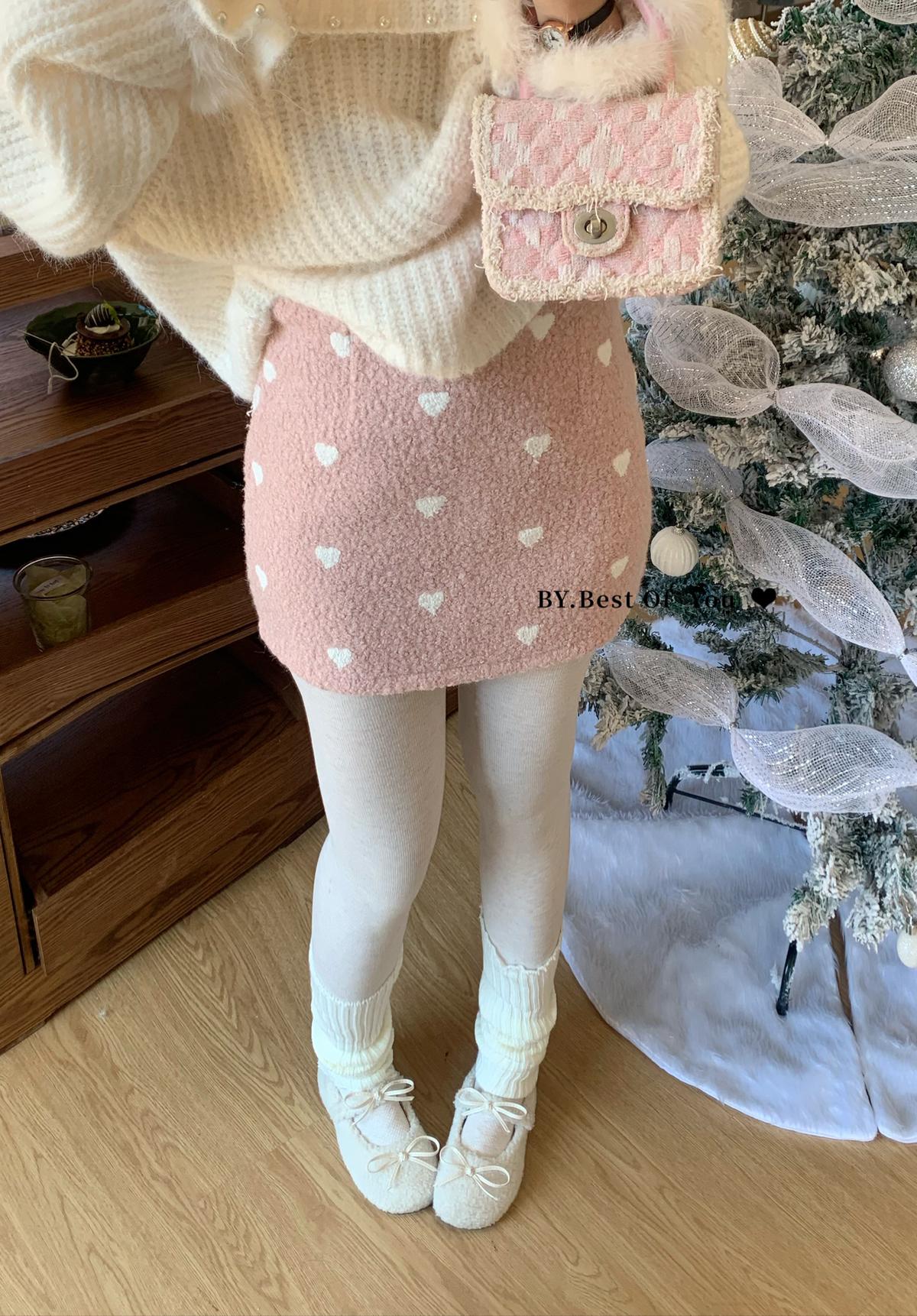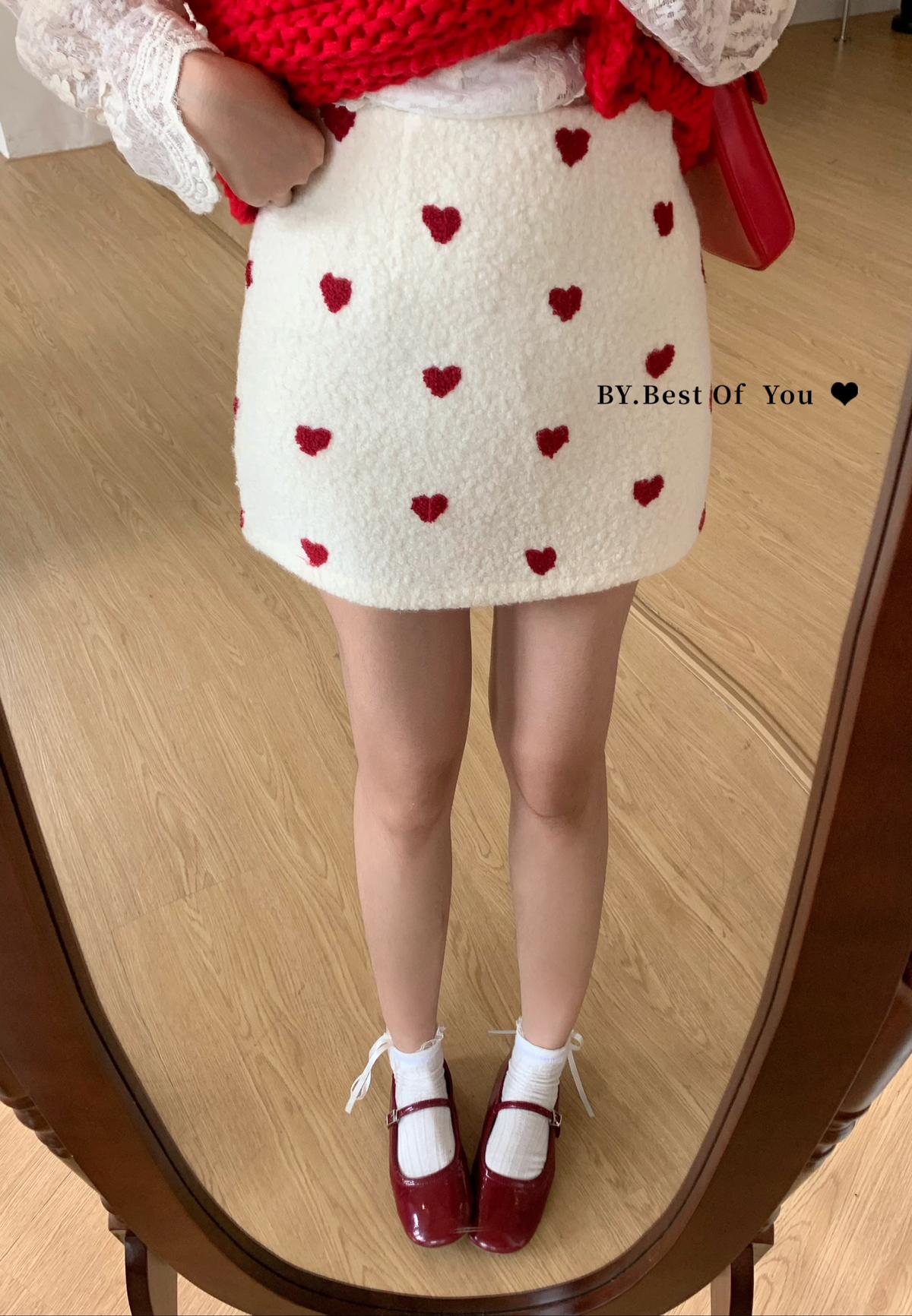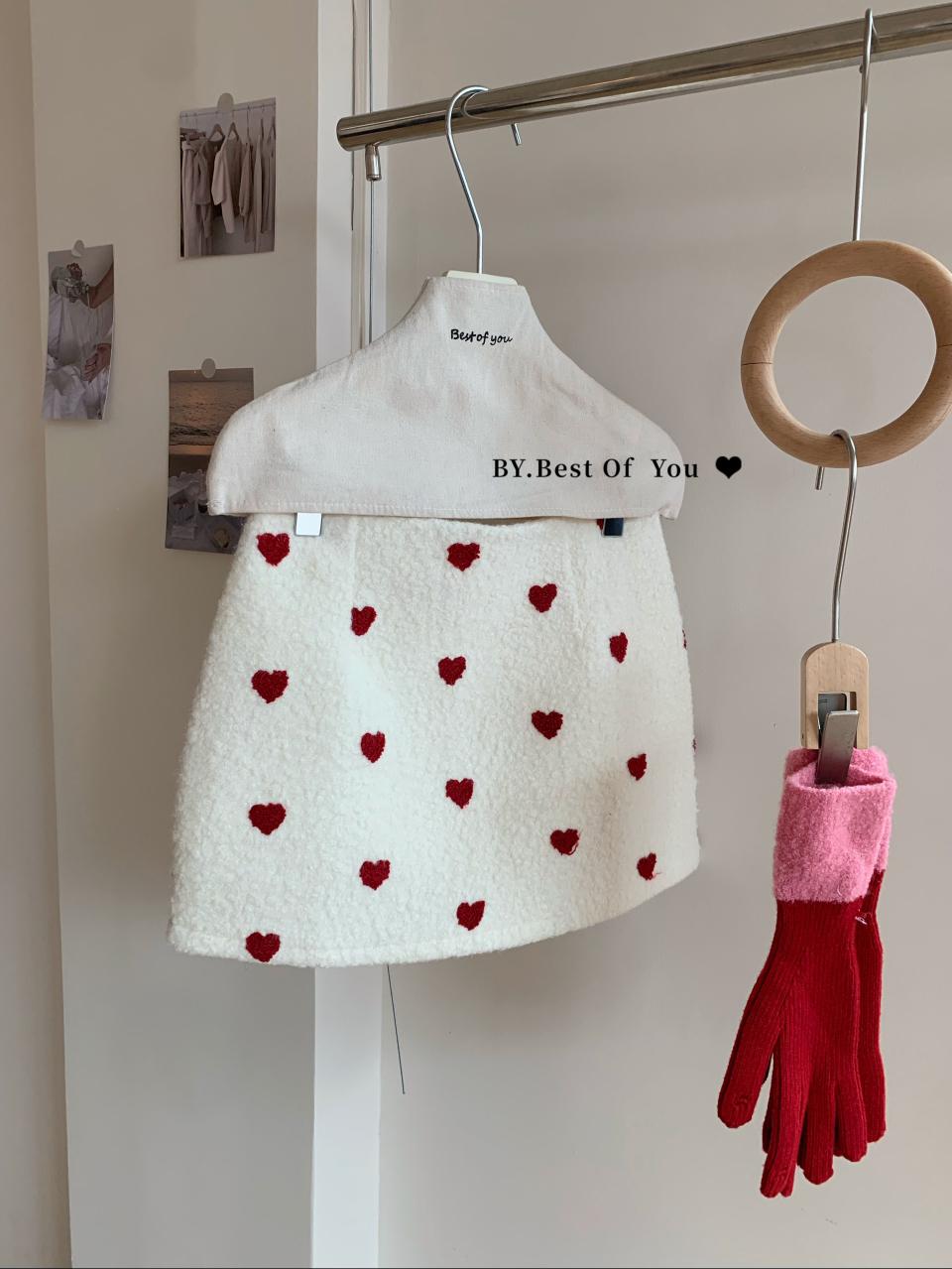 【C7976】法式復古愛心圖案羊羔毛半身裙半身裙