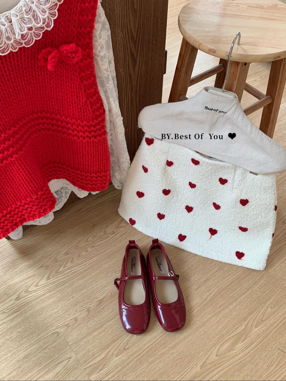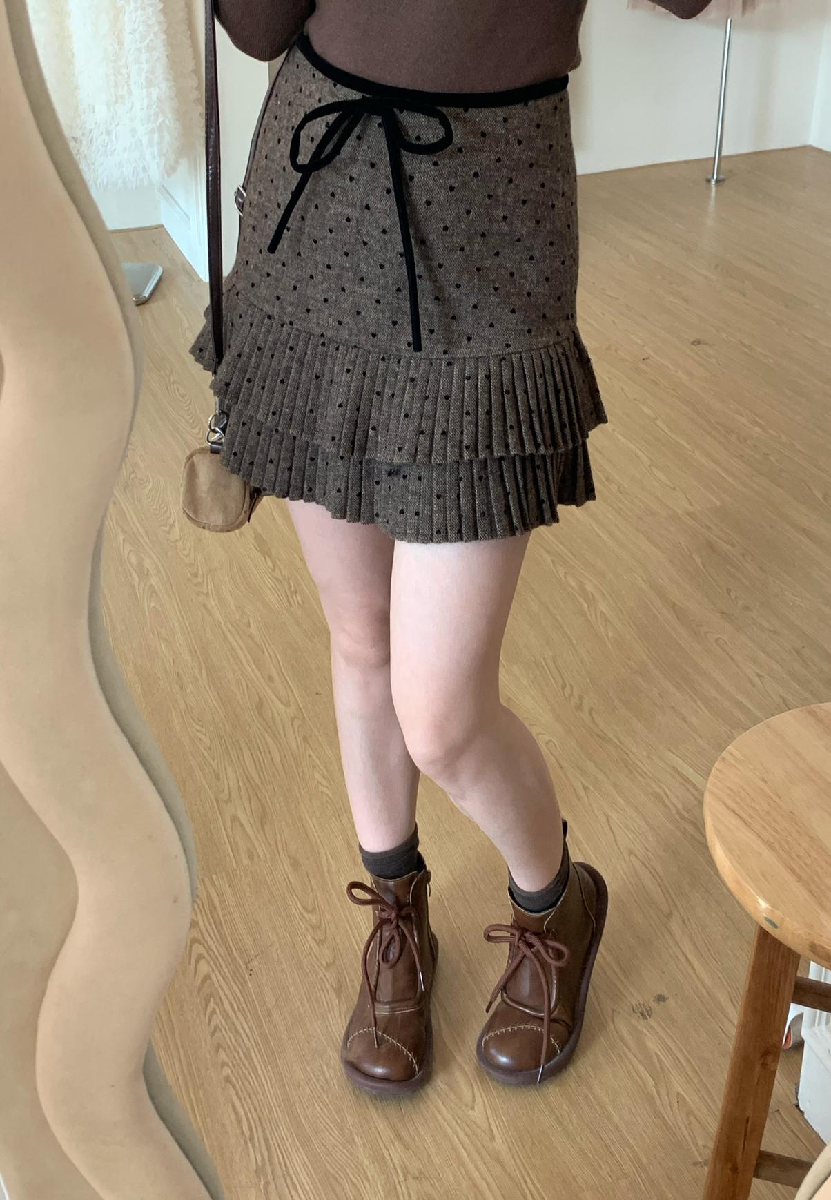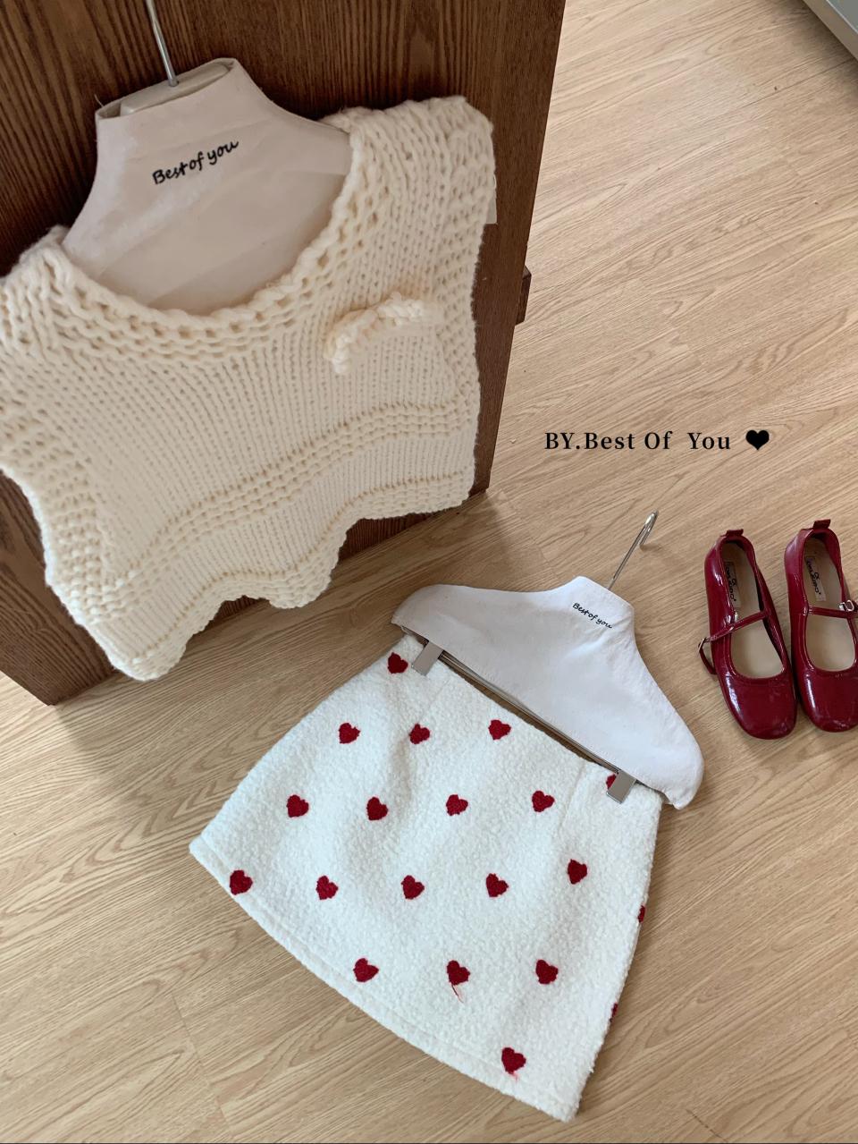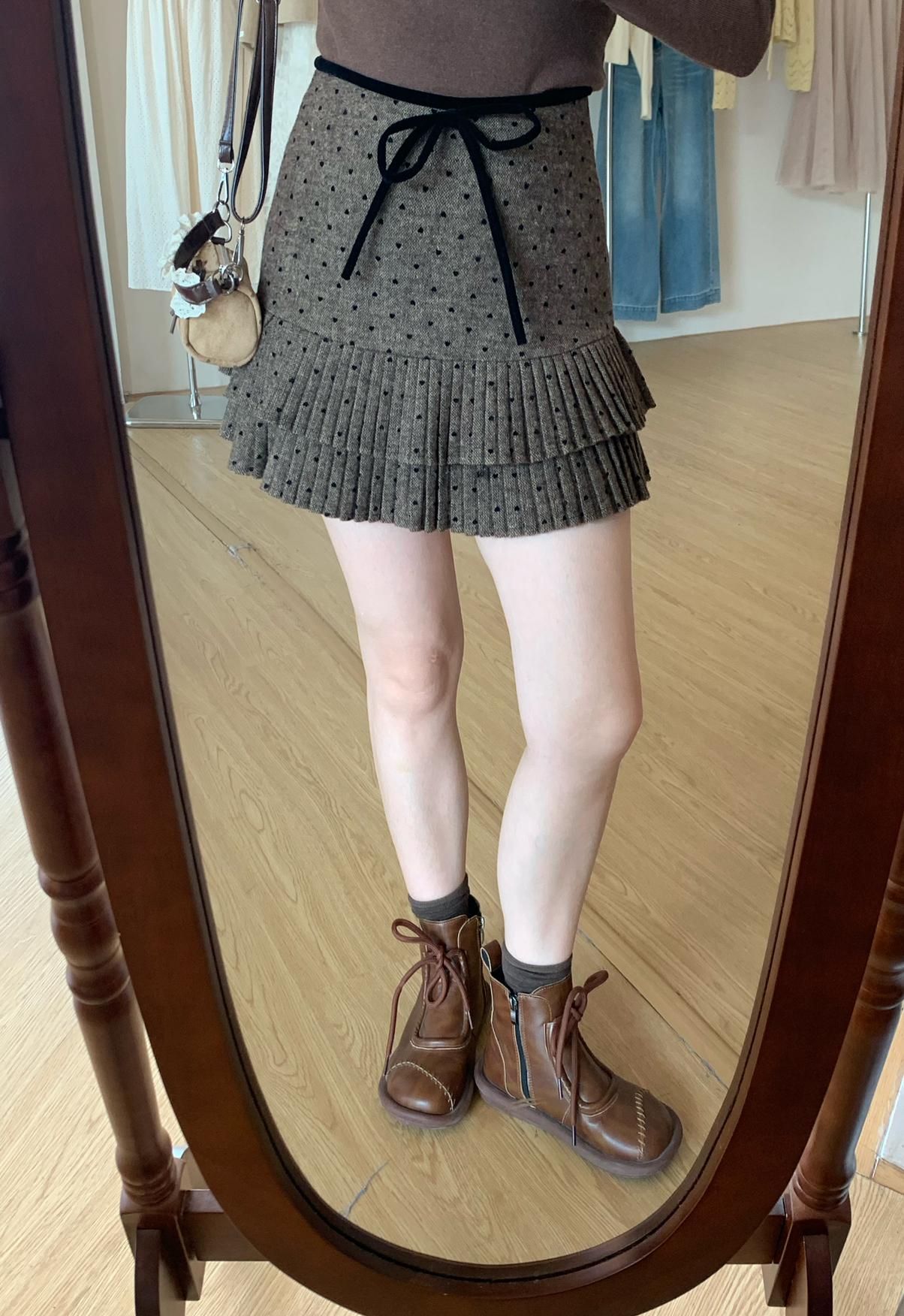 【C7976】法式復古愛心圖案羊羔毛半身裙半身裙