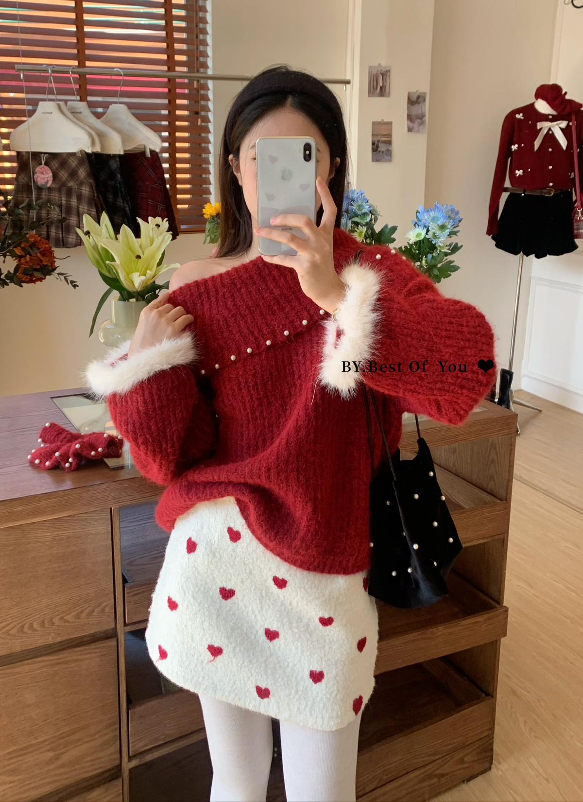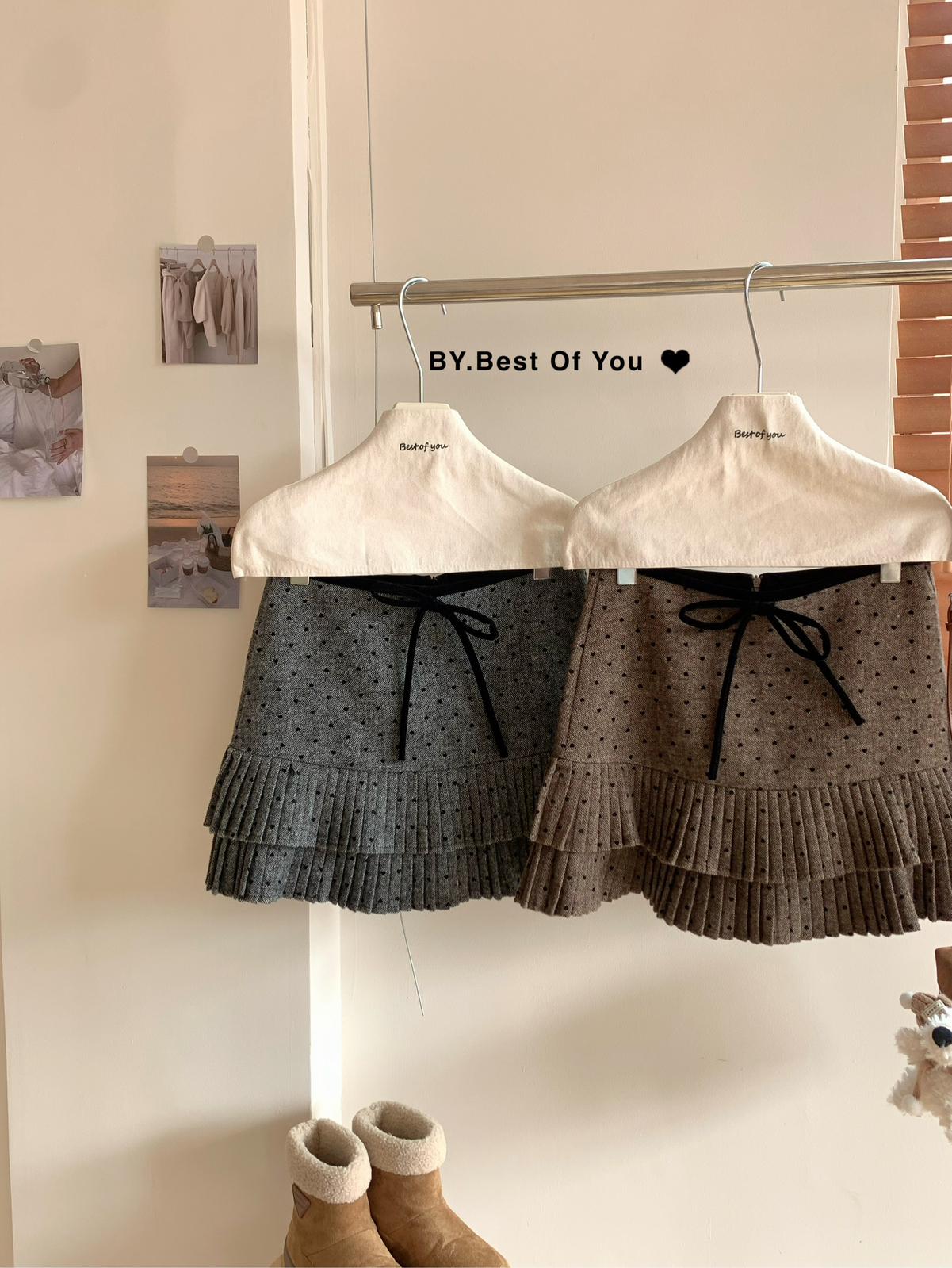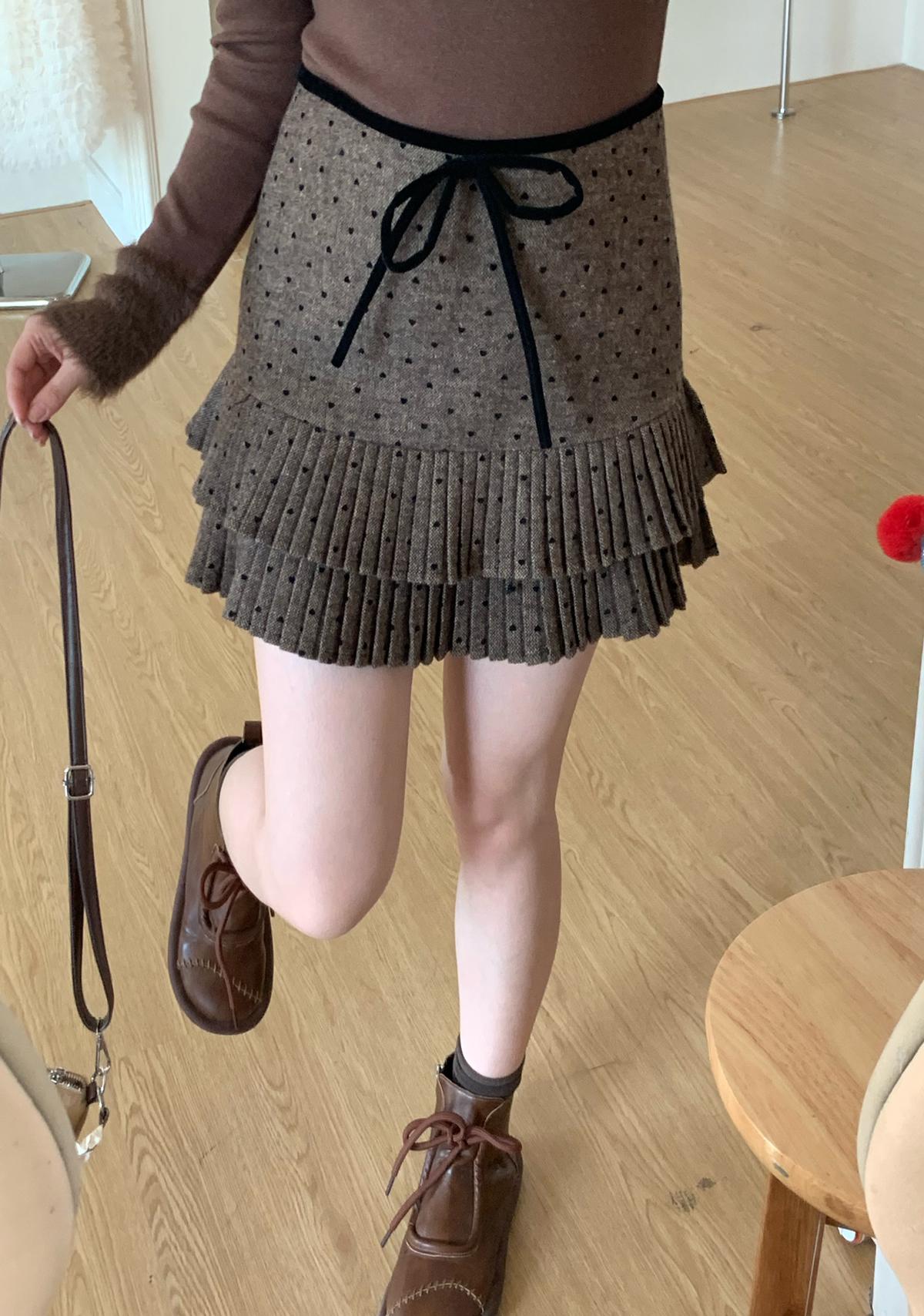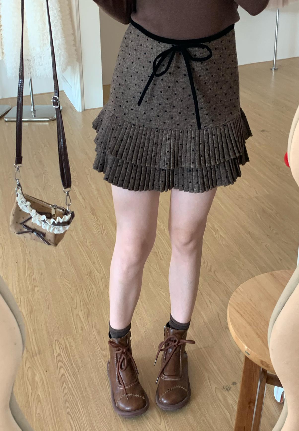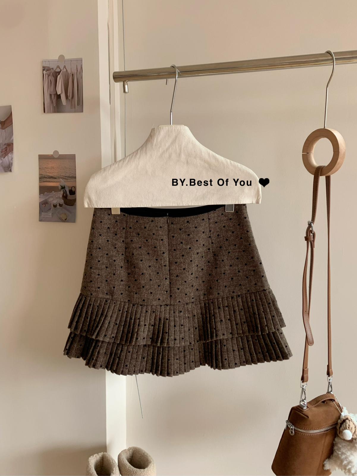 【C7976】法式復古愛心圖案羊羔毛半身裙半身裙