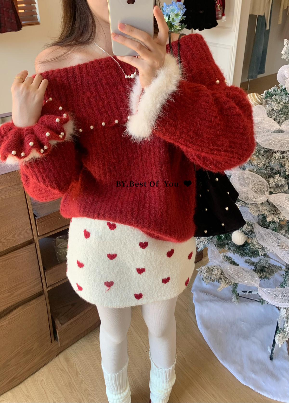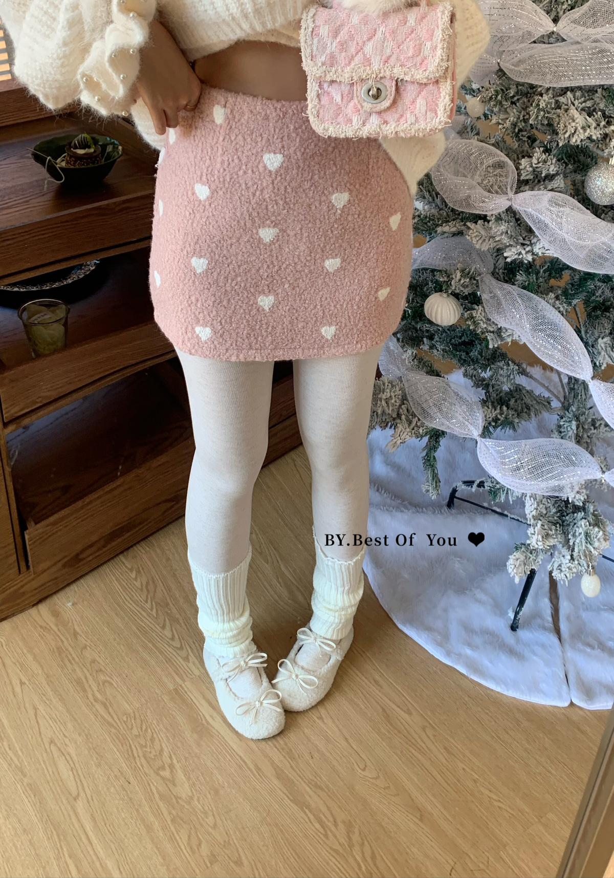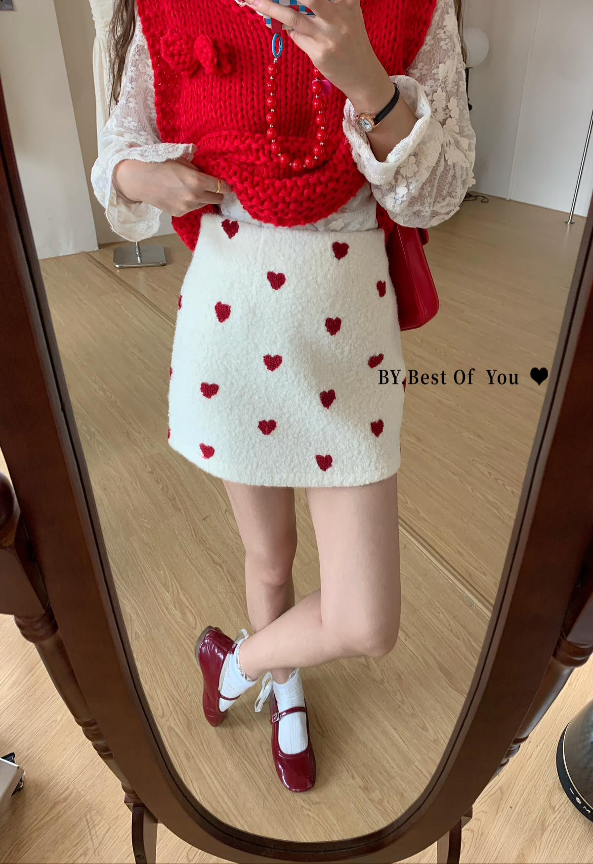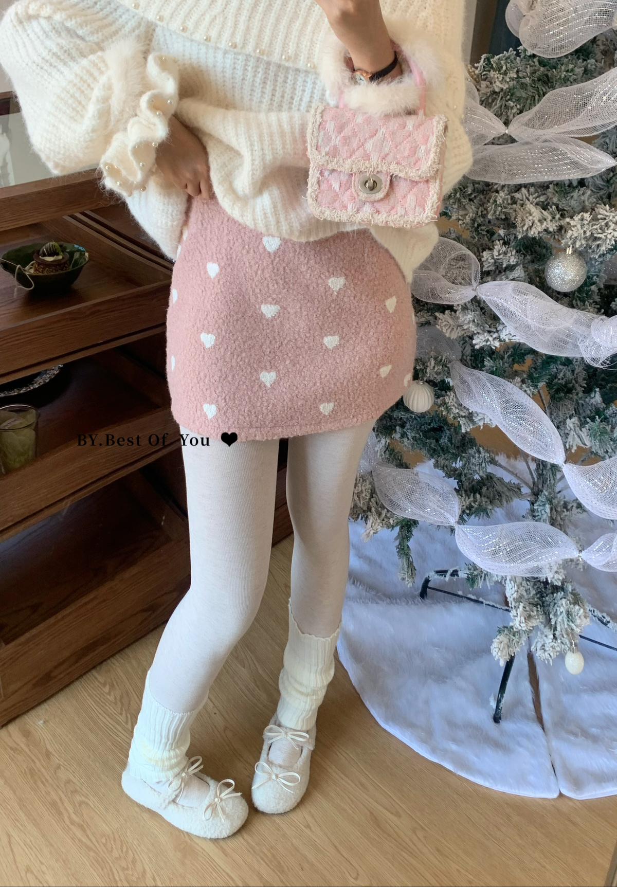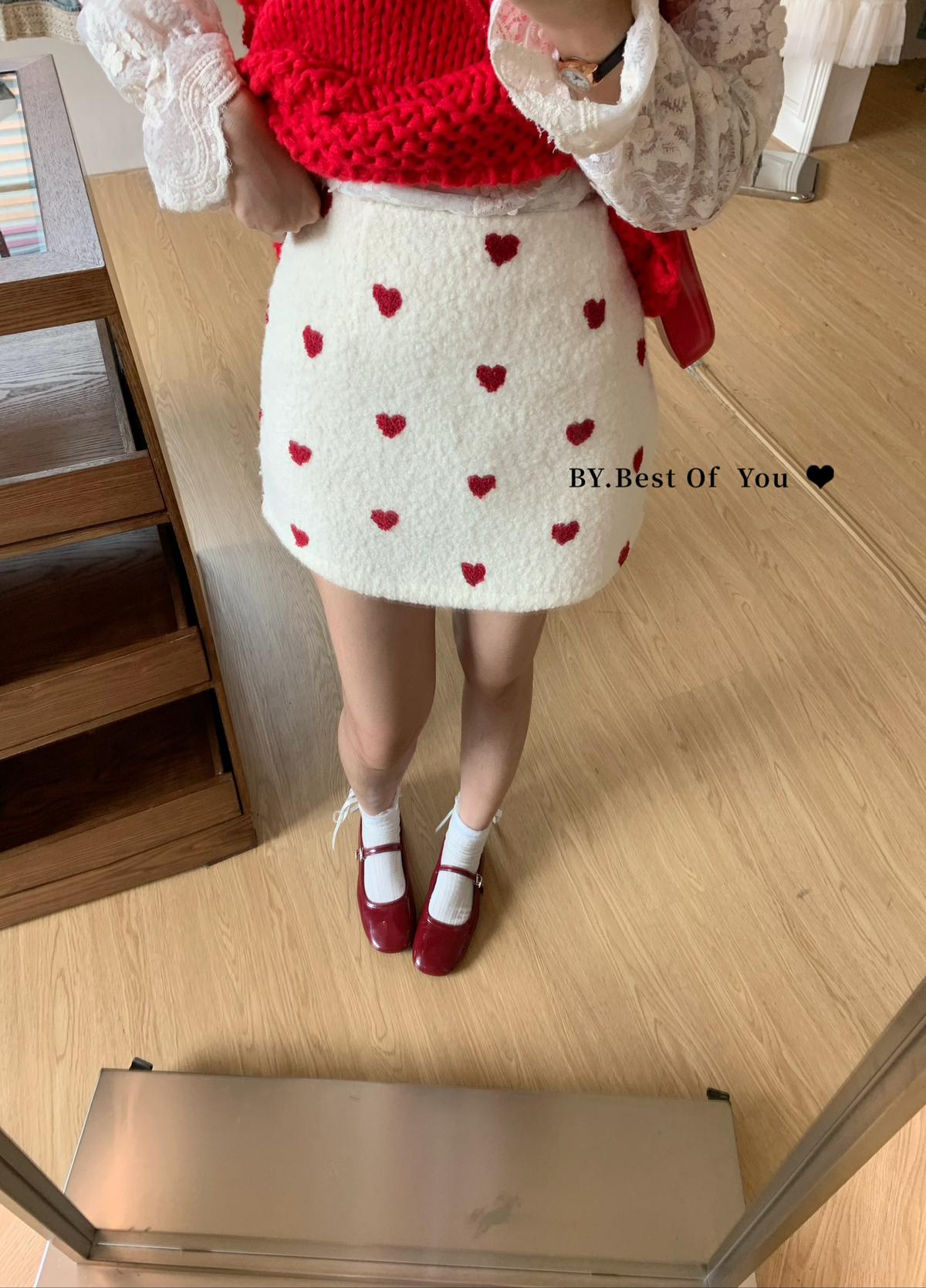 【C7976】法式復古愛心圖案羊羔毛半身裙半身裙