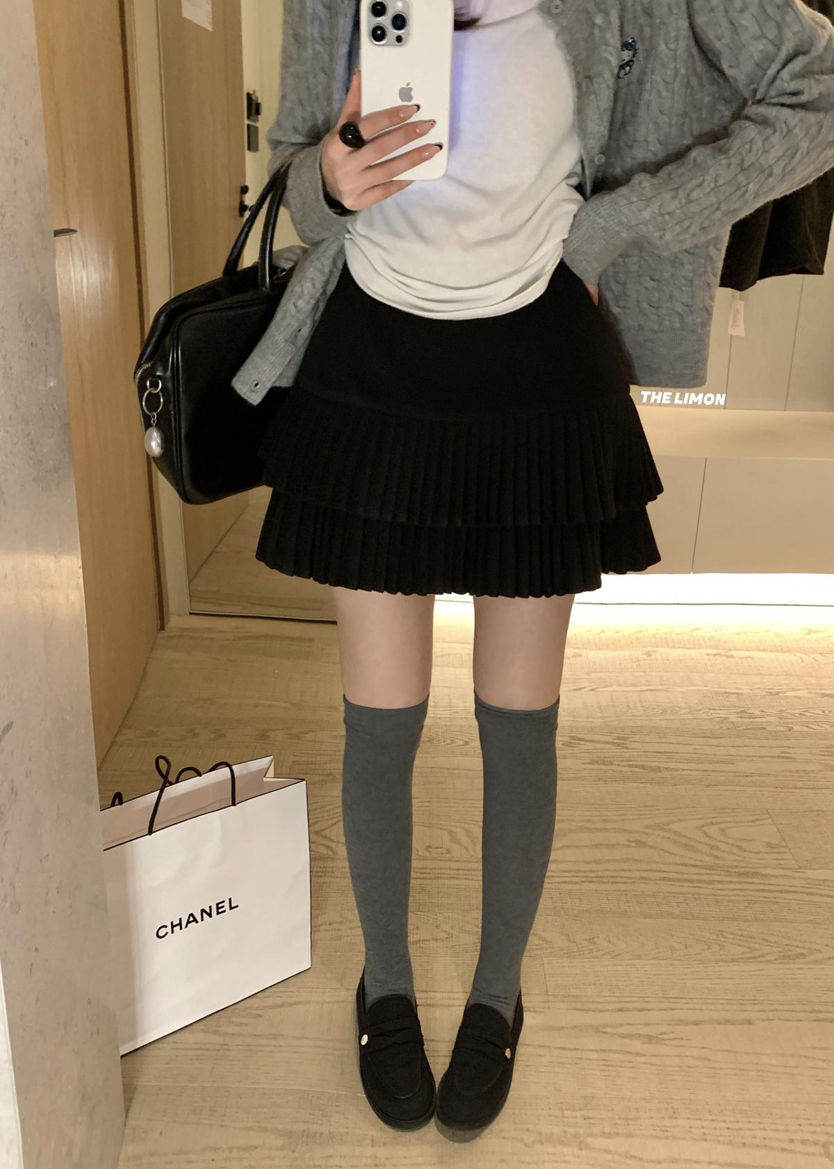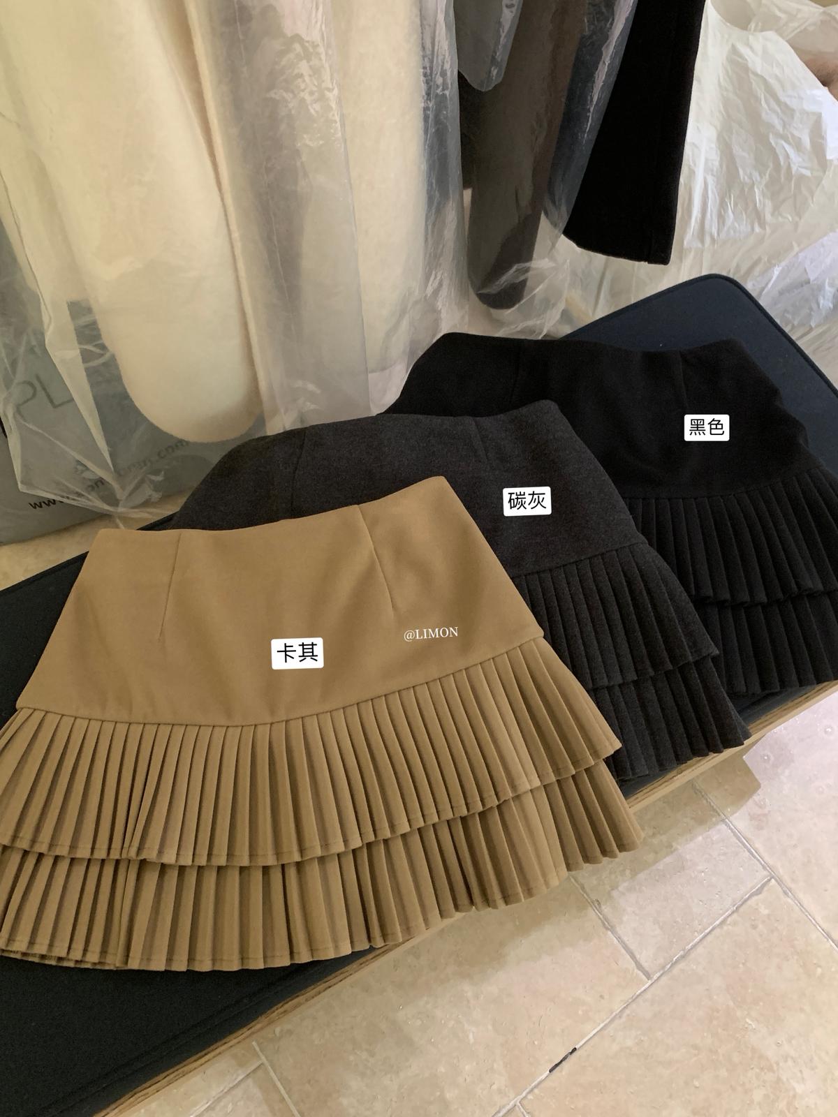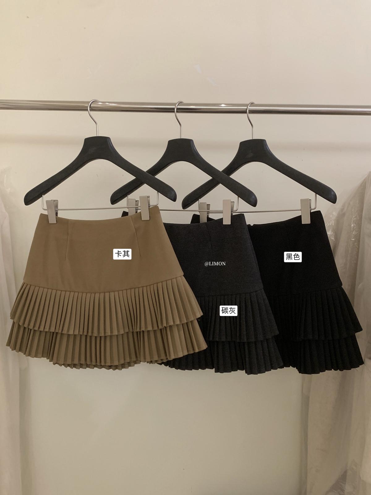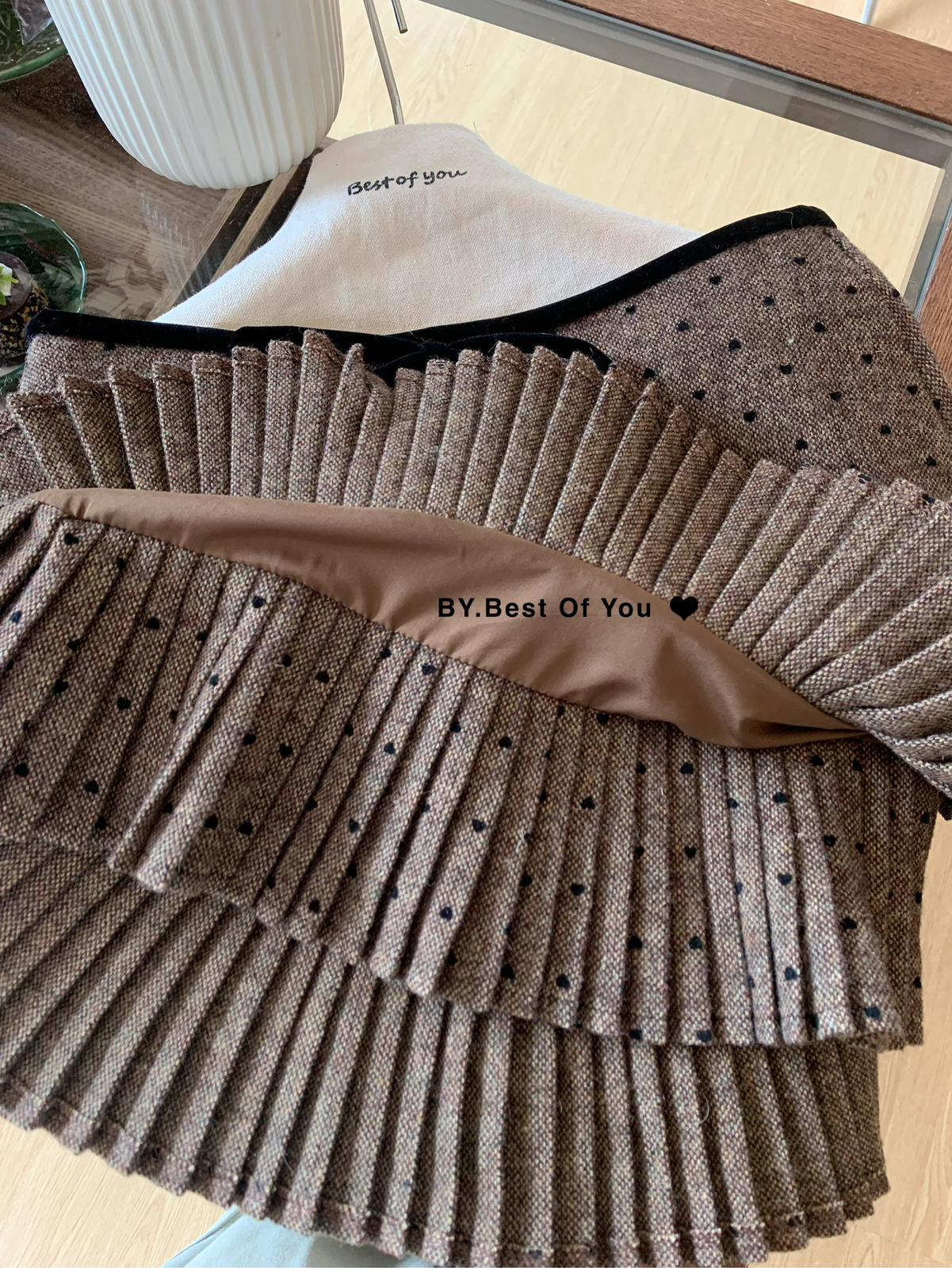 【C8051】復古雙層百搭毛呢高腰顯瘦百褶半身裙