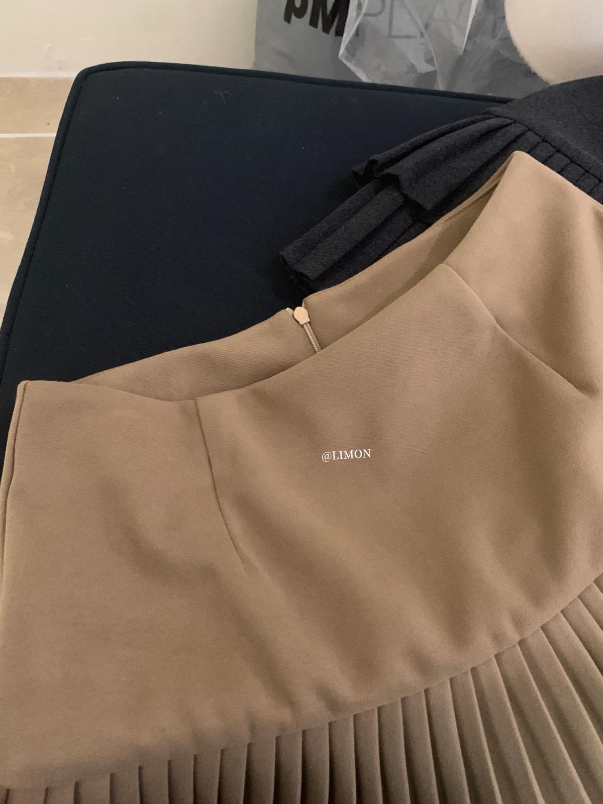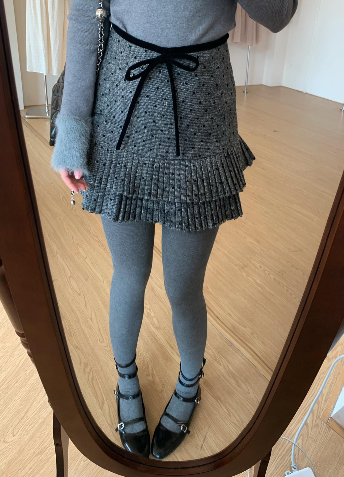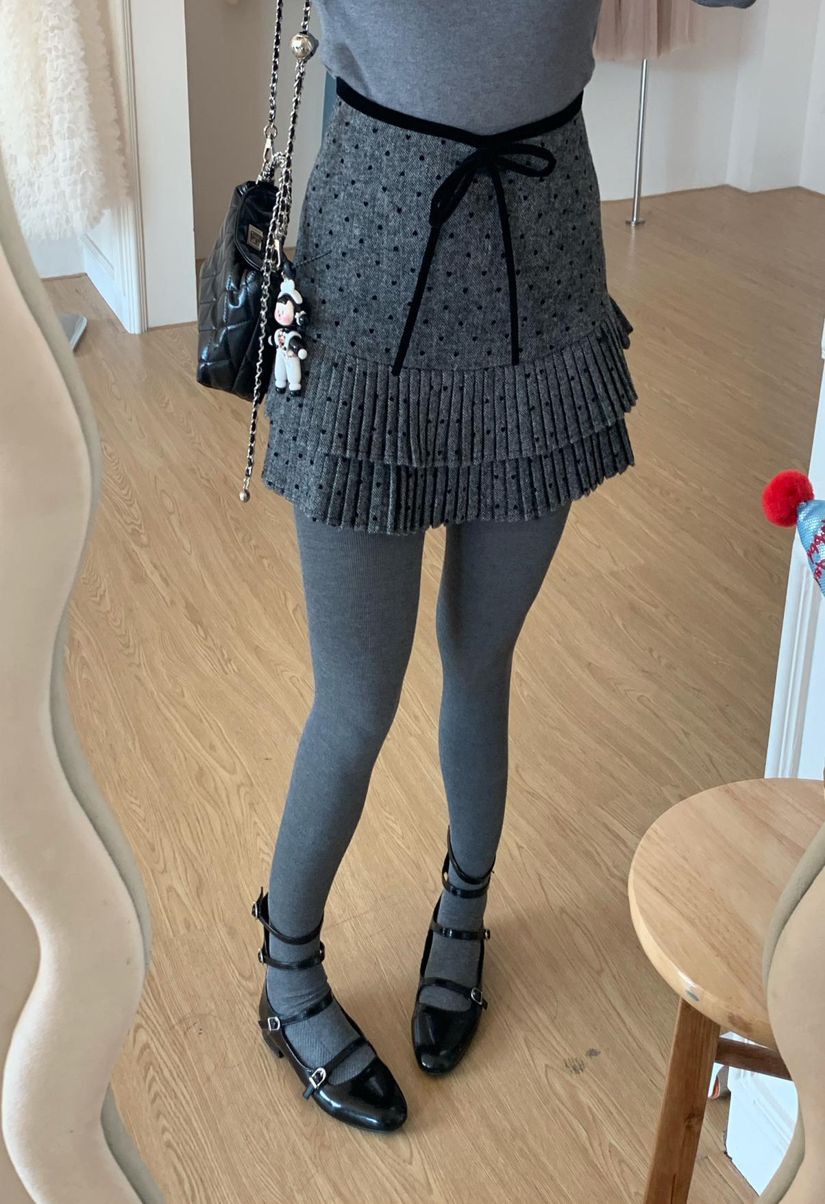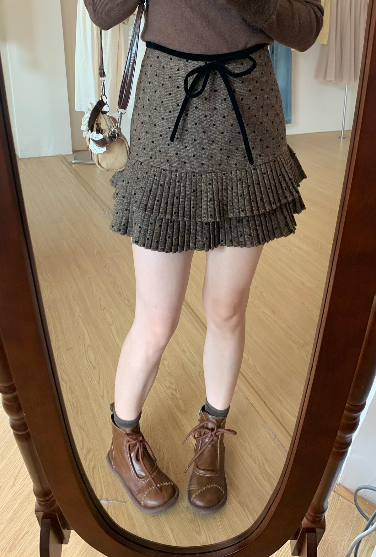 【C8051】復古雙層百搭毛呢高腰顯瘦百褶半身裙