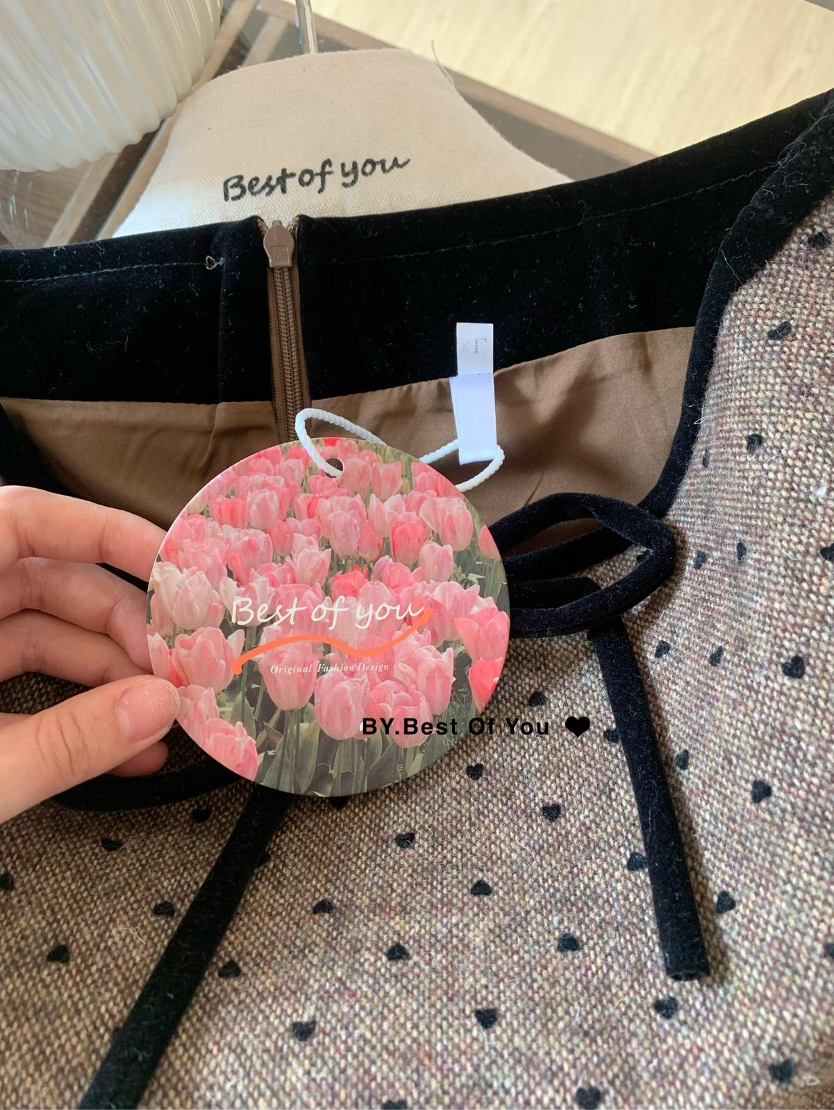 【C8044】韓版設計感重工刺繡背心連衣裙+半高領修身打底衫套裝